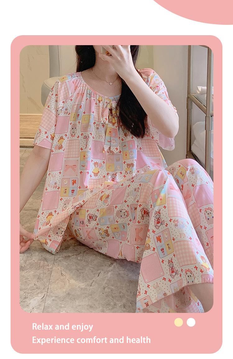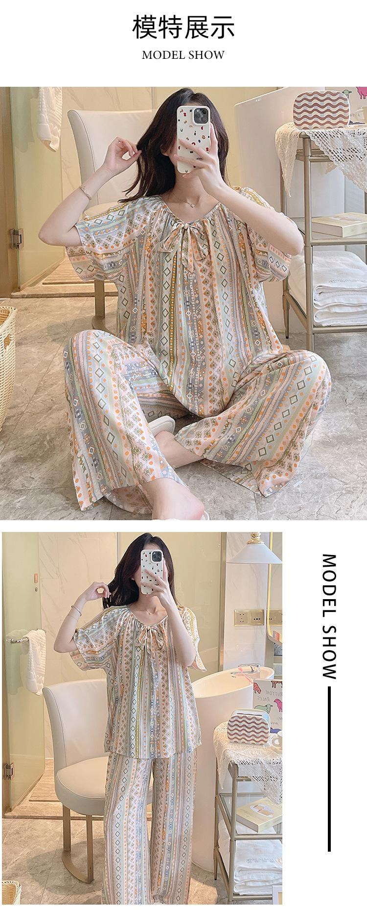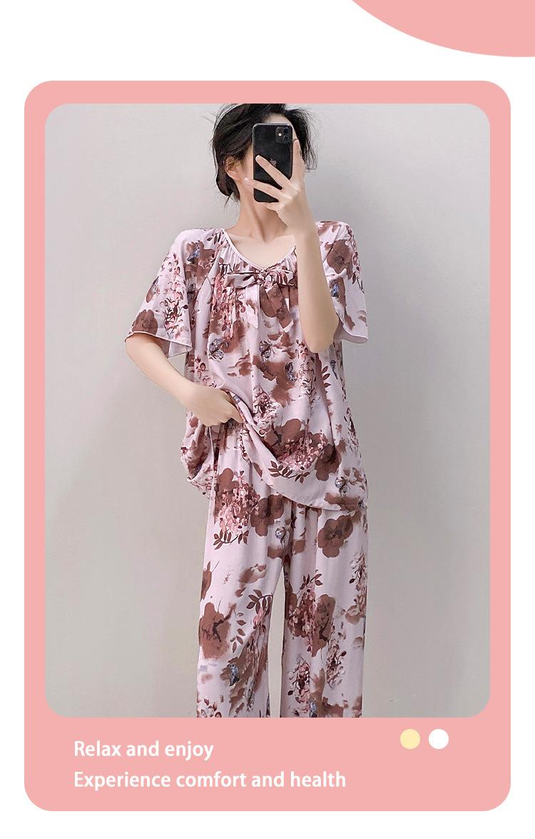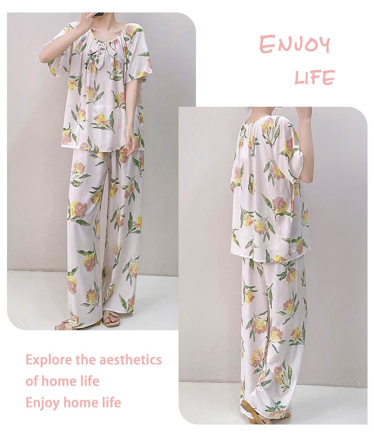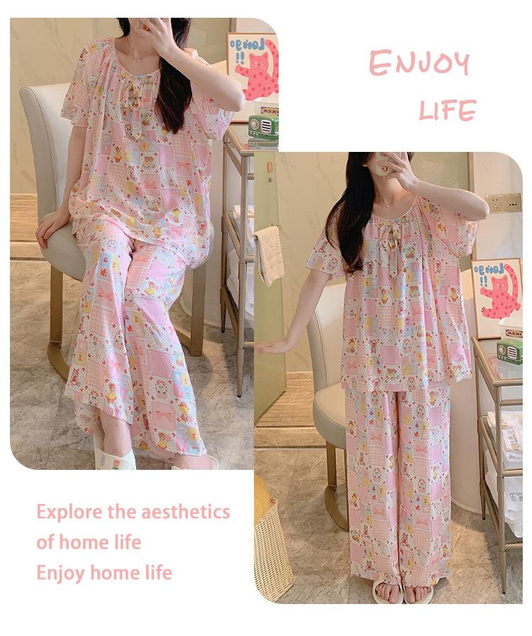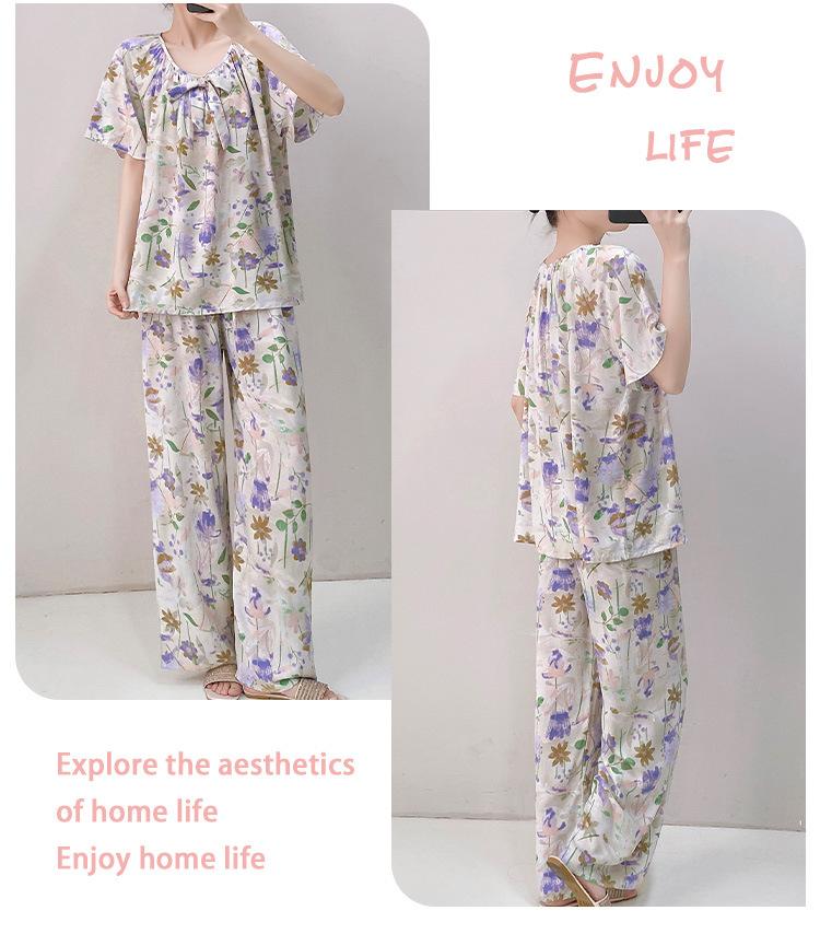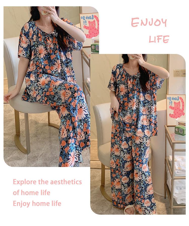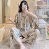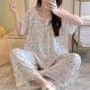 Pijamas de verano para mujer, de alta calidad, de manga corta, con pantalones anchos, de algodón y seda, ropa de casa, dulce nuevo traje de algodón y seda de estilo chino