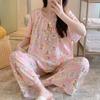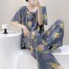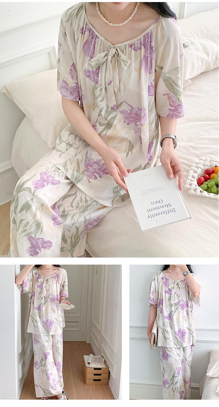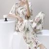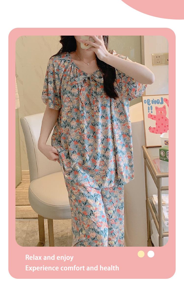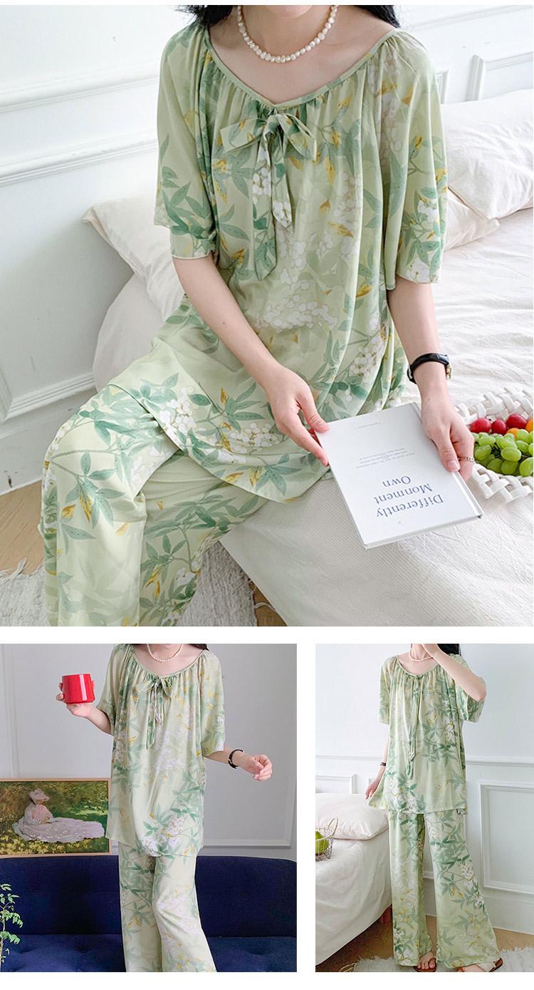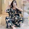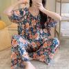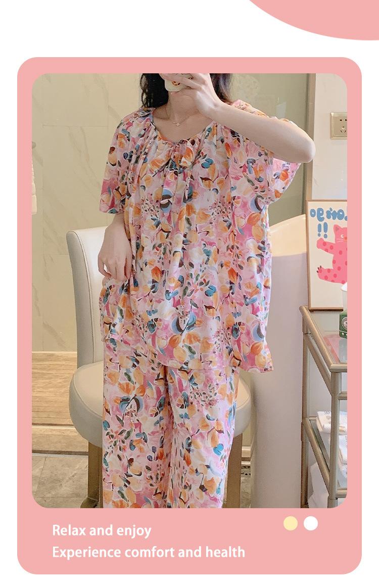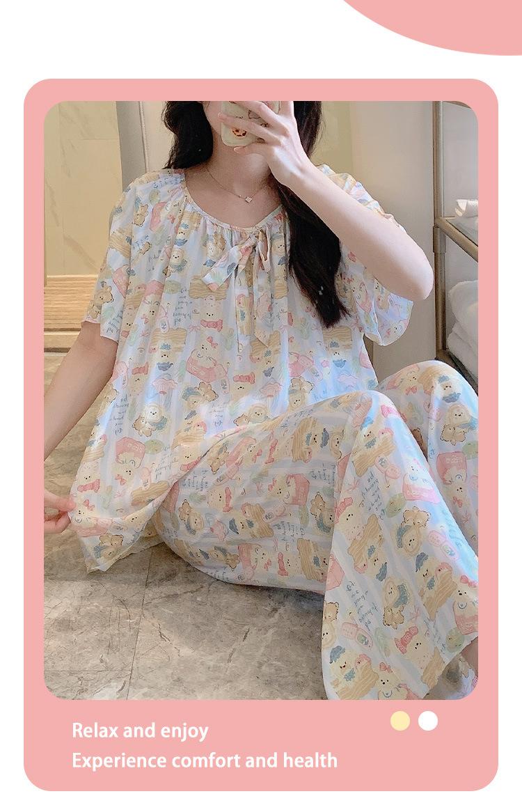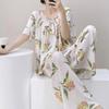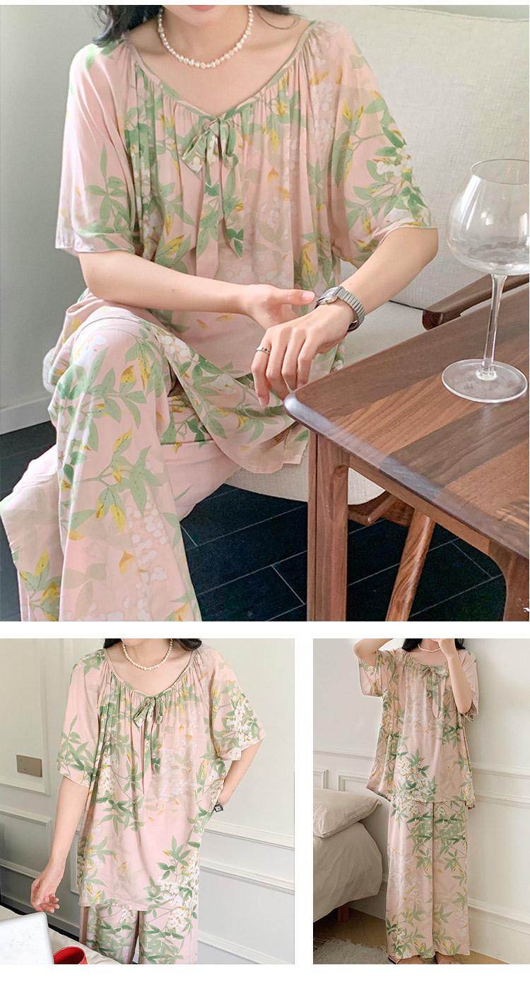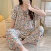 Pijamas de verano para mujer, de alta calidad, de manga corta, con pantalones anchos, de algodón y seda, ropa de casa, dulce nuevo traje de algodón y seda de estilo chino