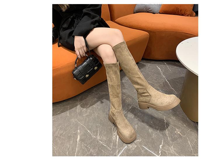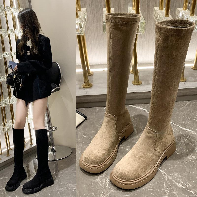 Botas Largas Pequeñas para Mujer 2024 Otoño e Invierno Nuevas Botas Elásticas de Gamuza Ajustadas Look Adelgazante Botas Altas Largas Sexy