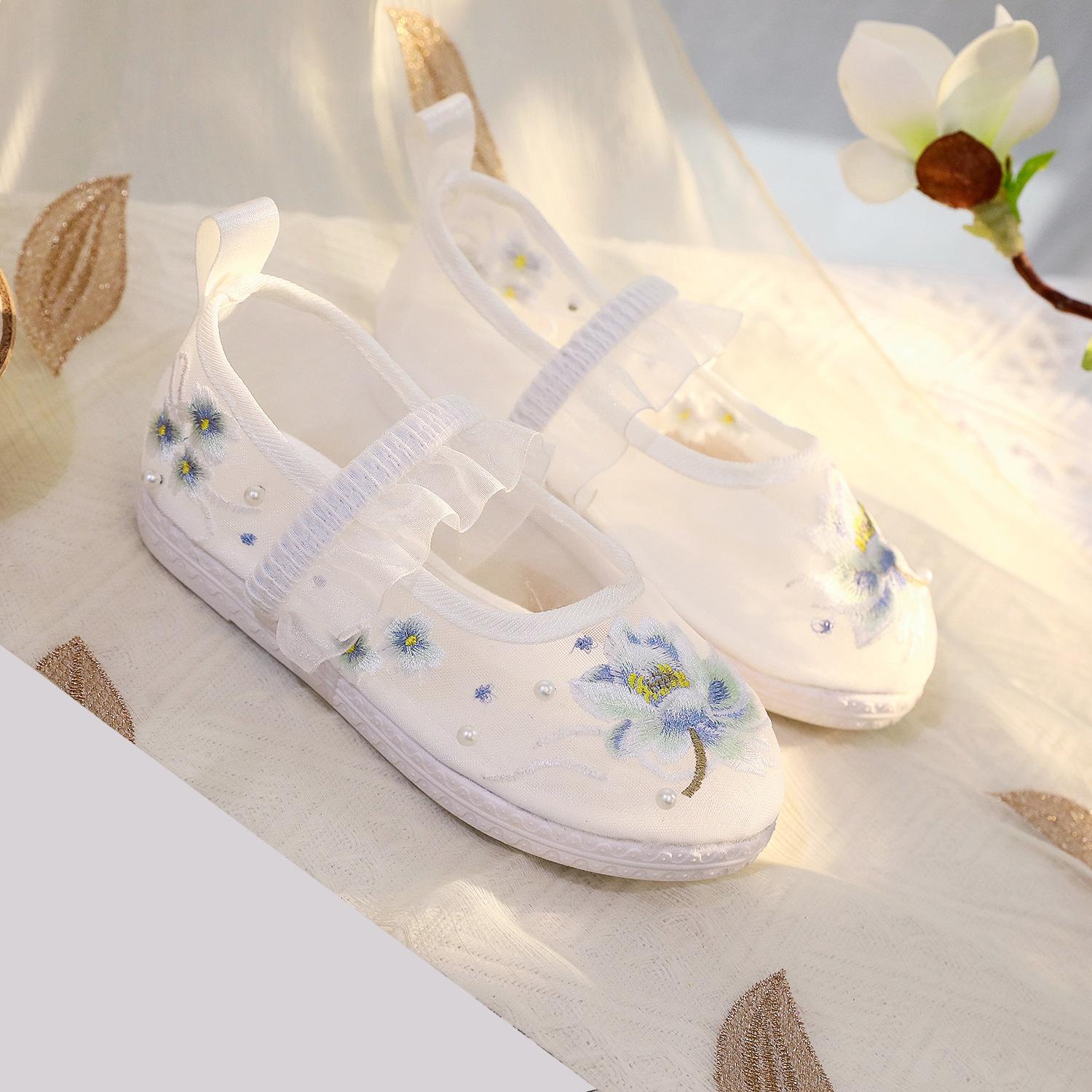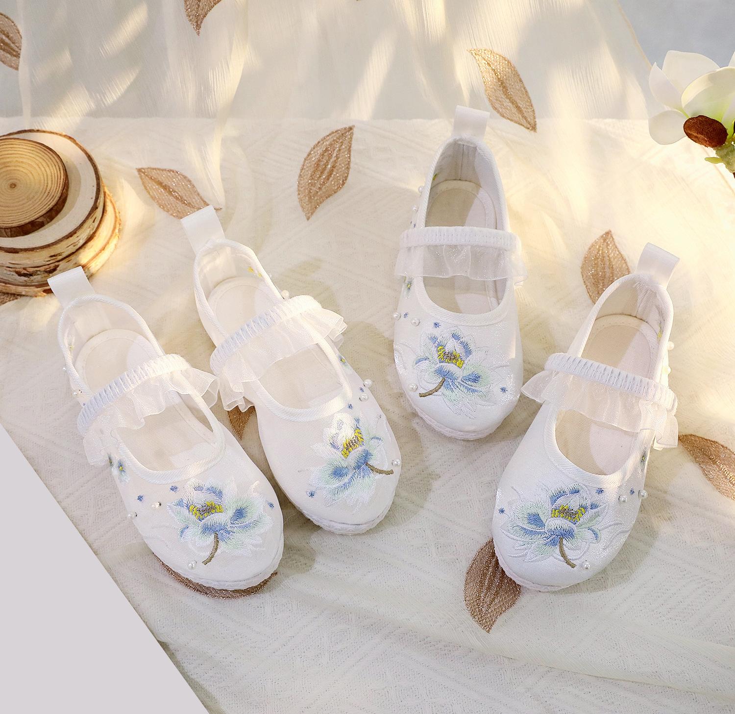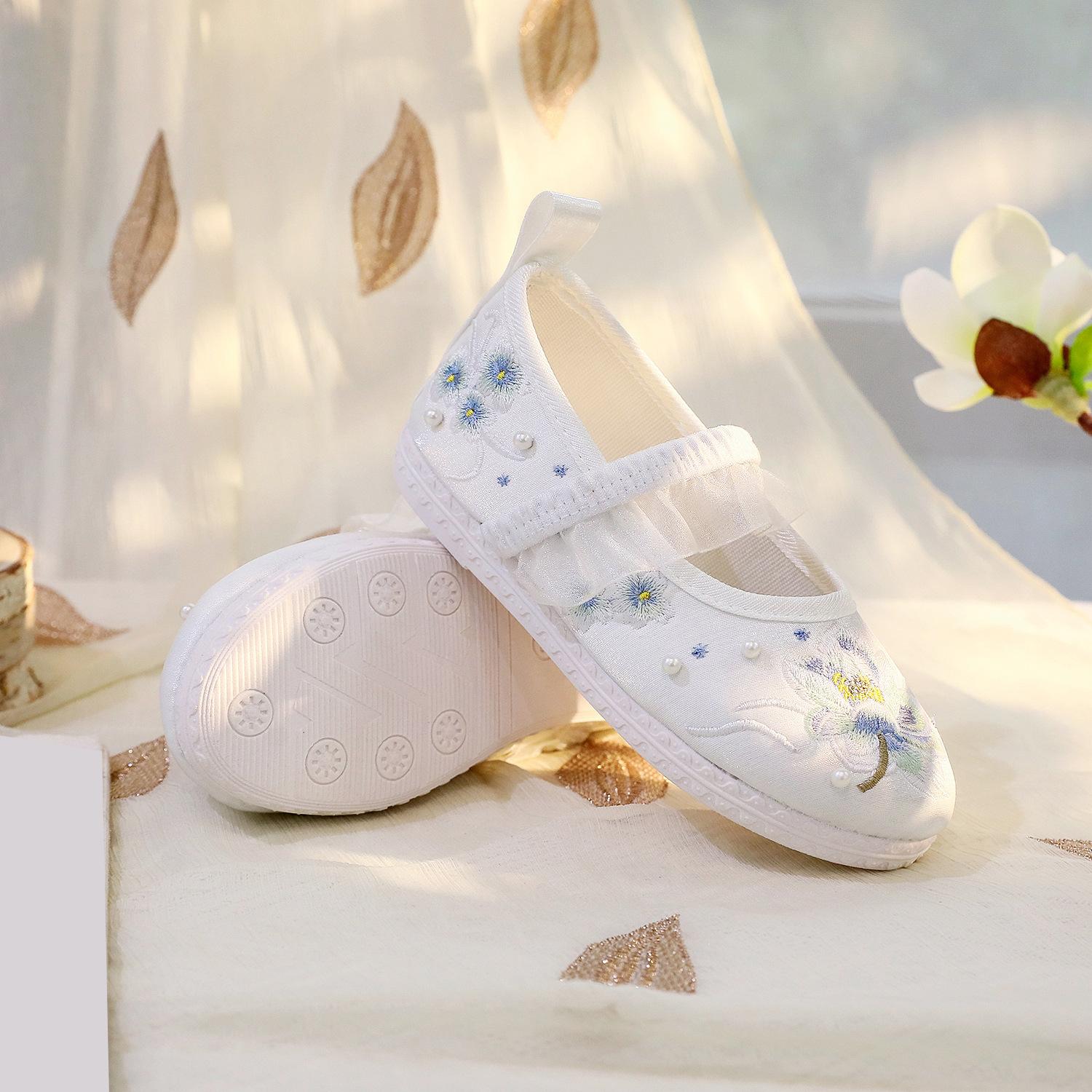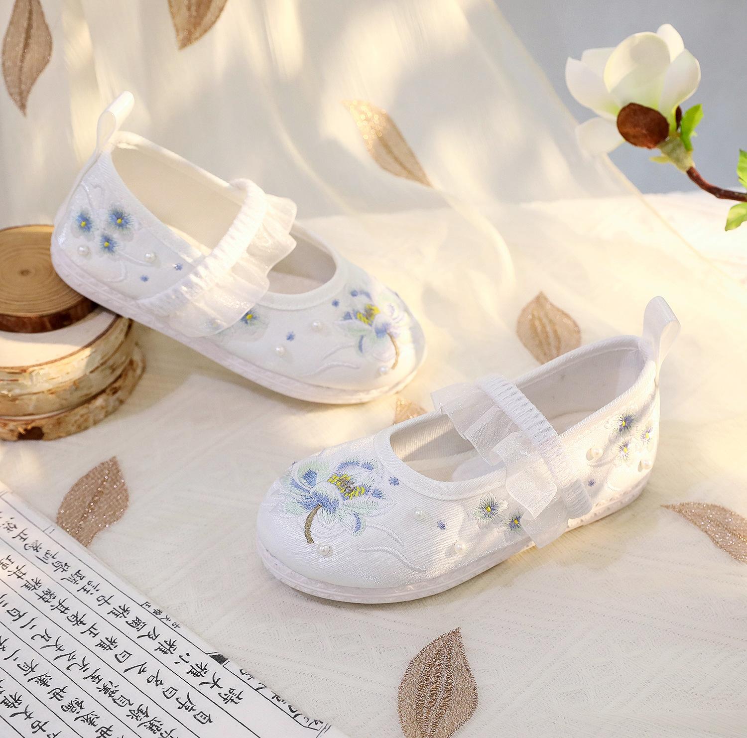 Zapatos bordados Hanfu, zapatos de estilo étnico para niñas, zapatos de actuación, zapatos de tela para niños, zapatos hanfu de estilo antiguo, zapatos de actuación, zapatos de traje antiguo