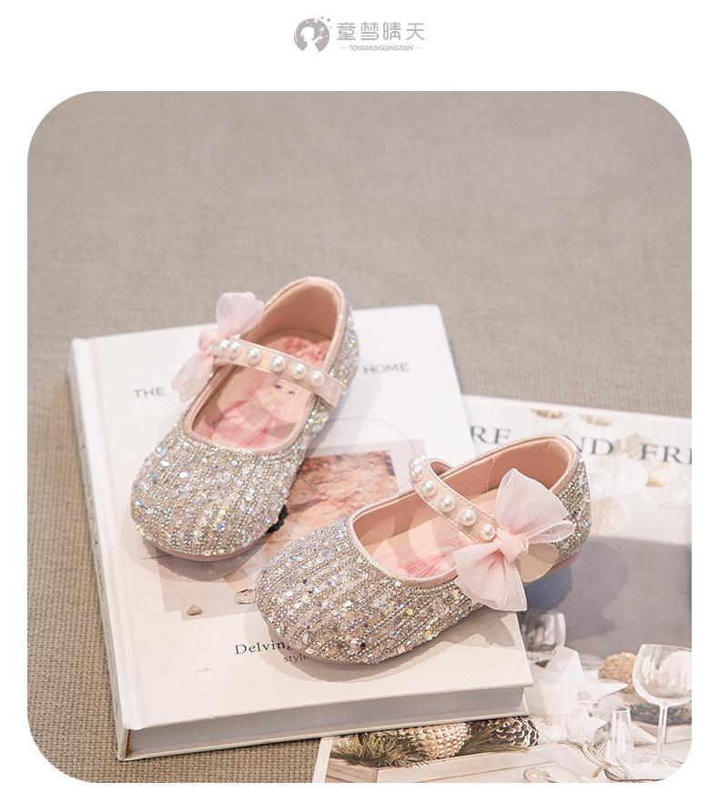 Zapatos de Princesa para Niñas Zapatos de Cristal de Verano Zapatos para Niños 2025 Nuevos Zapatos de Cuero para Actuación de Vestir Zapatos de Suela Blanda para Niñas