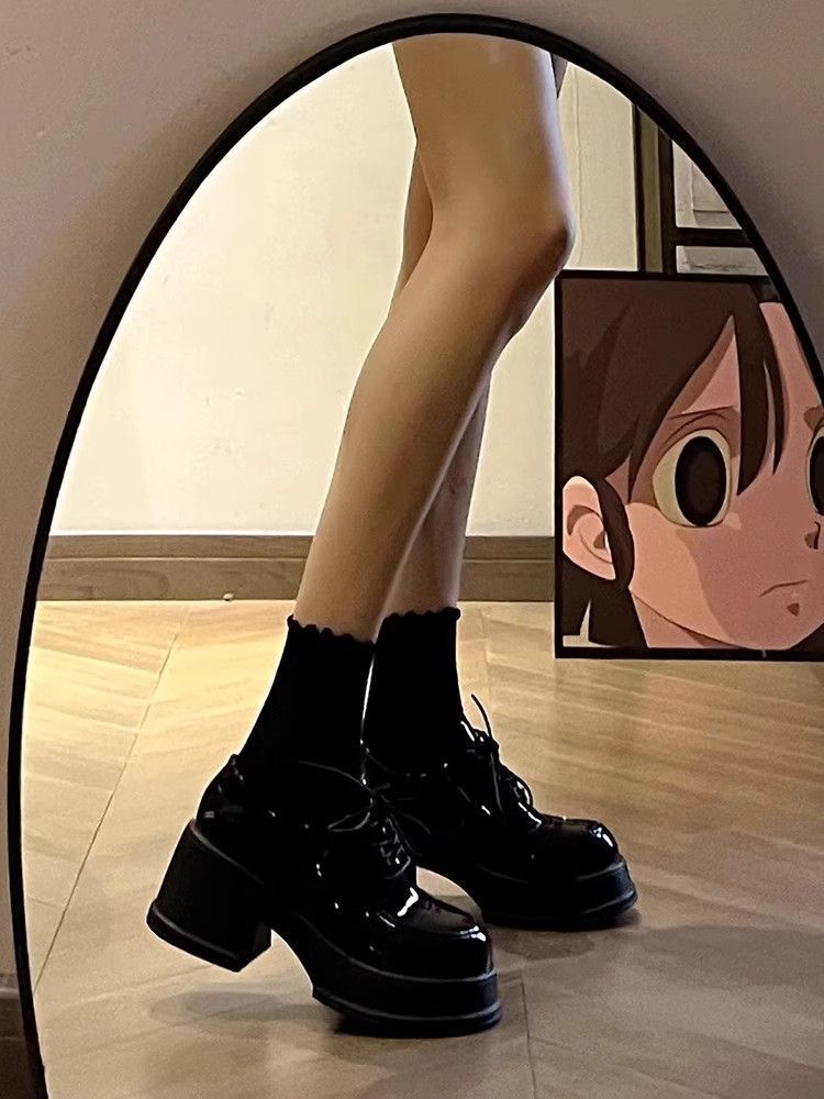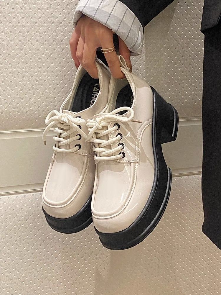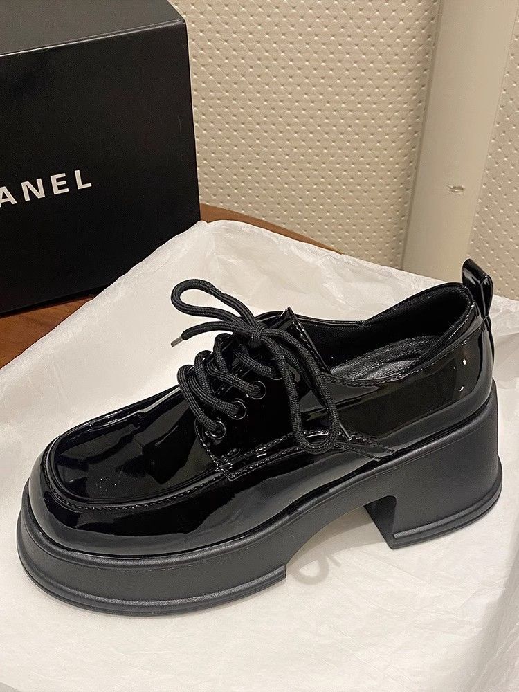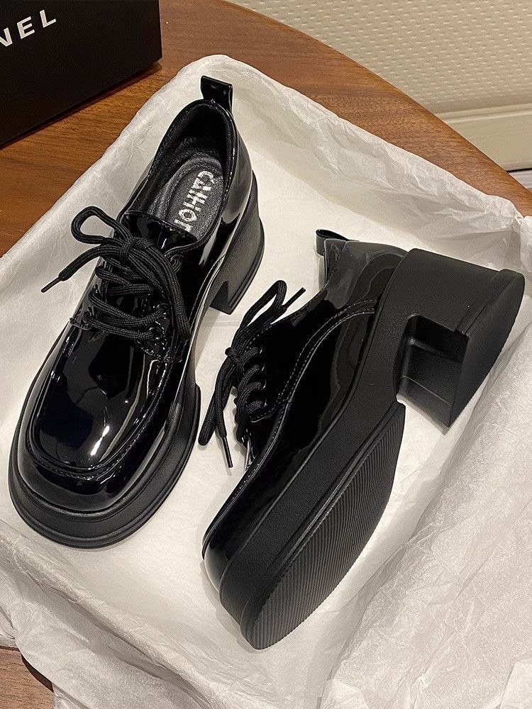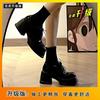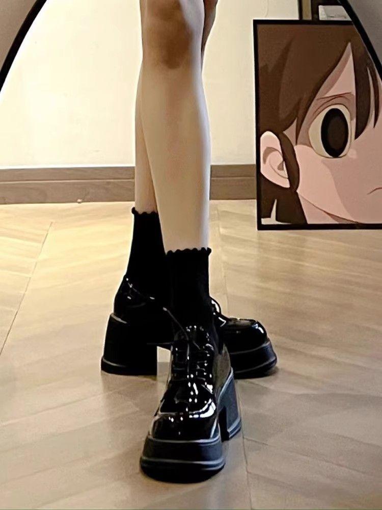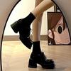 Zapatos de plataforma negros de piel para mujer, de otoño, con aumento de altura, tacón grueso, Mary Jane, mocasines de tacón alto con punta redonda y muffin, sin cordones