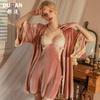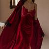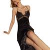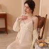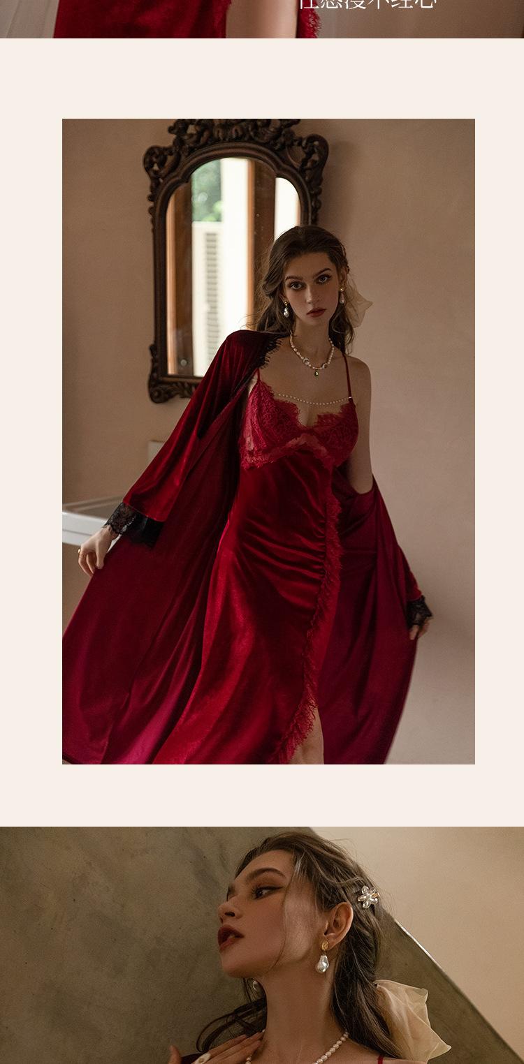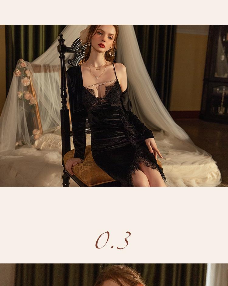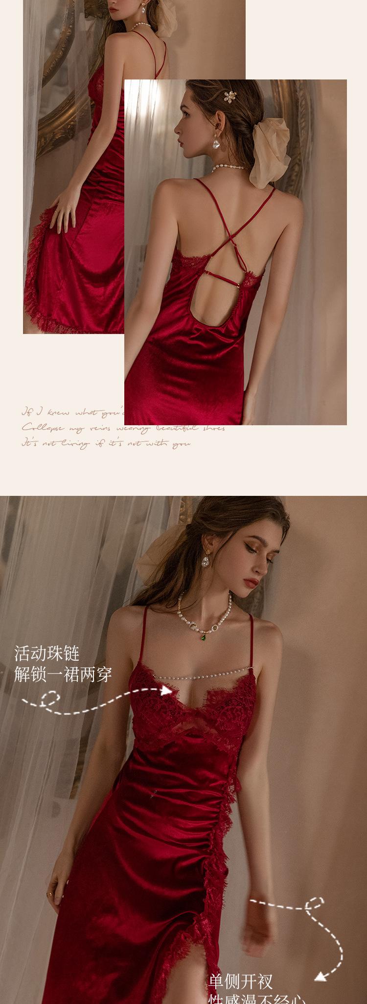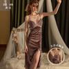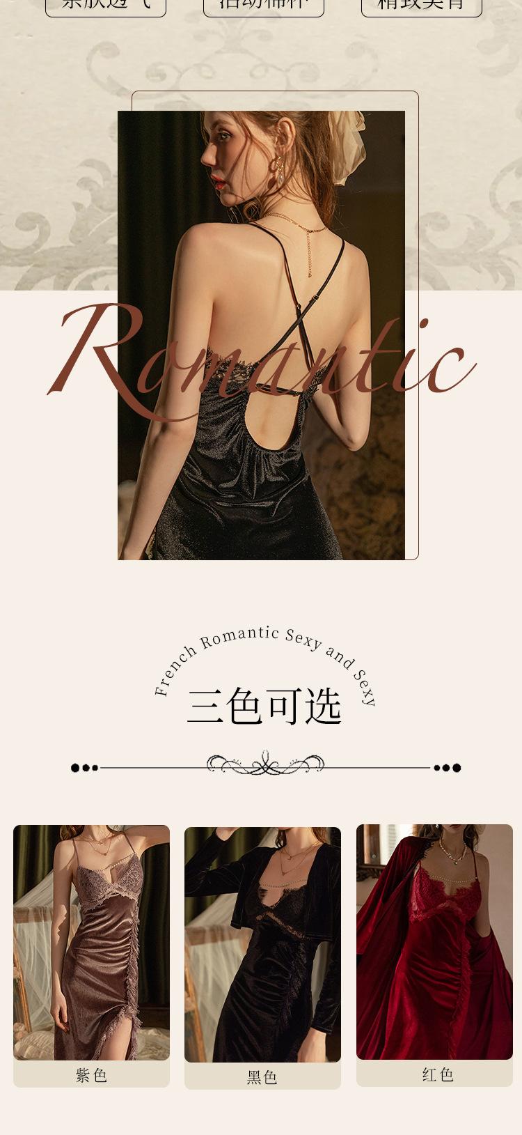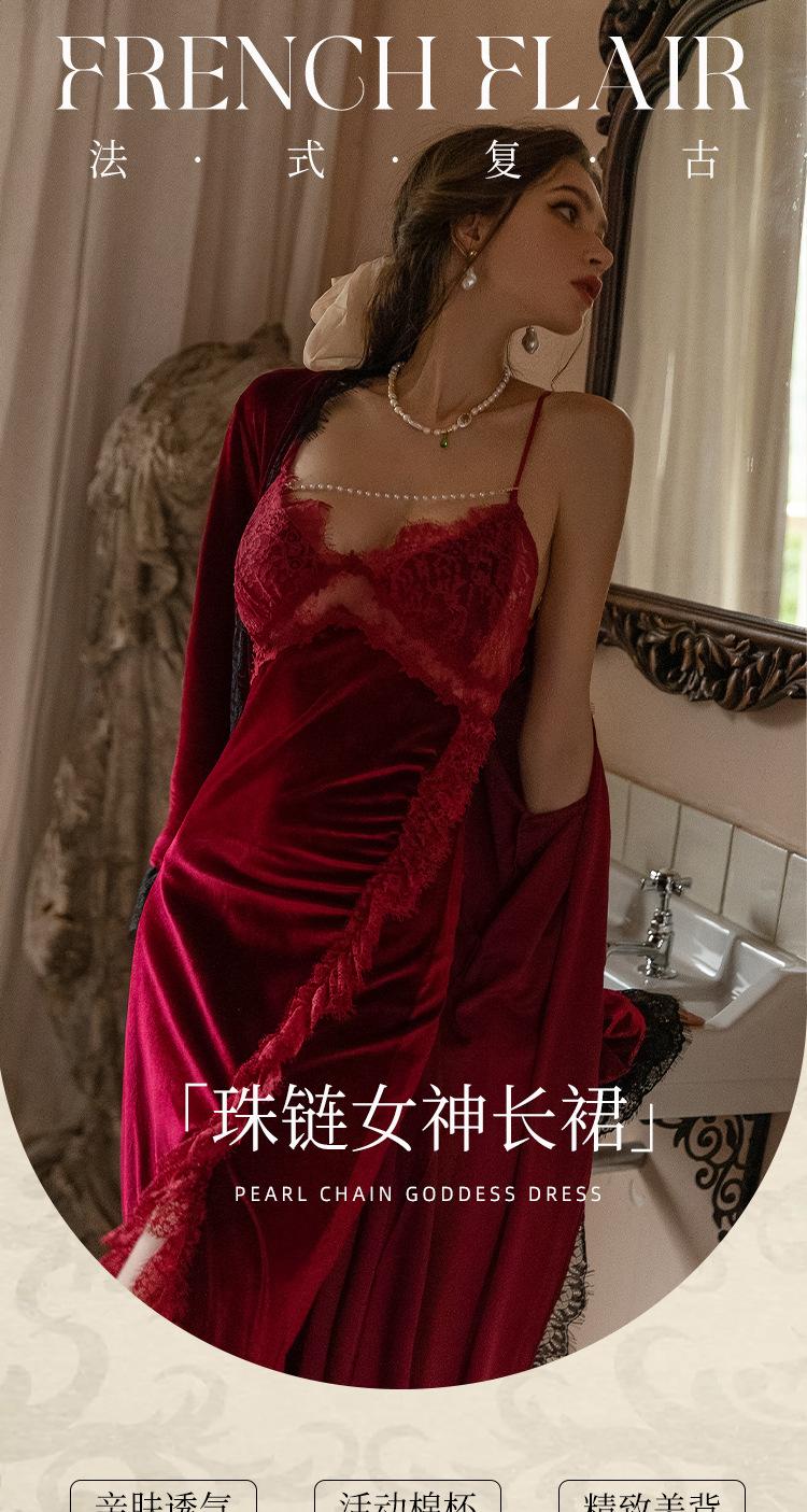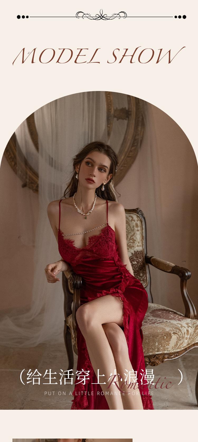 Camisón Sexy Retro Francés con Tirantes para Mujer, Ropa de Casa de Terciopelo Dorado para Otoño e Invierno, Pijama Tentación de Piernas Largas con Abertura y Espalda Hermosa