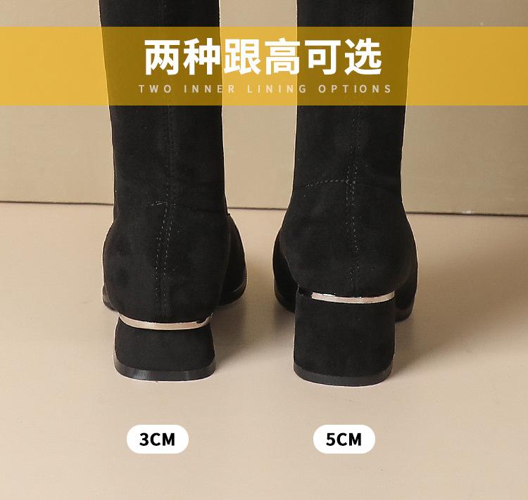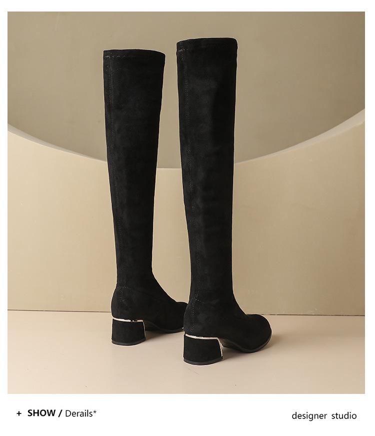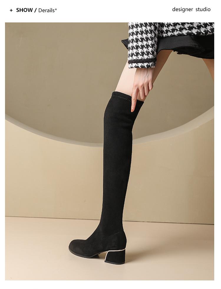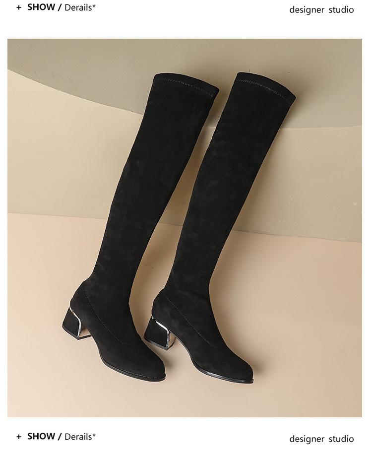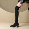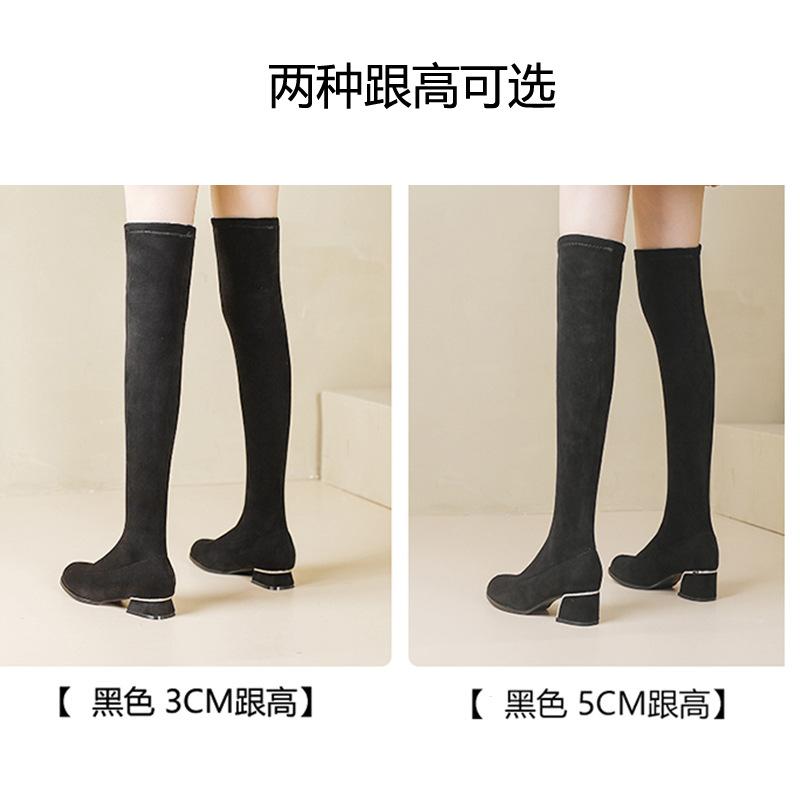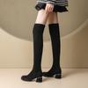 Botas altas hasta el muslo para mujer, otoño e invierno 2023, botas altas de terciopelo de piel de oveja con forro polar, botas elásticas adelgazantes de tacón medio grueso