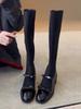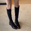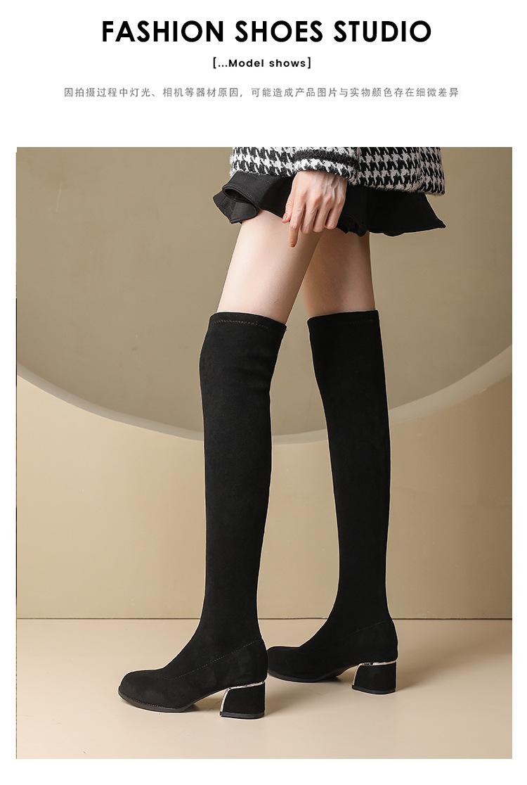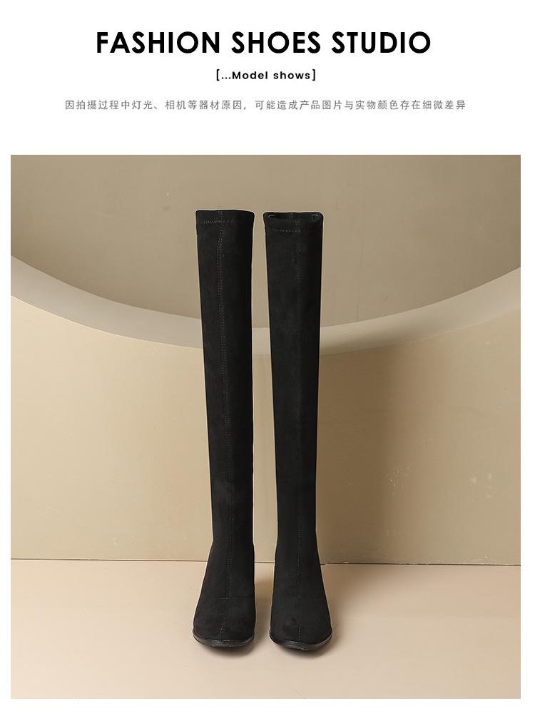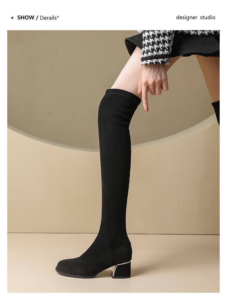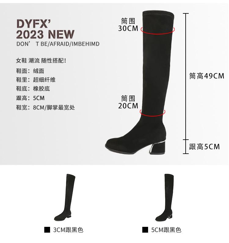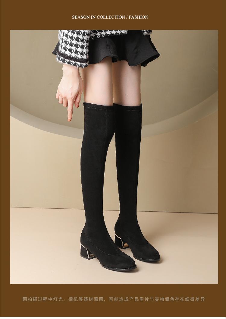 Botas altas hasta el muslo para mujer, otoño e invierno 2023, botas altas de terciopelo de piel de oveja con forro polar, botas elásticas adelgazantes de tacón medio grueso