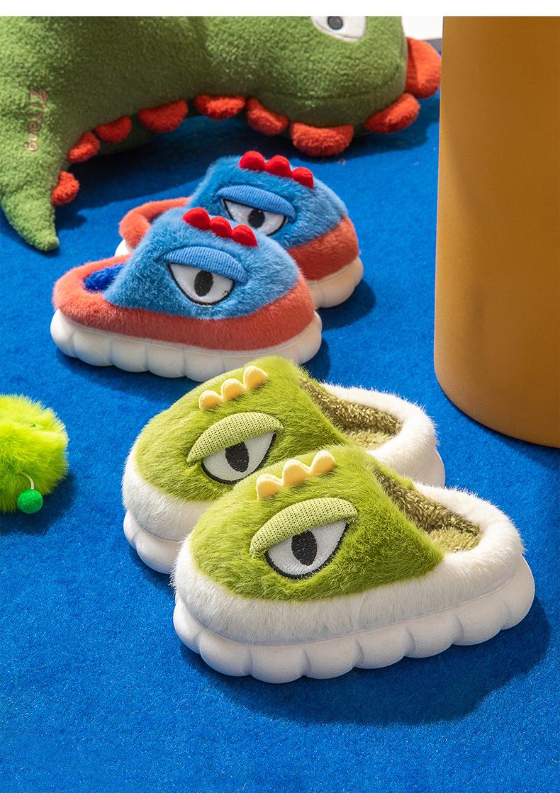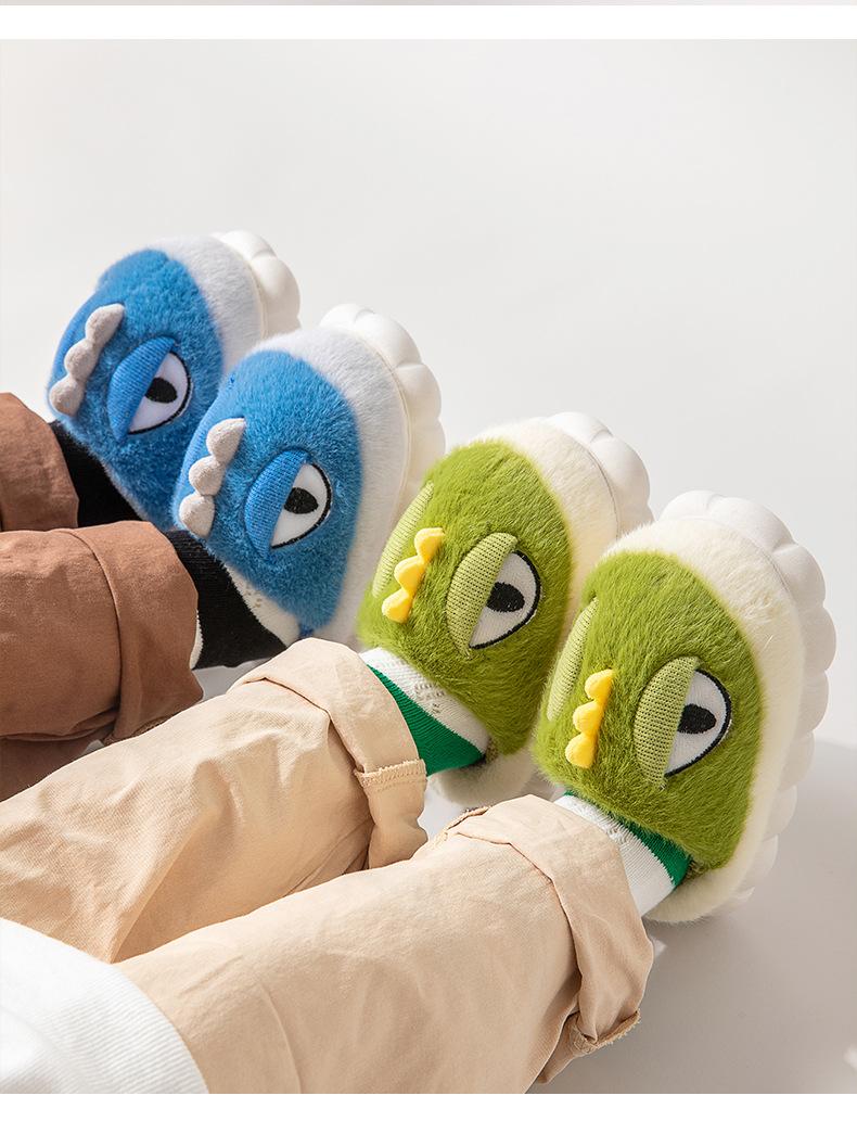Zapatillas de algodón para niños Nanbowan, para niños y niñas, otoño e invierno, con dibujos de dinosaurios, cálidas, antideslizantes, para interiores, pequeñas, medianas y grandes, de felpa