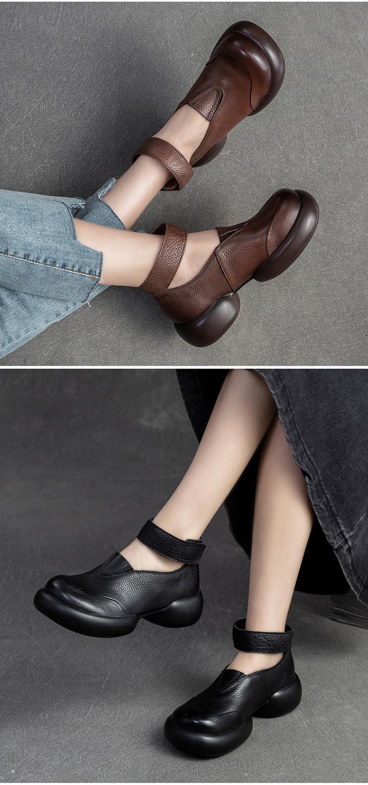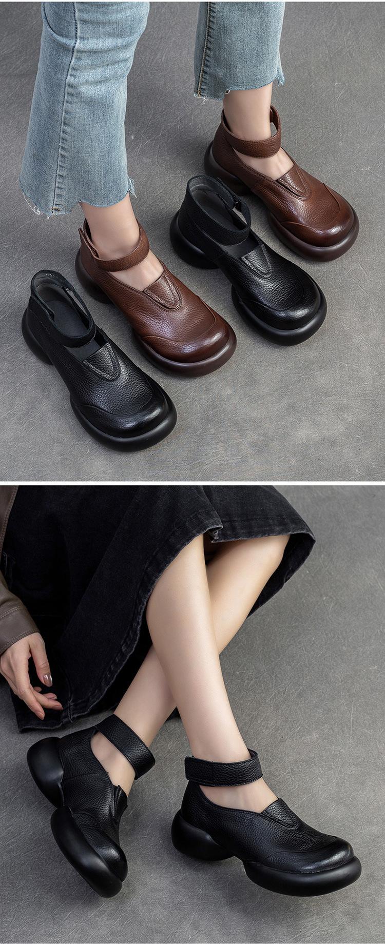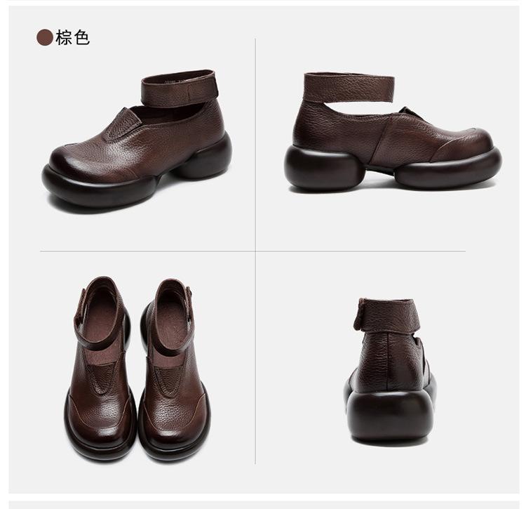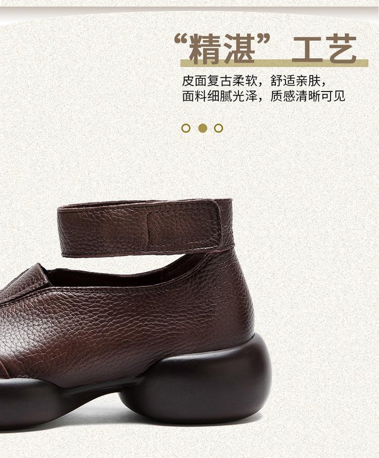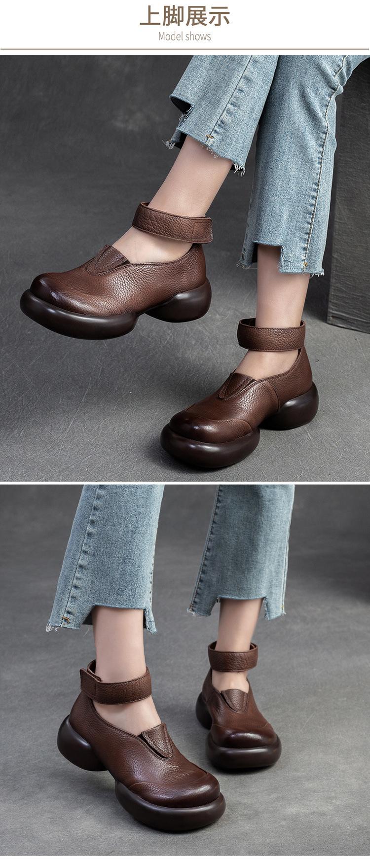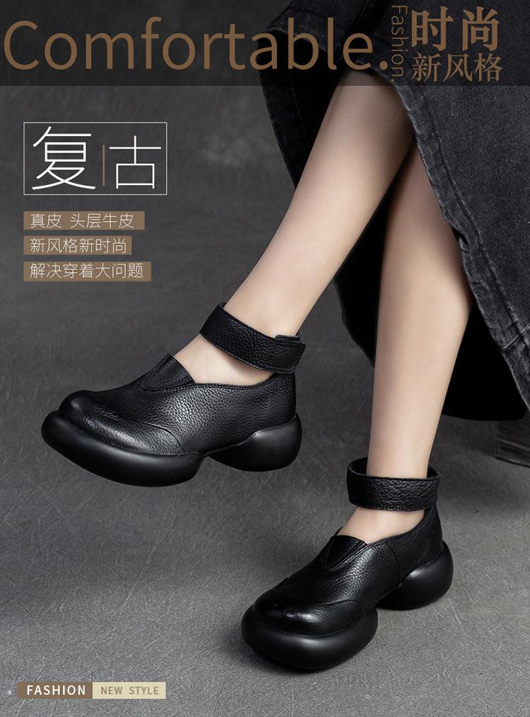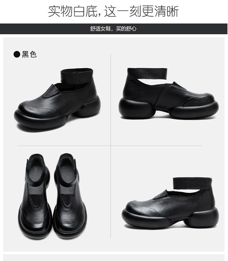 Zapatos de mujer elegantes de una sola capa con punta redonda y suela gruesa, estilo Hepburn casual con velcro cómodo, primavera 2024 Shanghai Jie shu