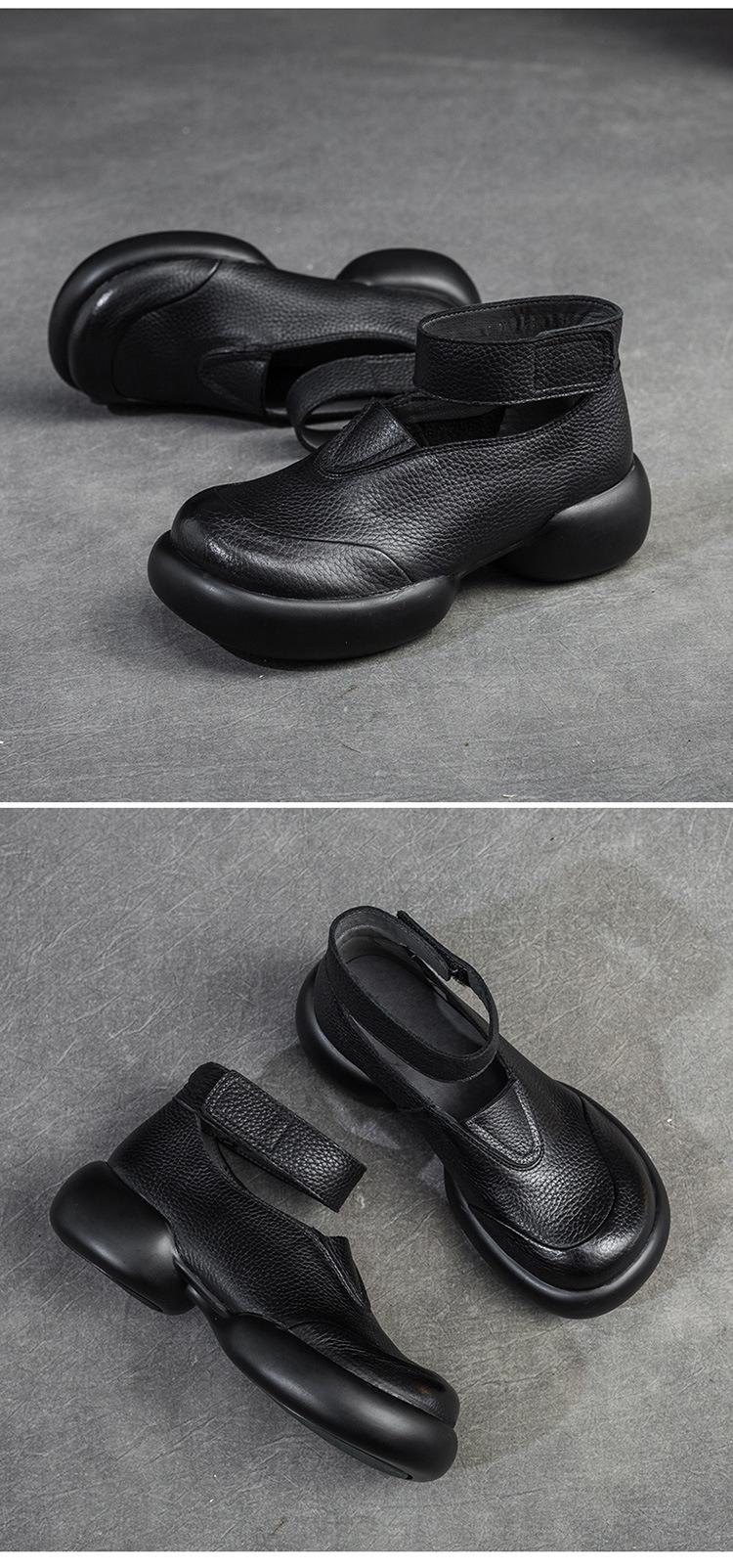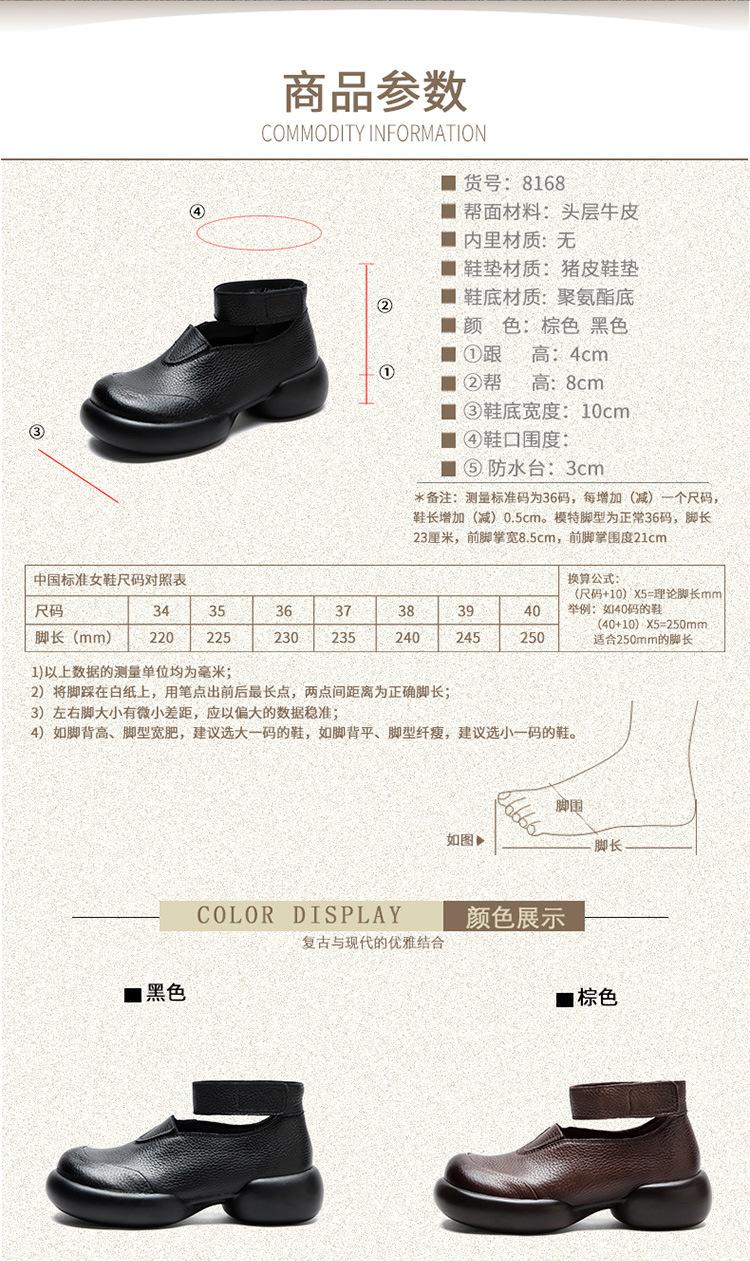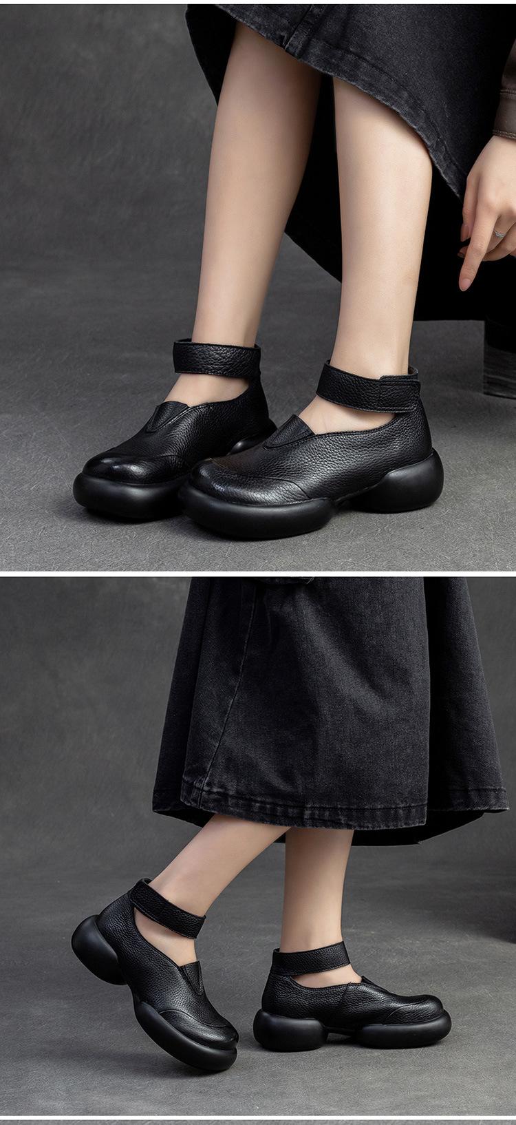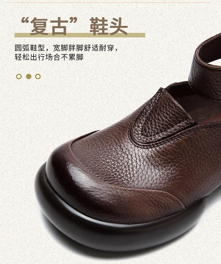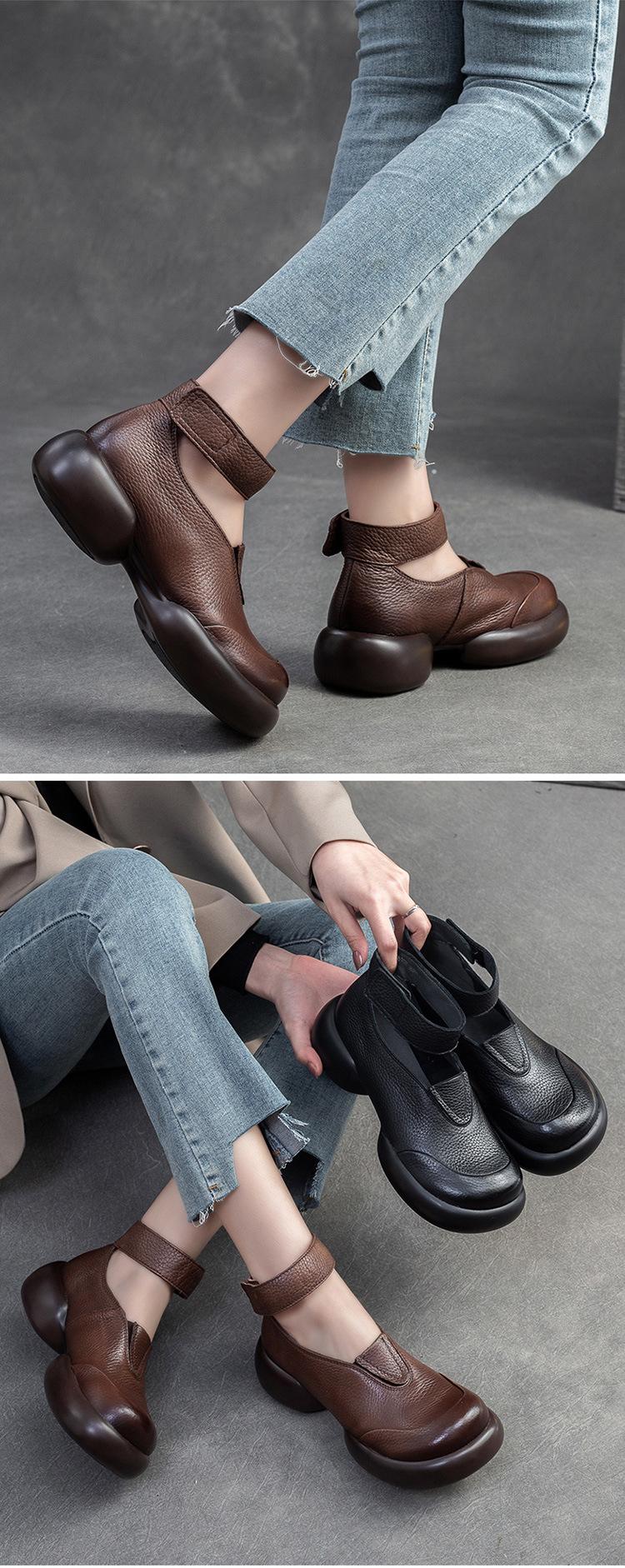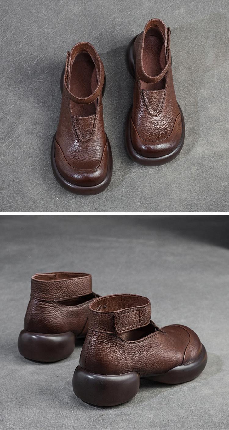 Zapatos de mujer elegantes de una sola capa con punta redonda y suela gruesa, estilo Hepburn casual con velcro cómodo, primavera 2024 Shanghai Jie shu