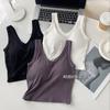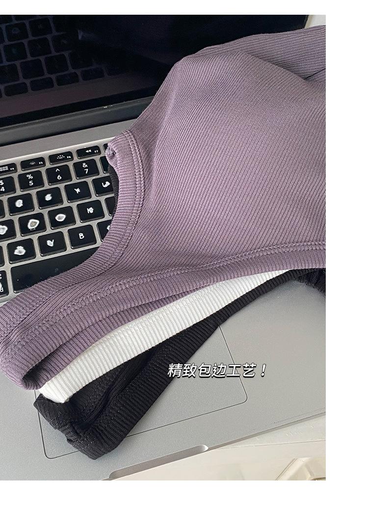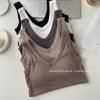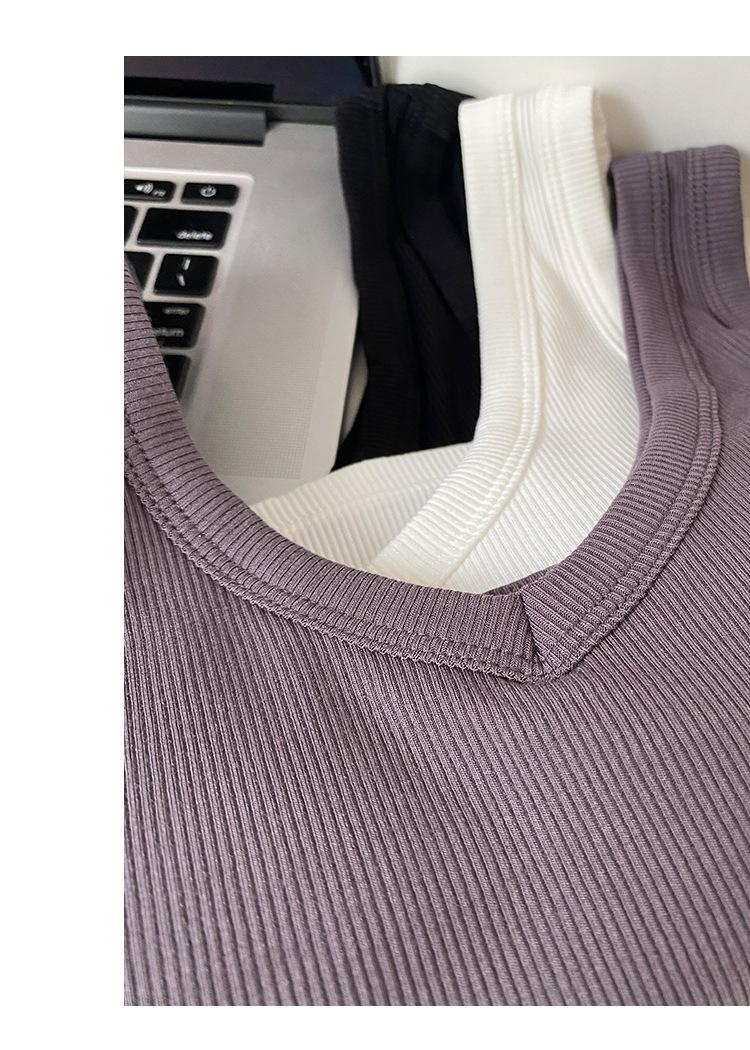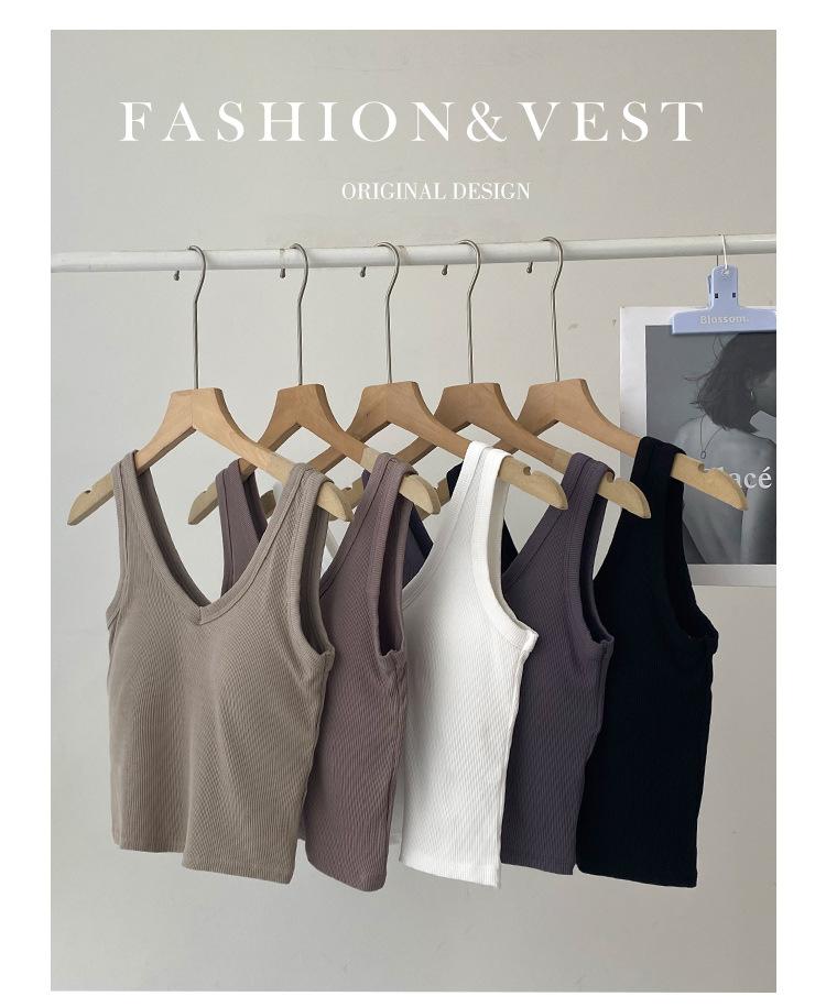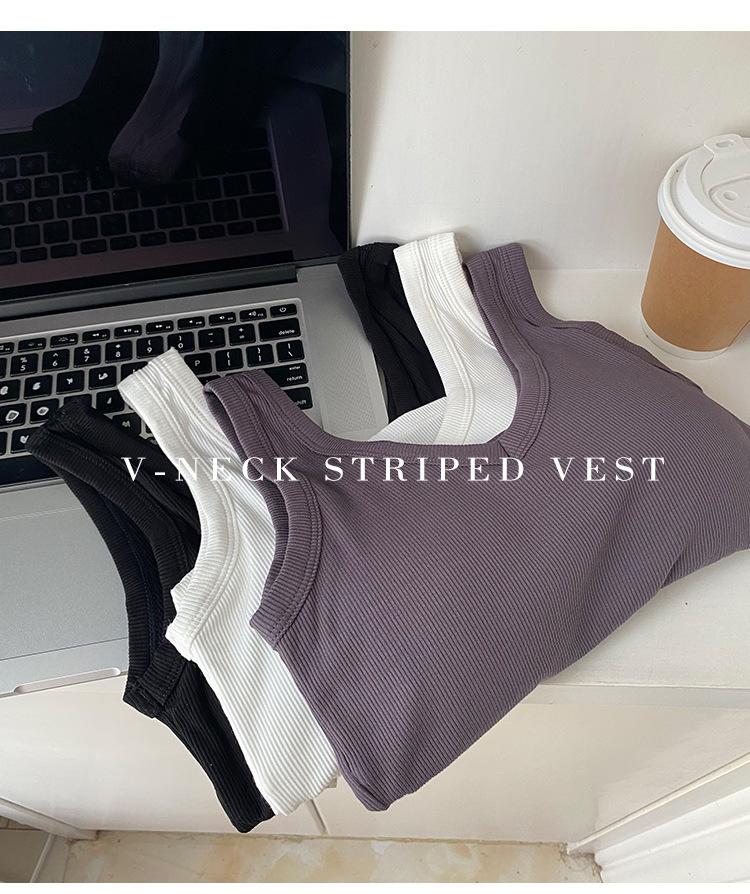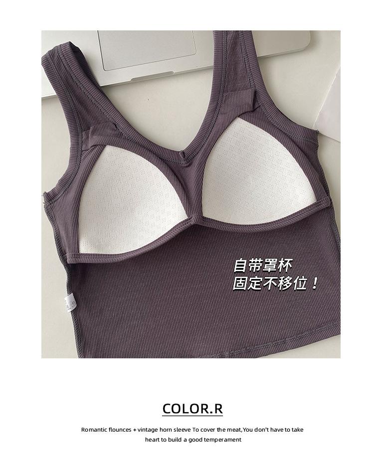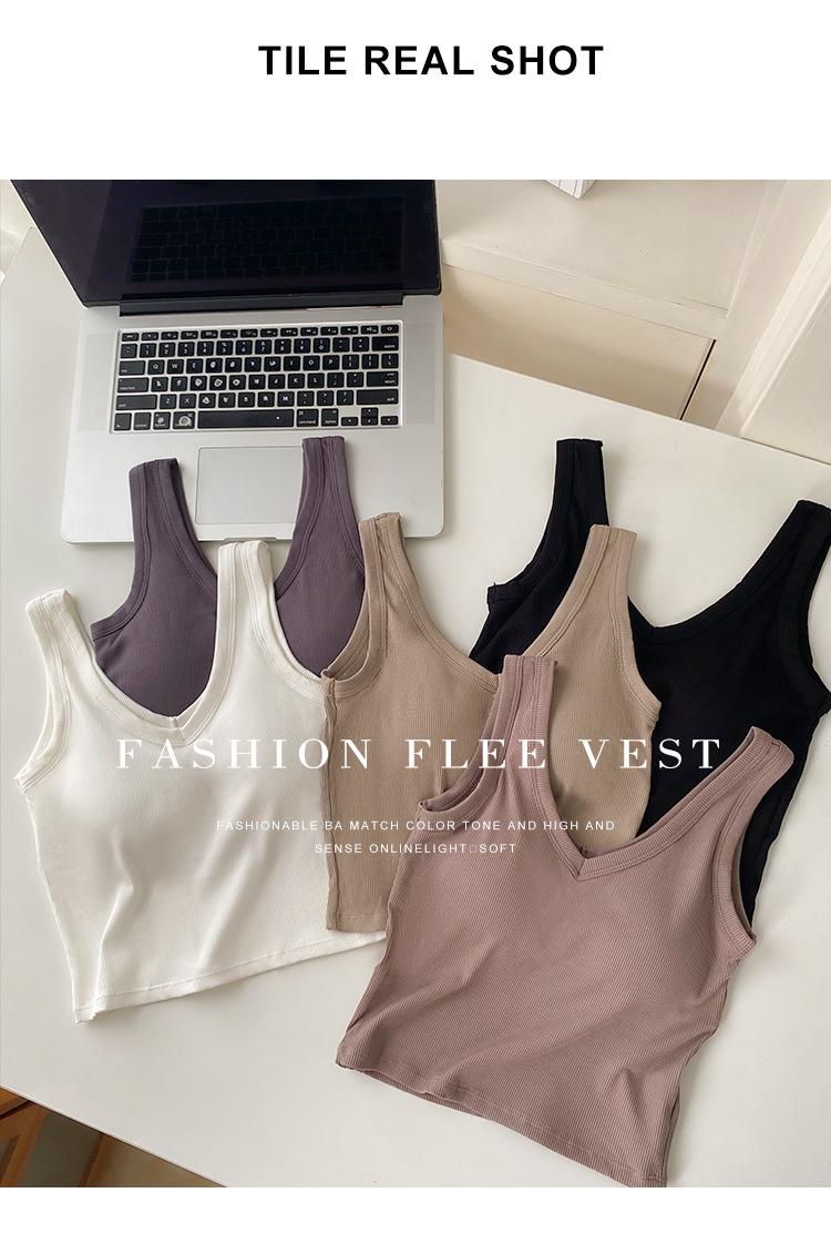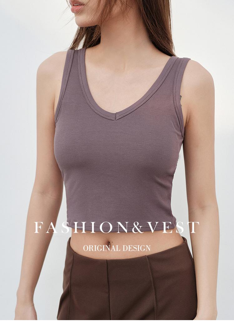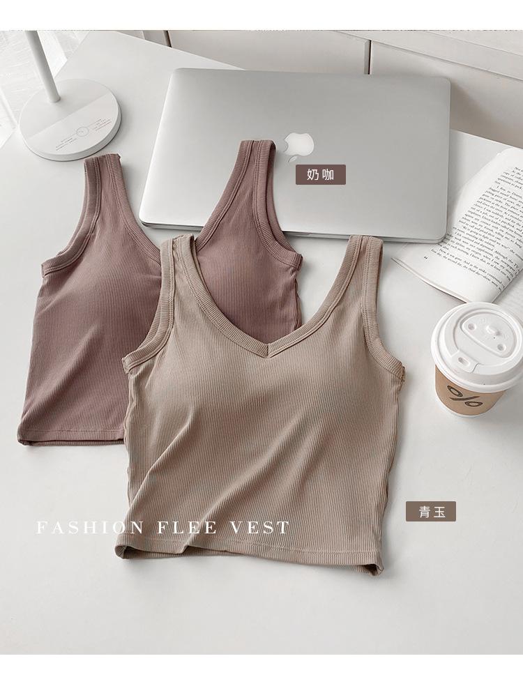 Top interior transpirable de verano de una pieza con escote en V y copa fija con hombros anchos y cierre de pecho.