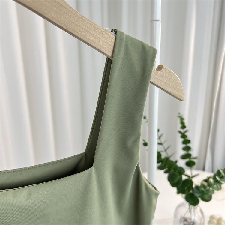 Camisola de seda de hielo con cuello cuadrado y hombros anchos para mujer, cinturón con almohadilla para el pecho, ropa exterior deportiva, ropa interior de verano, parte inferior corta para el ombligo, espalda hermosa