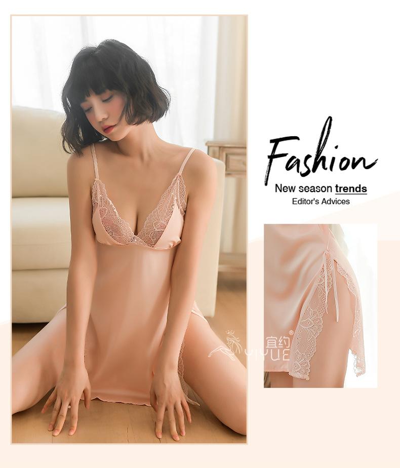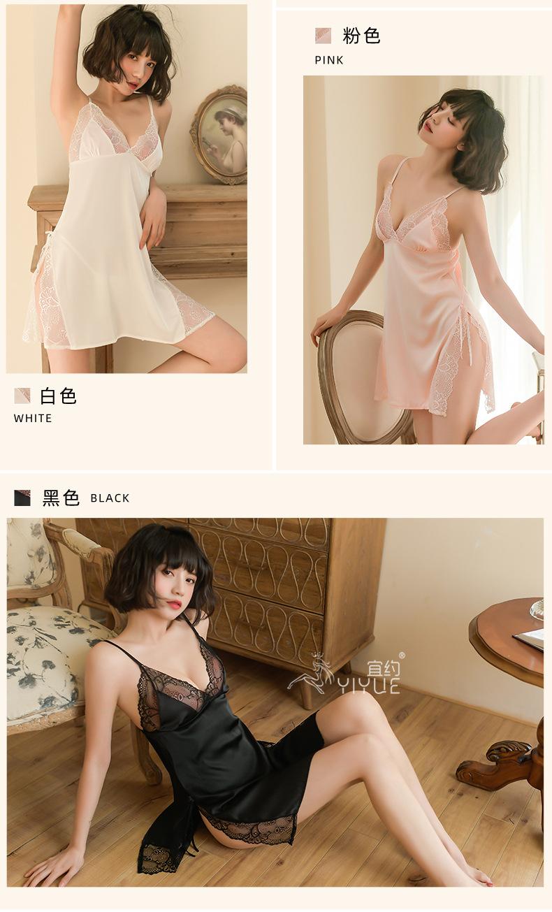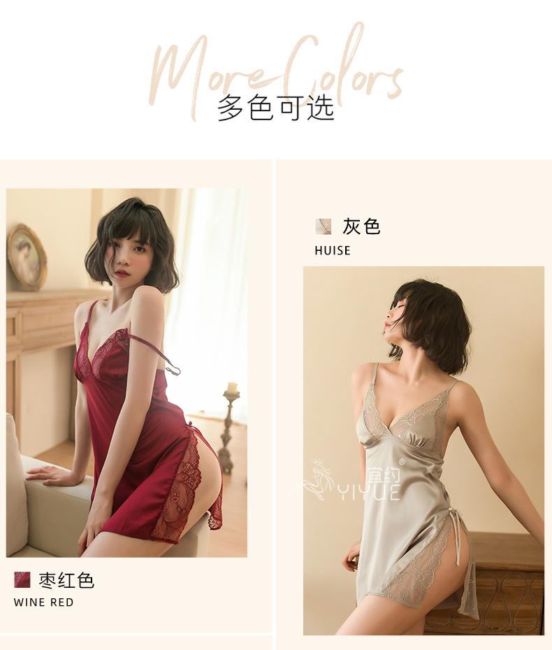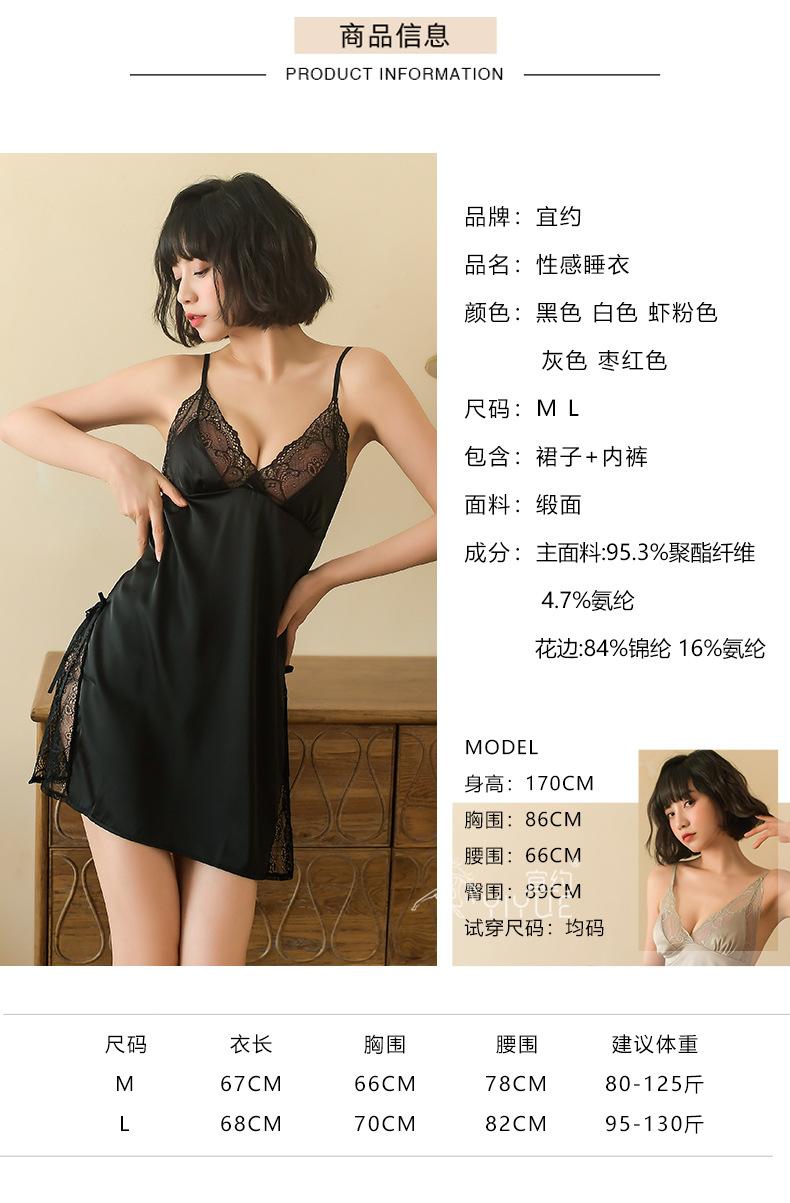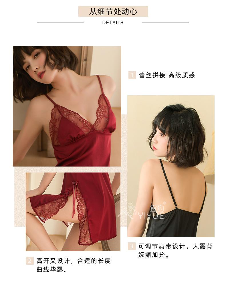 Marca Yiyue Camisón Sexy con Tirantes para Mujer Encaje Espalda Descubierta Tentación Lencería Sexy Escote en V Profundo Ropa de Casa Exportación 8144