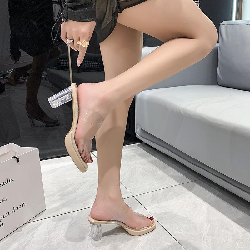 Sandalias de tacón alto transparentes con punta abierta y tacón grueso de cristal para mujer, estilo europeo y americano, de moda, para verano de 2022