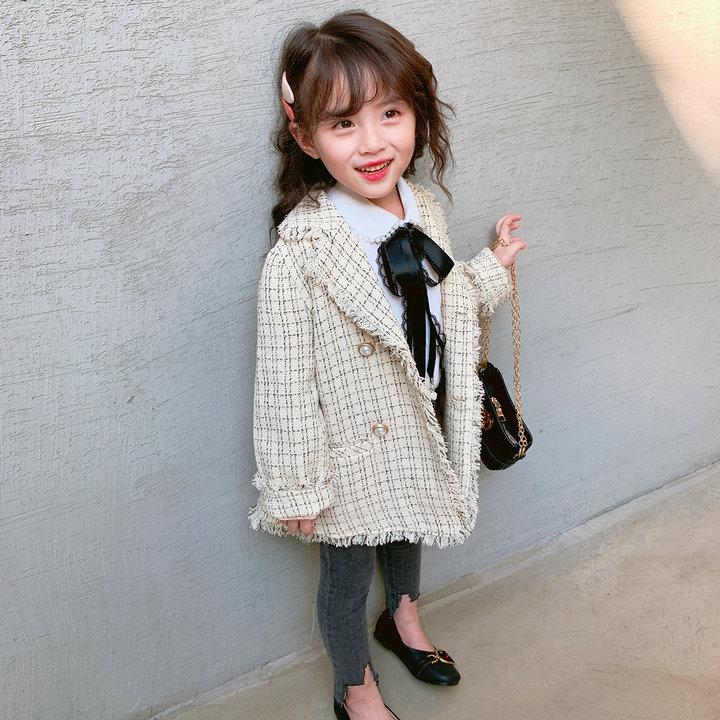 Traje para niña con estilo inspirado en Chanel, chaqueta exterior, nuevo atuendo de otoño para edades de 3 a 8 años, disponible al por mayor