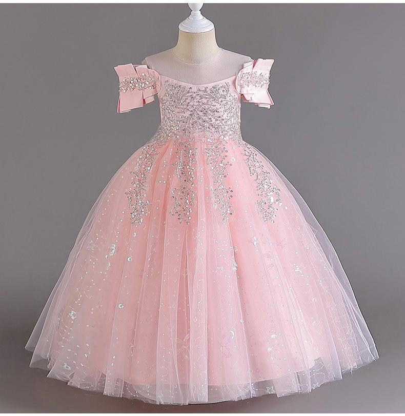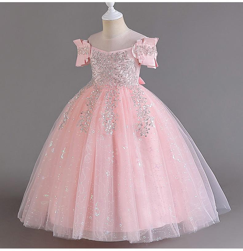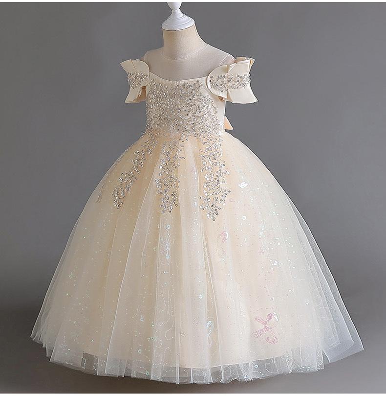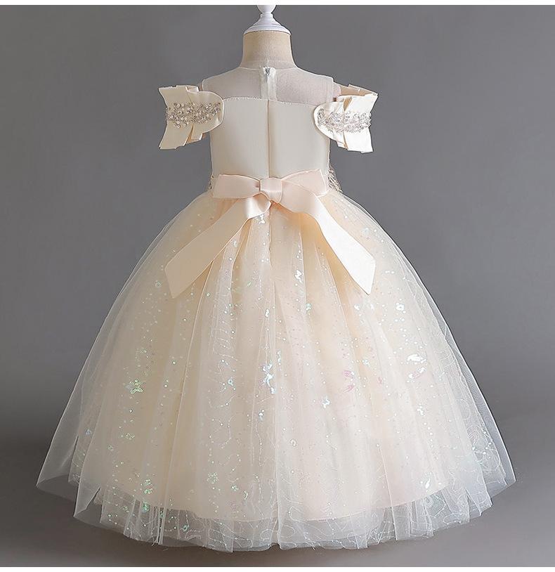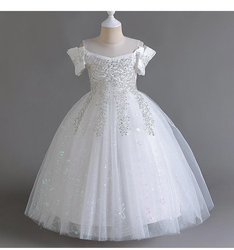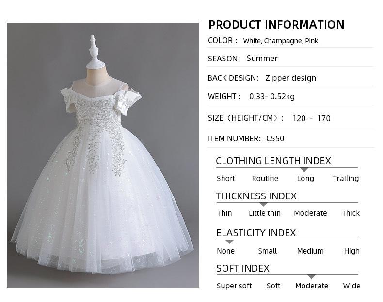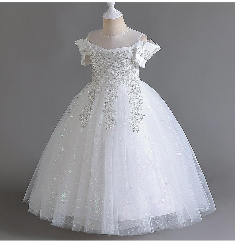 Vestido de Boda para Niñas Vestido de Princesa de Gasa Larga Ropa Infantil Mediana y Grande Ropa Infantil para Actuación Vestido de Noche para Piano Falda