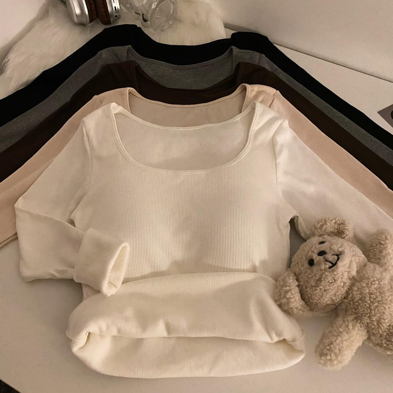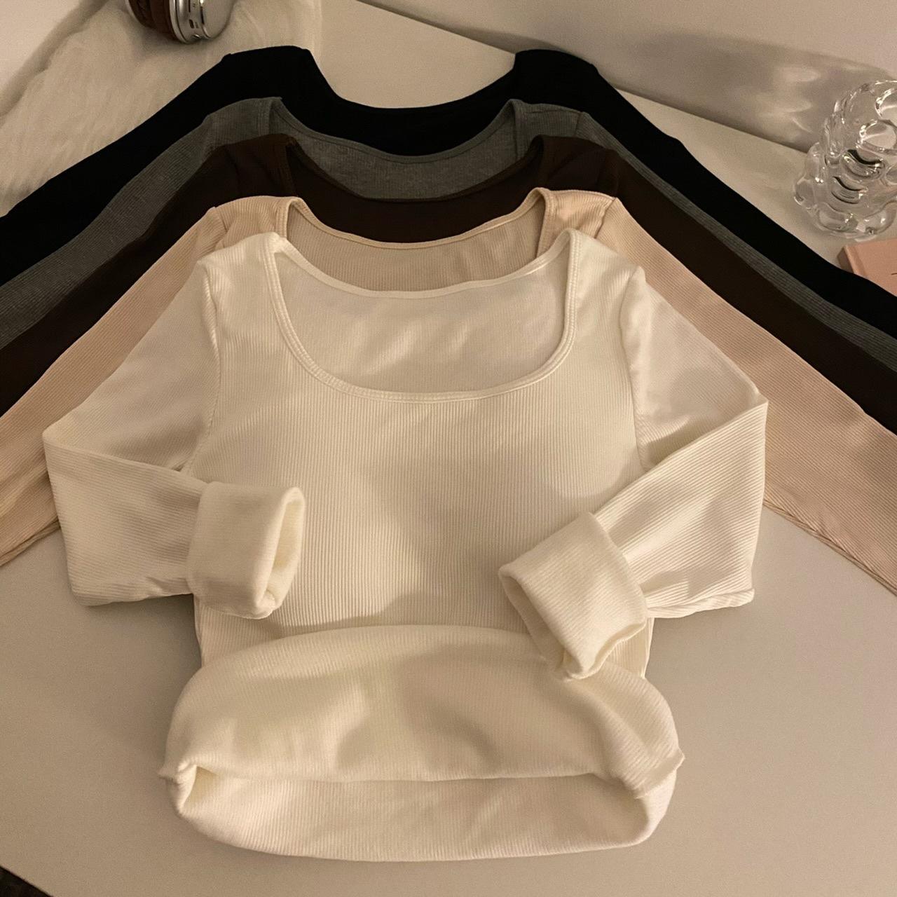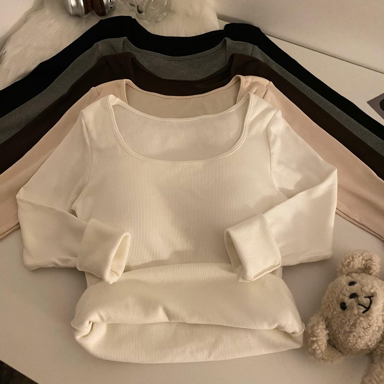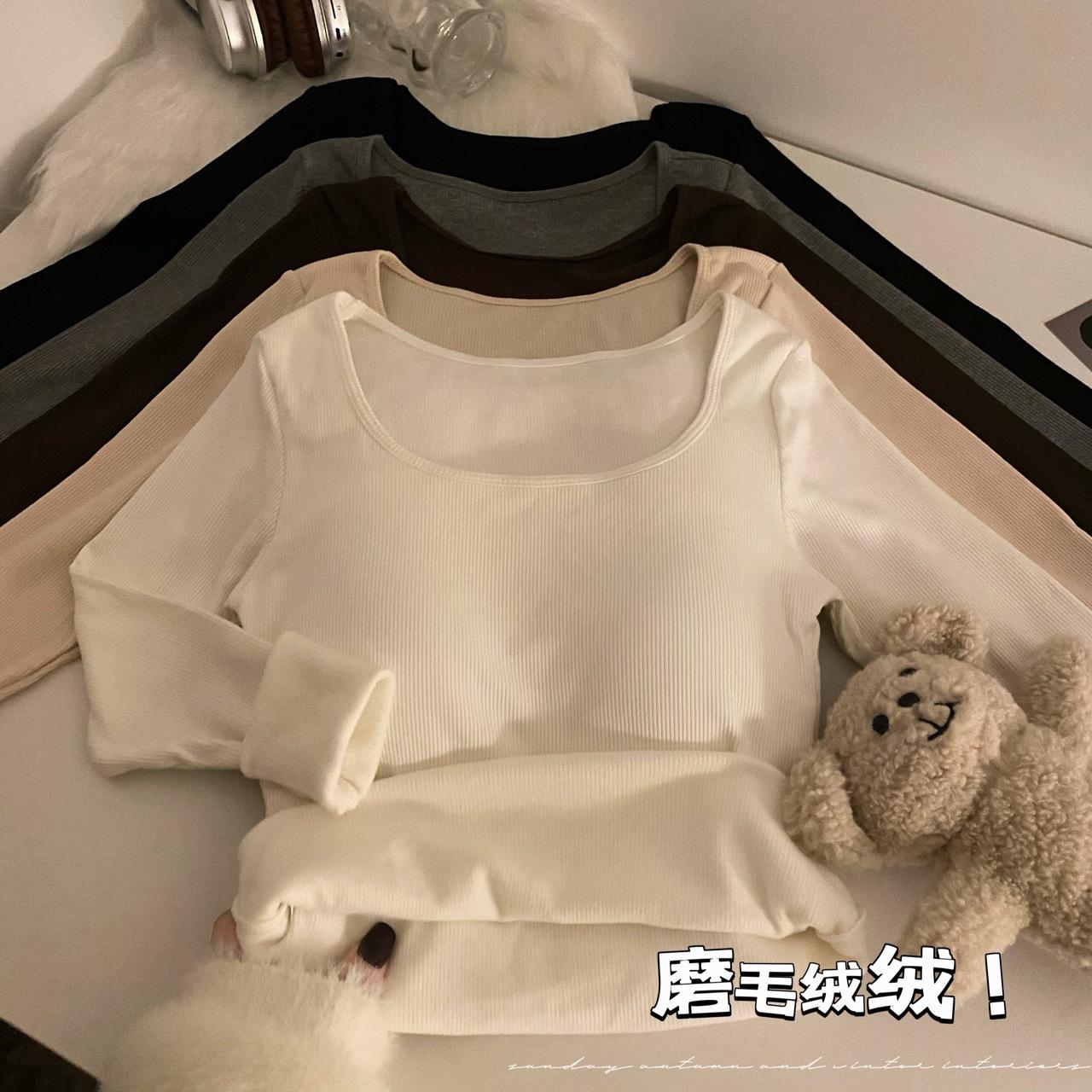 Camisa de manga larga cálida y gruesa con forro polar 2023 nueva camiseta interior adelgazante versátil de corte entallado para otoño e invierno para mujer