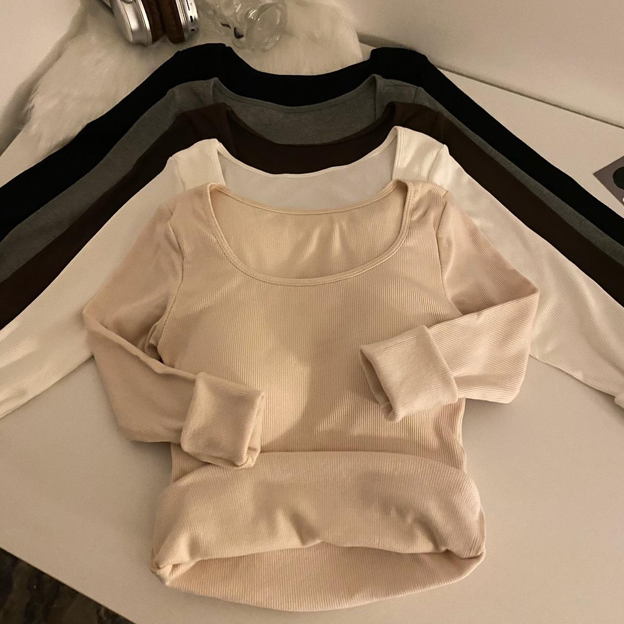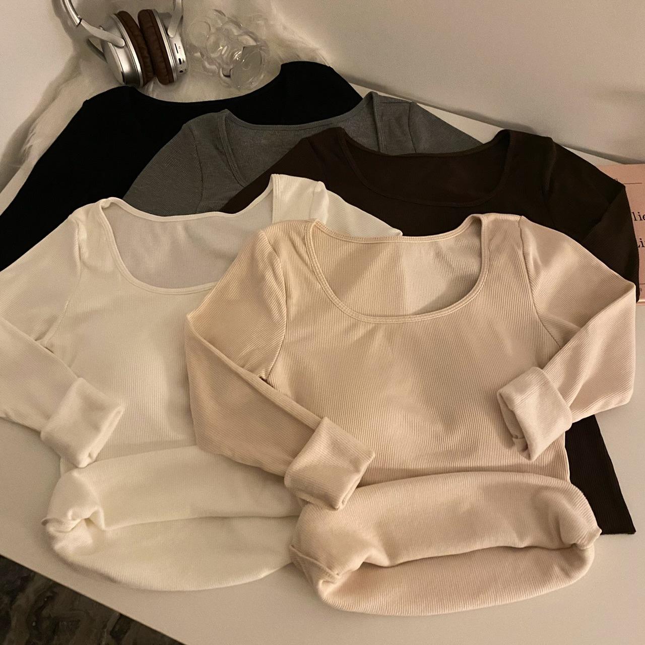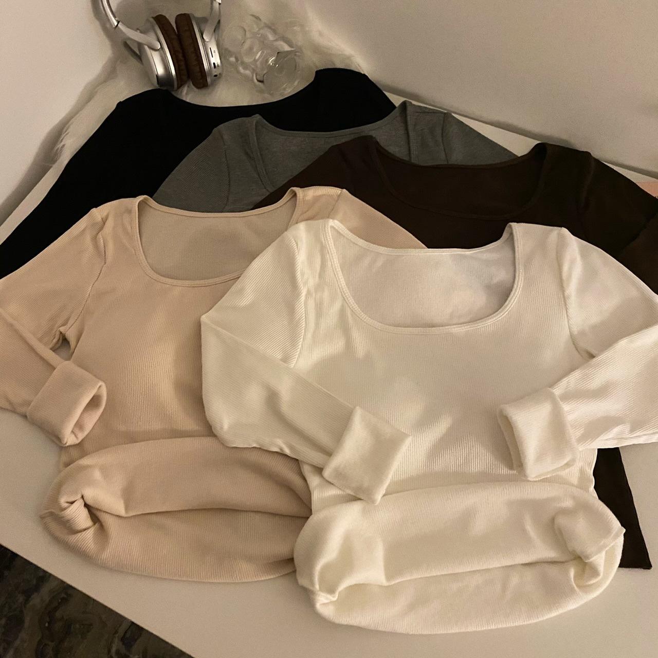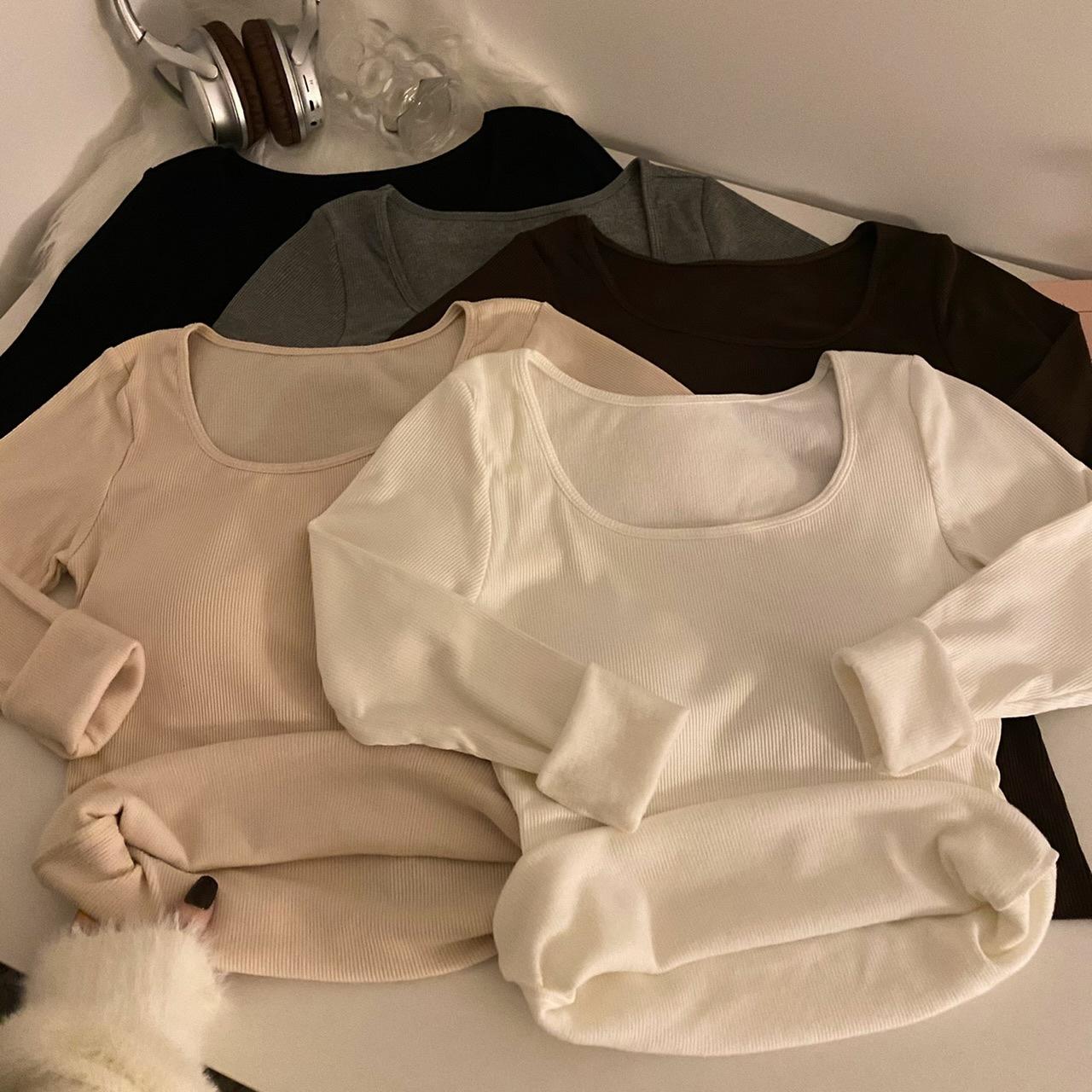Camisa de manga larga cálida y gruesa con forro polar 2023 nueva camiseta interior adelgazante versátil de corte entallado para otoño e invierno para mujer