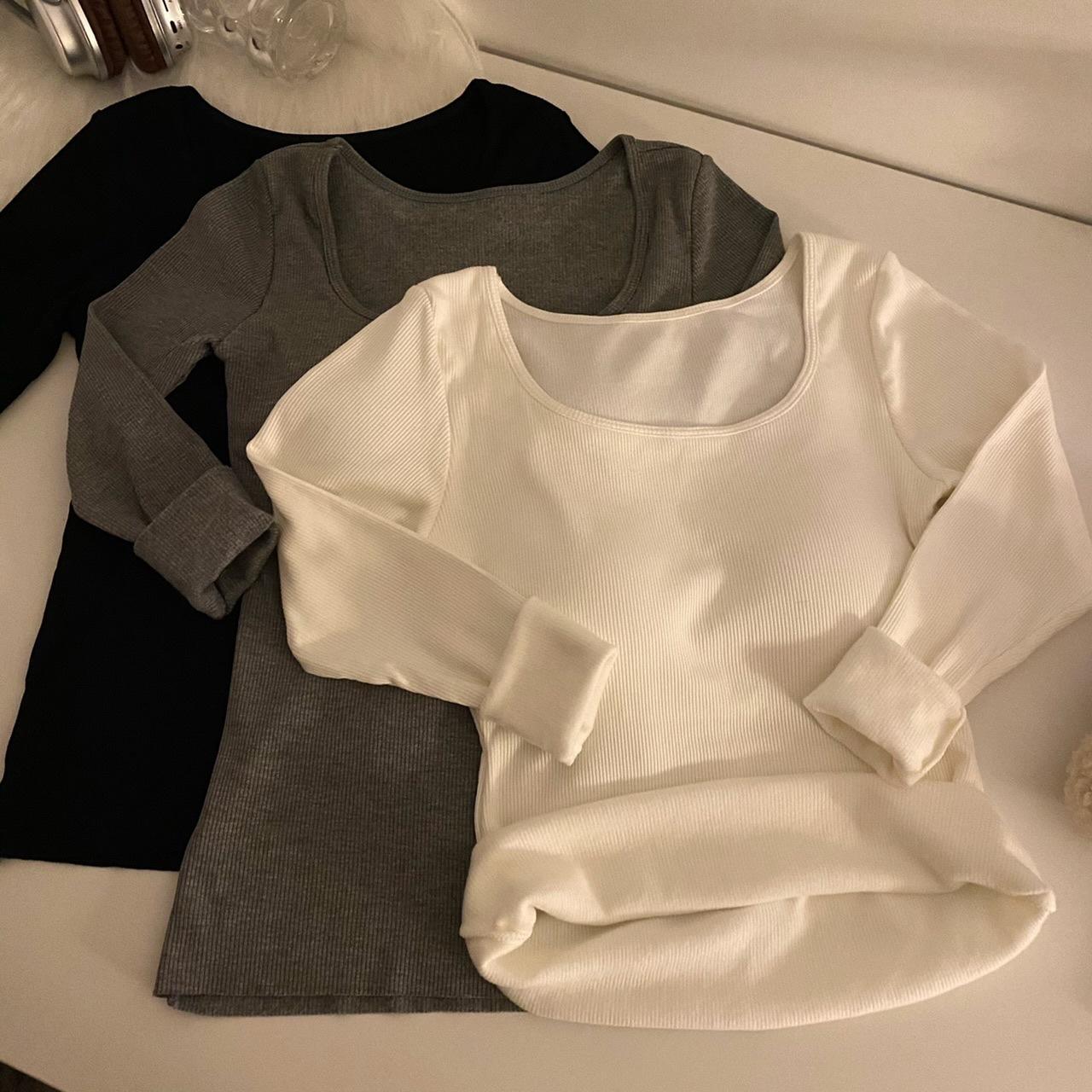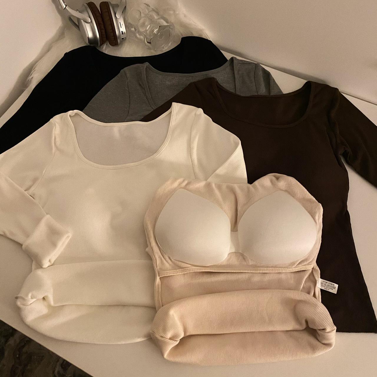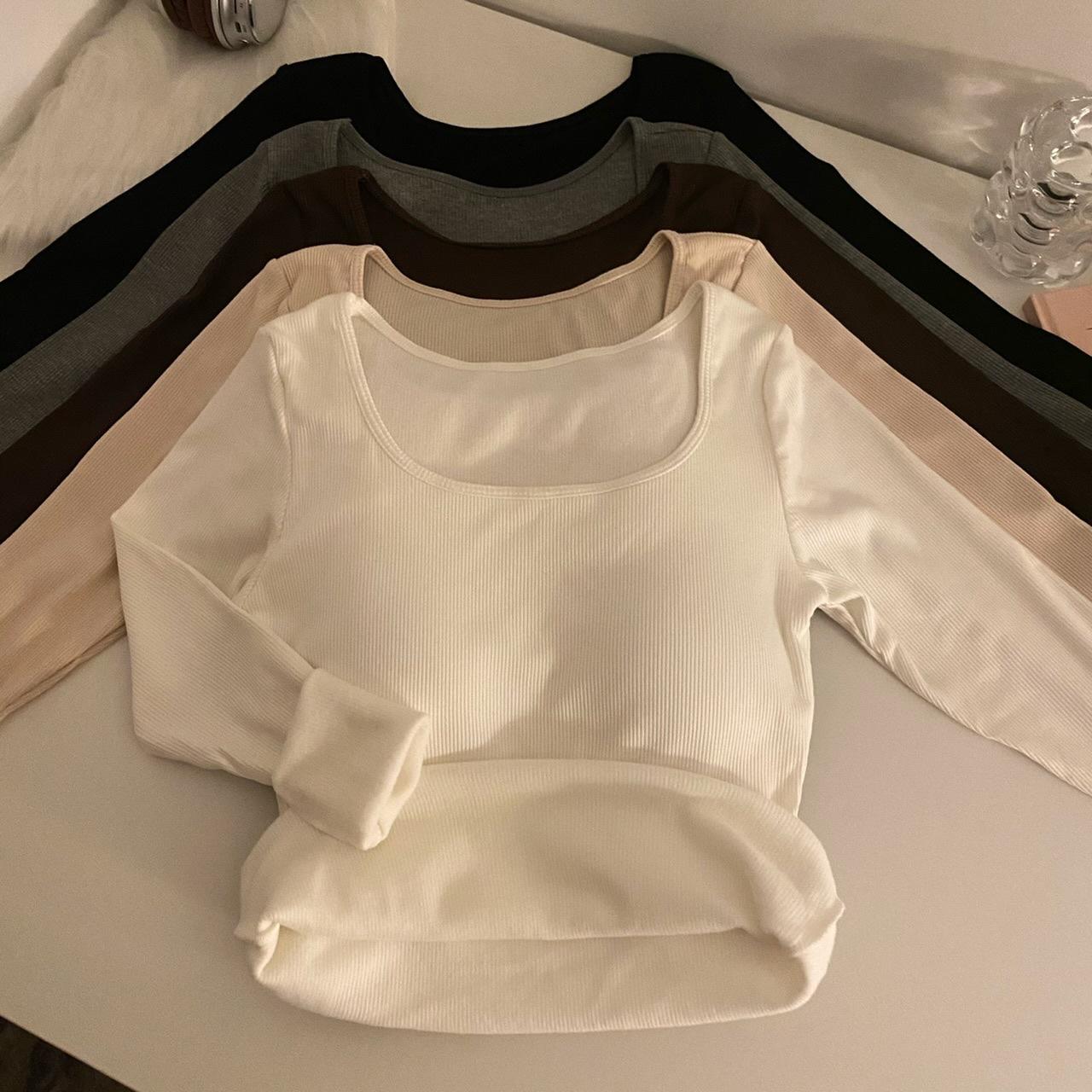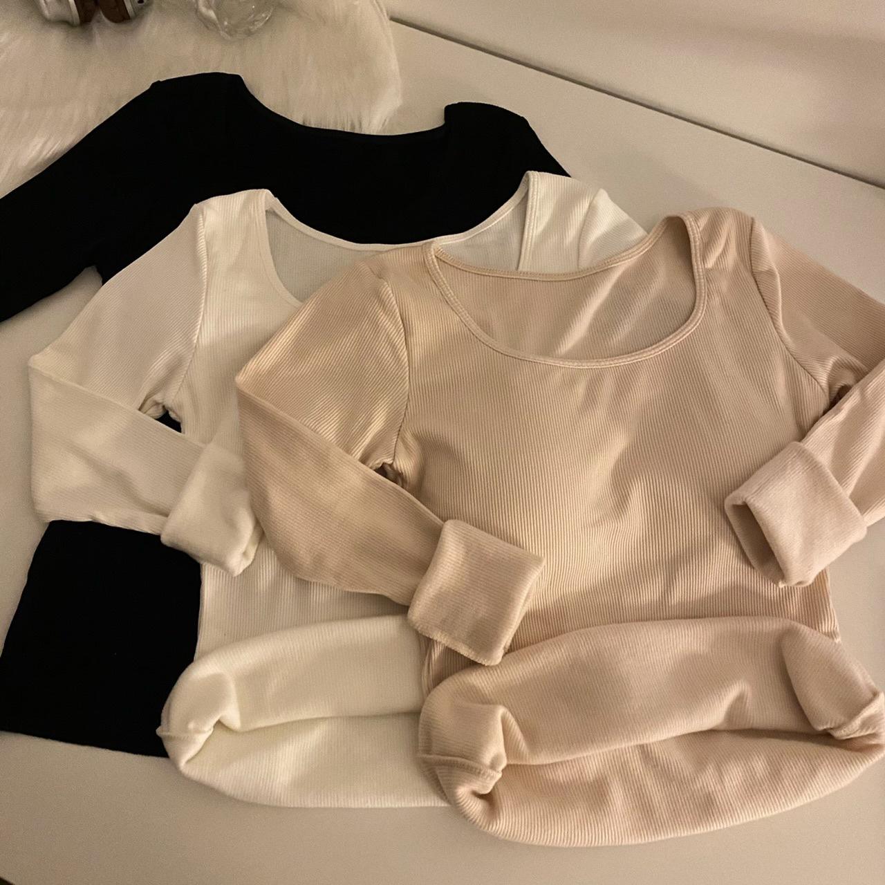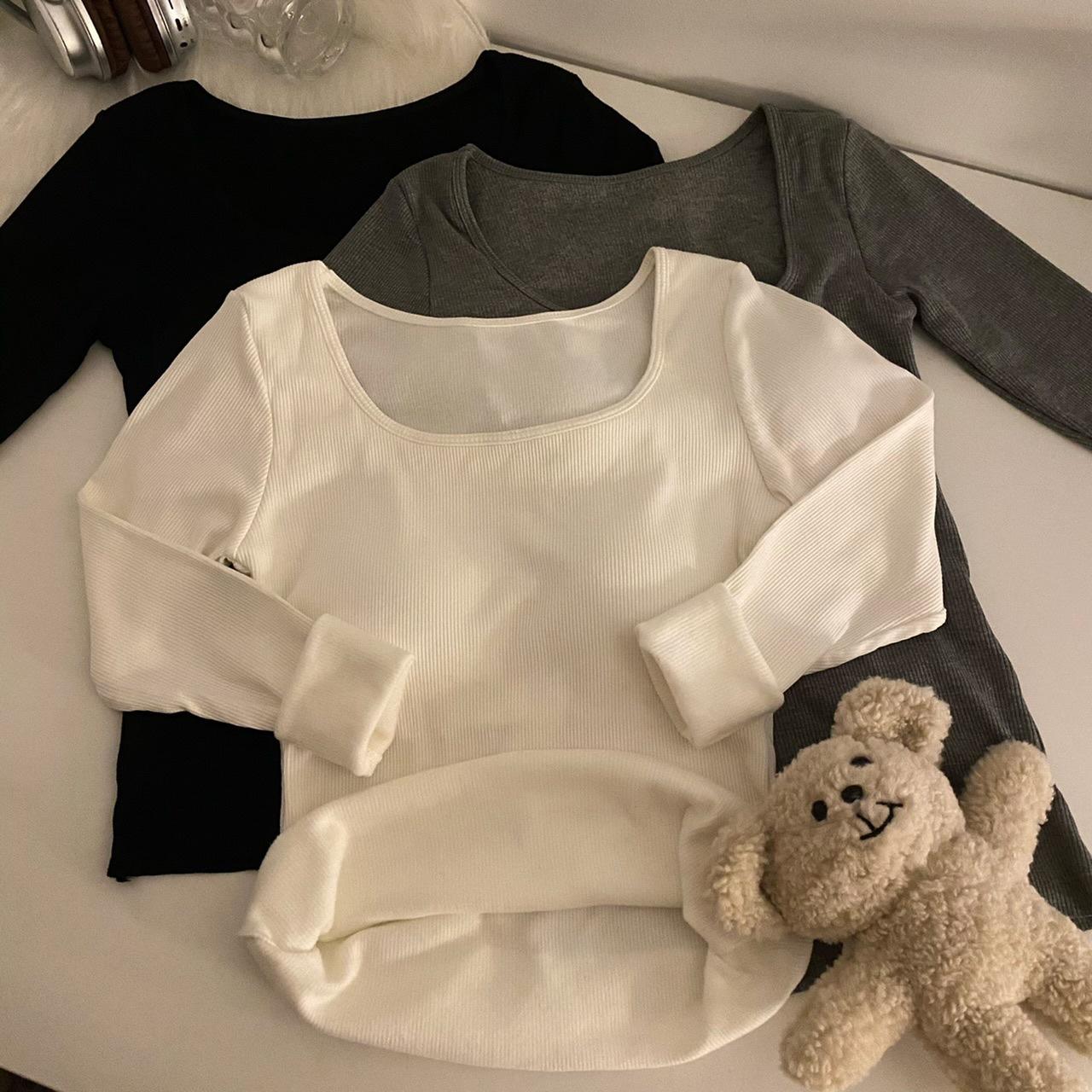 Camisa de manga larga cálida y gruesa con forro polar 2023 nueva camiseta interior adelgazante versátil de corte entallado para otoño e invierno para mujer