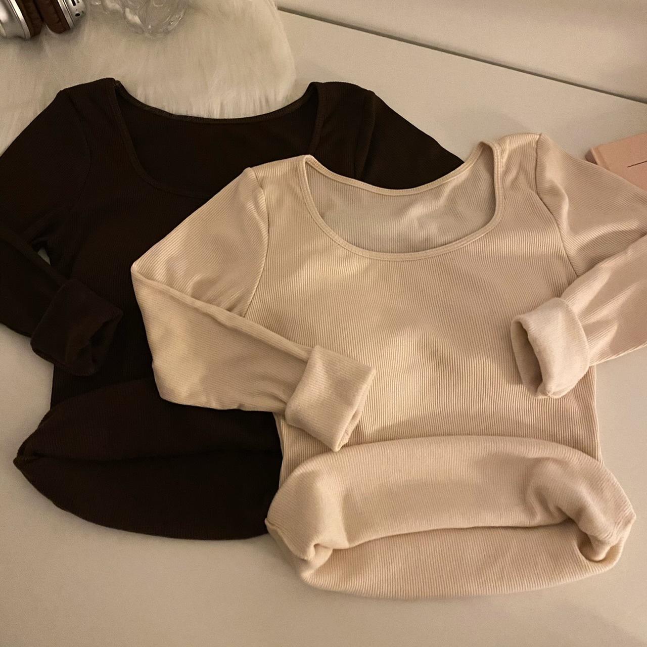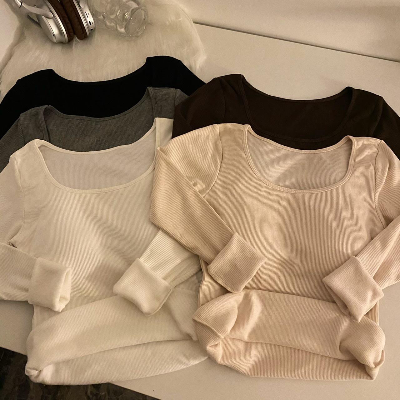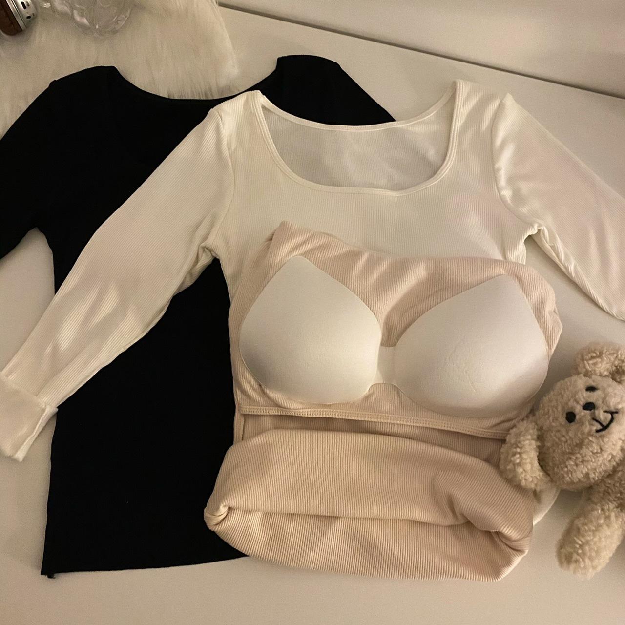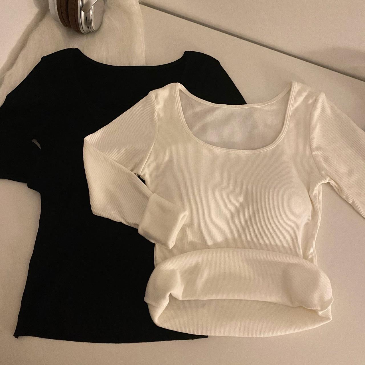 Camisa de manga larga cálida y gruesa con forro polar 2023 nueva camiseta interior adelgazante versátil de corte entallado para otoño e invierno para mujer