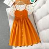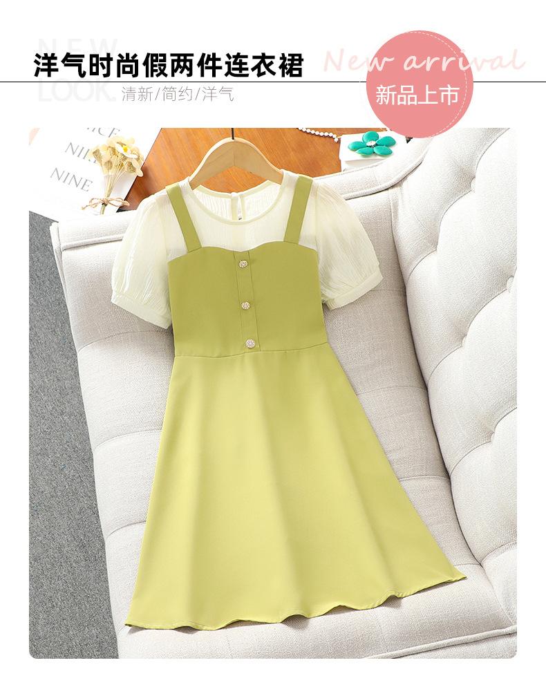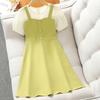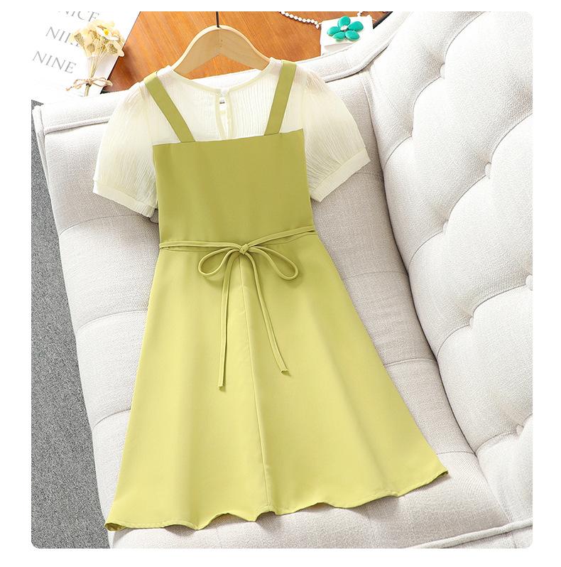 Vestido de verano para niñas, nuevo estilo, estilo occidental, de princesa, de talla mediana a grande, con tirantes, de dos piezas