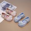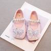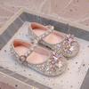 Zapatos de Cuero para Niñas 2025 Estilo Coreano Lazo Cristal Zapatos de Princesa Elsa Zapatos para Niños Correa para Mujer Tacones Bajos Trendy