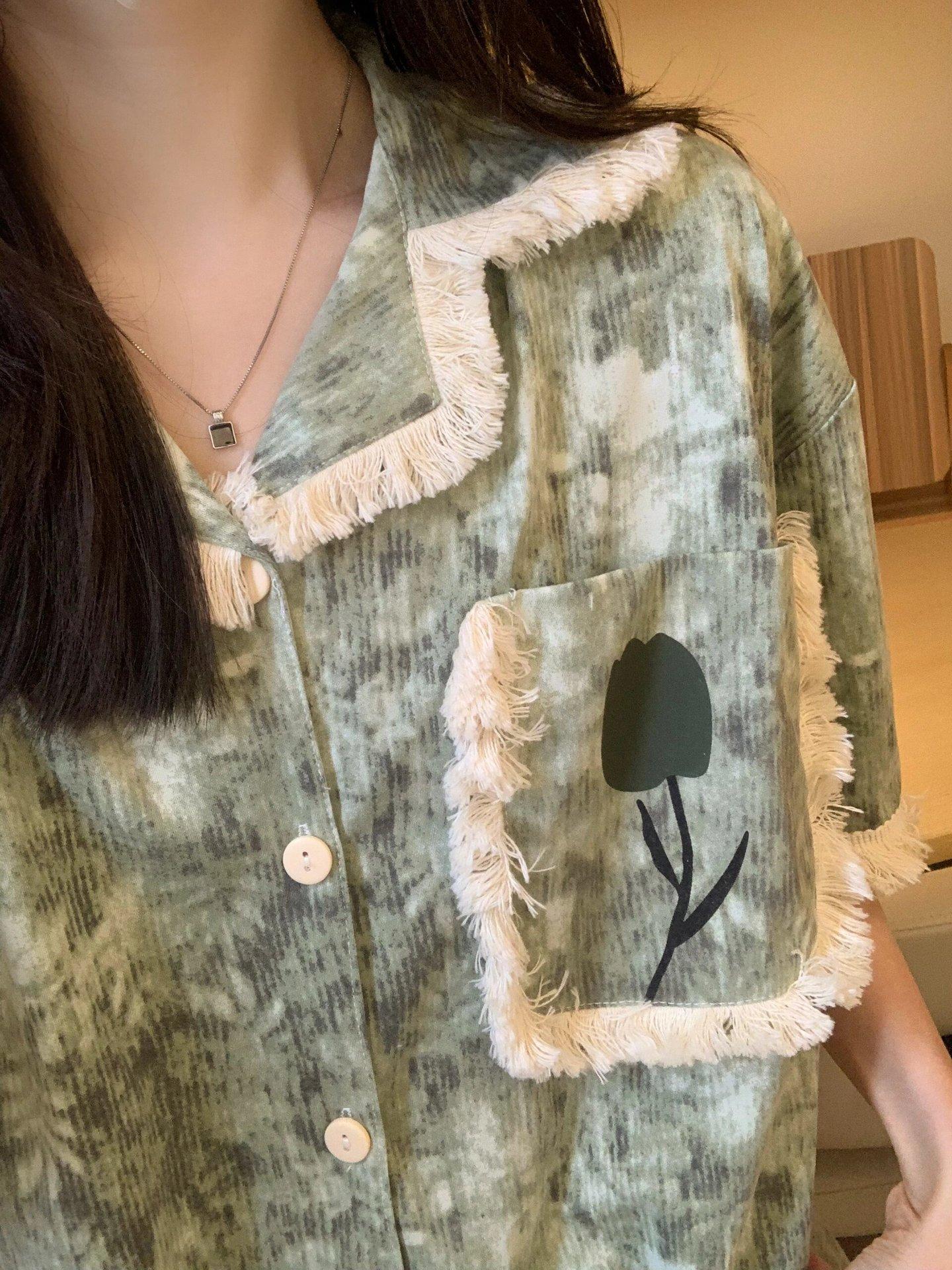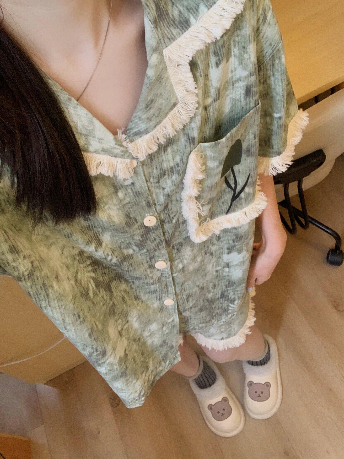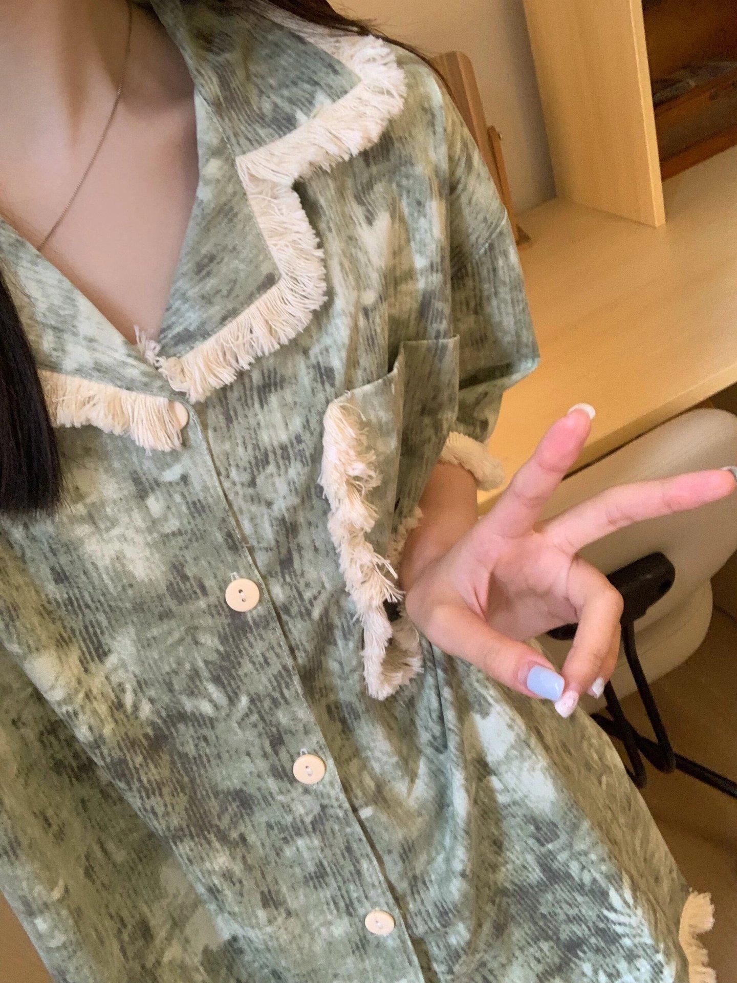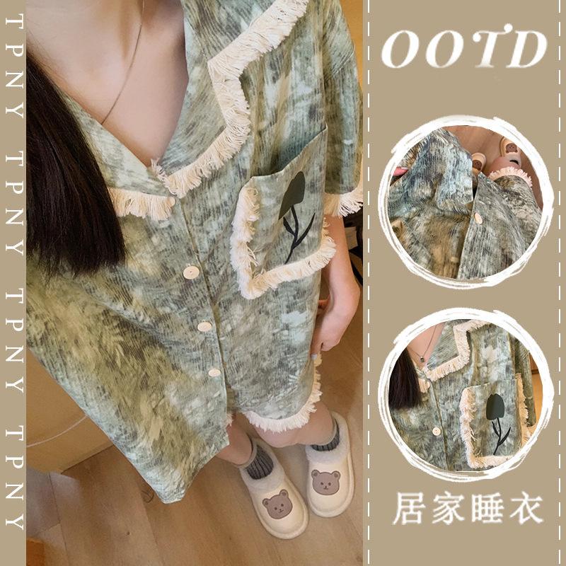 Pijama corto de manga corta de verano 2024, nuevo, con solapa para mujer, ropa de abrigo sencilla para mujer, ropa de casa para mujer