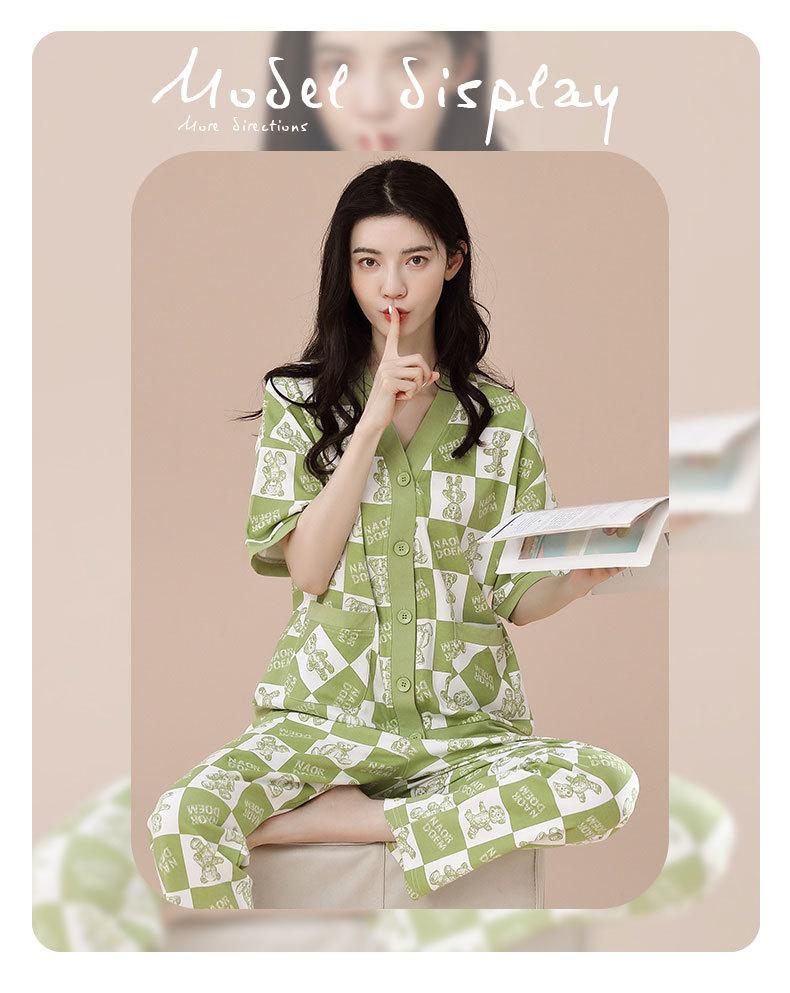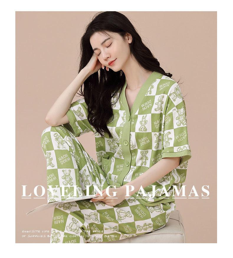 Pijamas de algodón nuevos de 2025 para mujer, pantalones de manga corta, traje para exteriores, moda de verano, ropa informal cómoda de talla grande para el hogar.