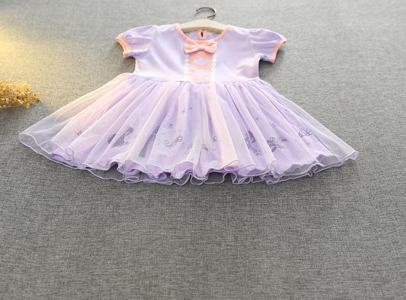 Vestido de princesa Elsa de Frozen de manga corta colorido, ropa infantil de comercio exterior, vestido de niña, disfraz de actuación para el Día del Niño