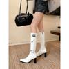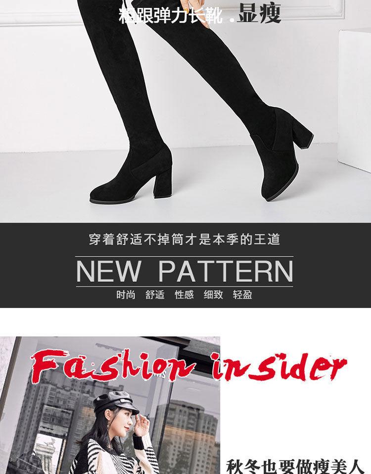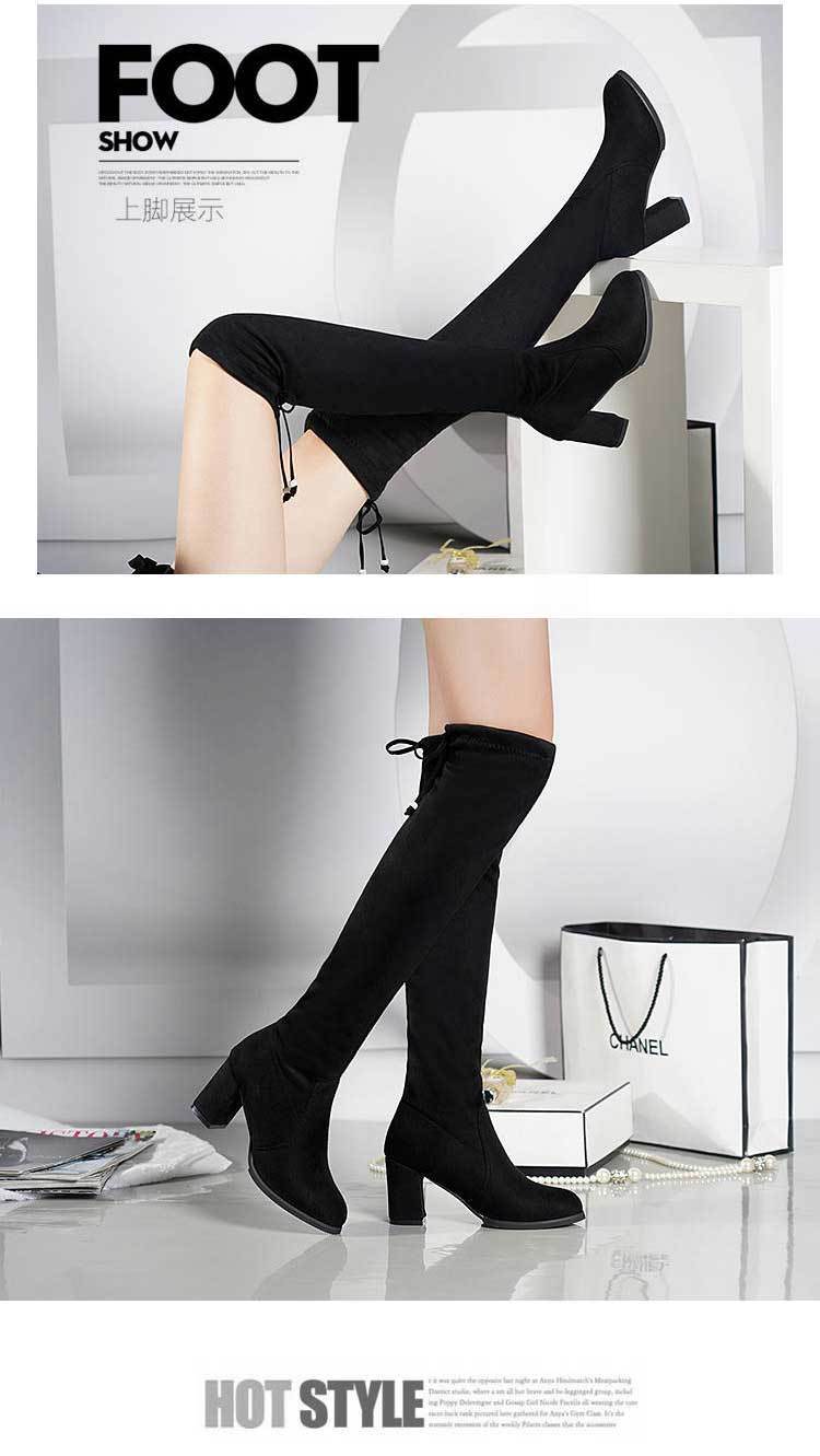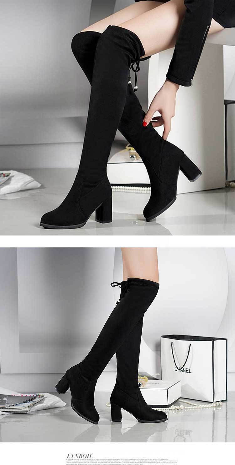 Botas por encima de la rodilla Botas altas y finas de tacón medio para mujer 2023 Nuevas botas elásticas largas de tacón grueso Botas de tacón alto de talla grande para mujer
