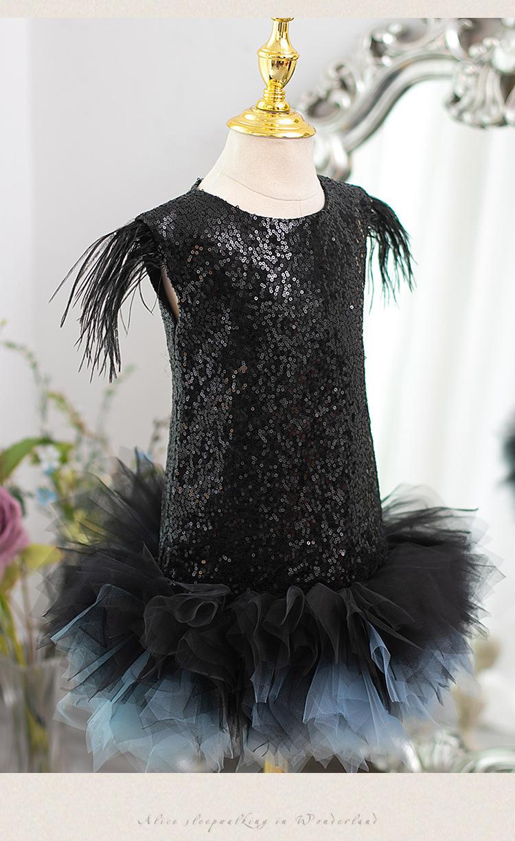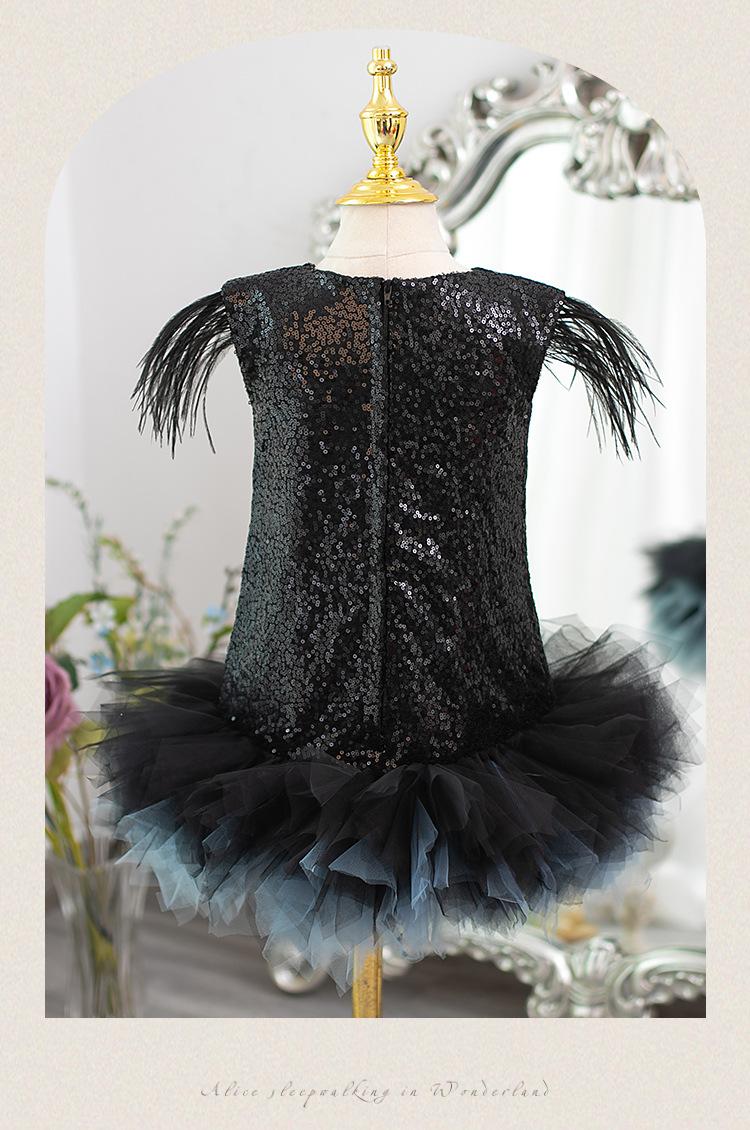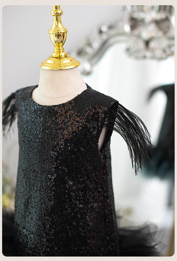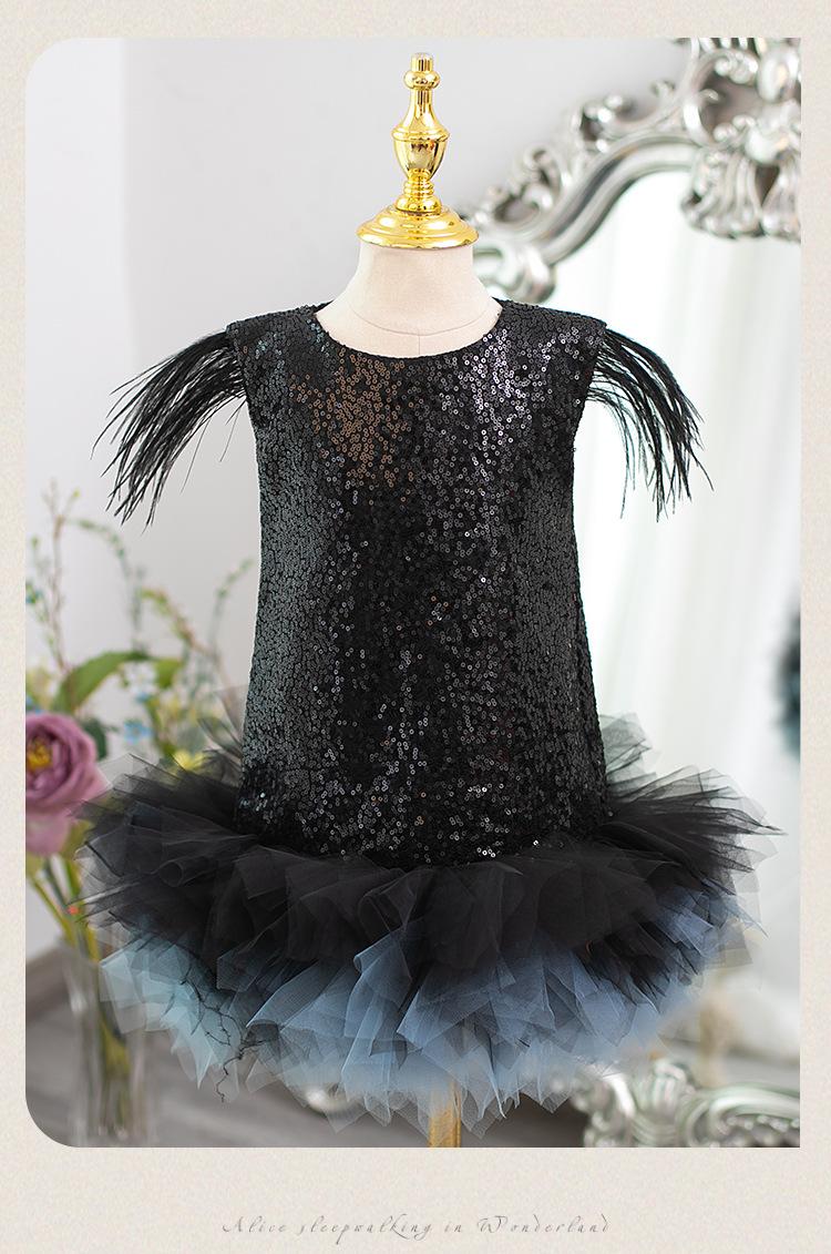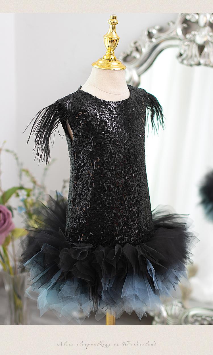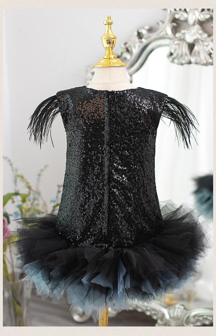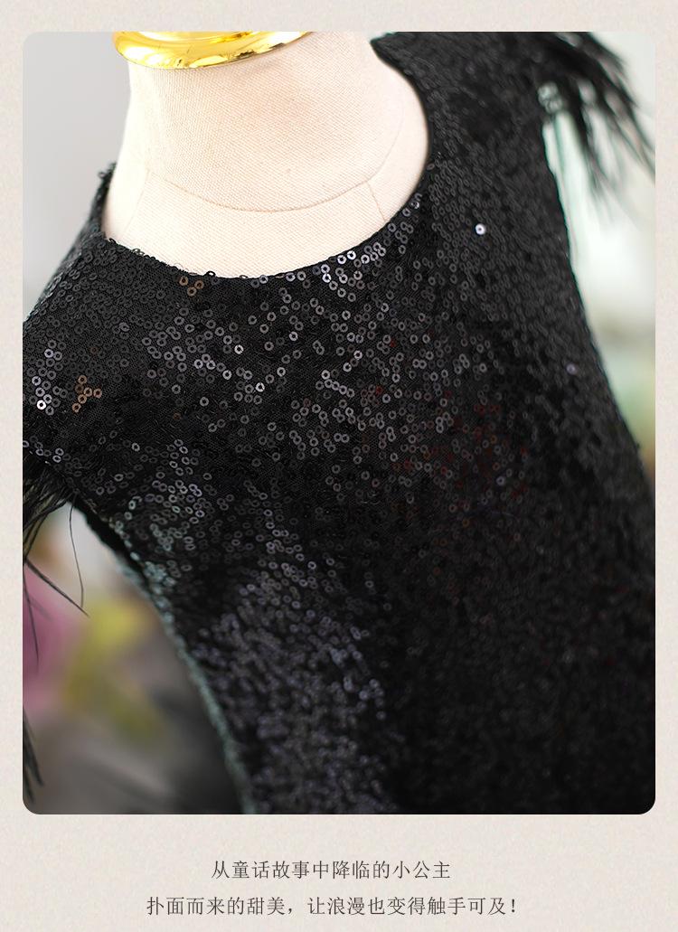 Vestido de lentejuelas para niña AliExpress transfronterizo pasarela para niña disfraz latino pluma negra vestido de princesa de cumpleaños