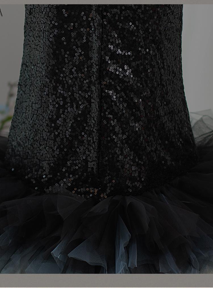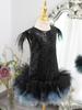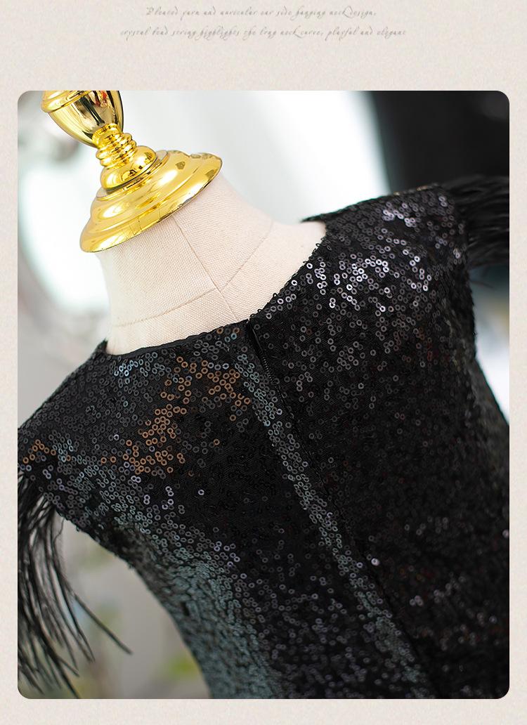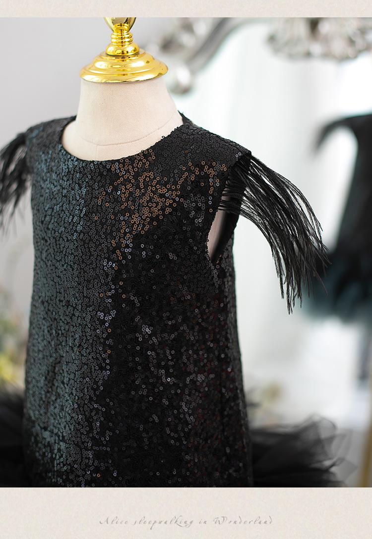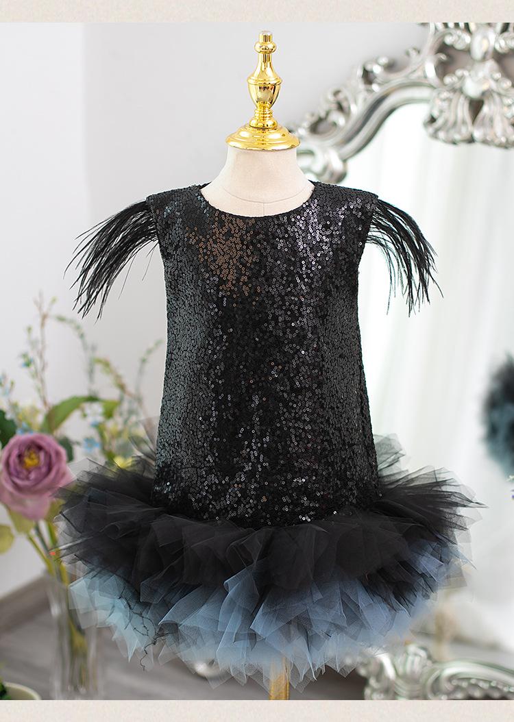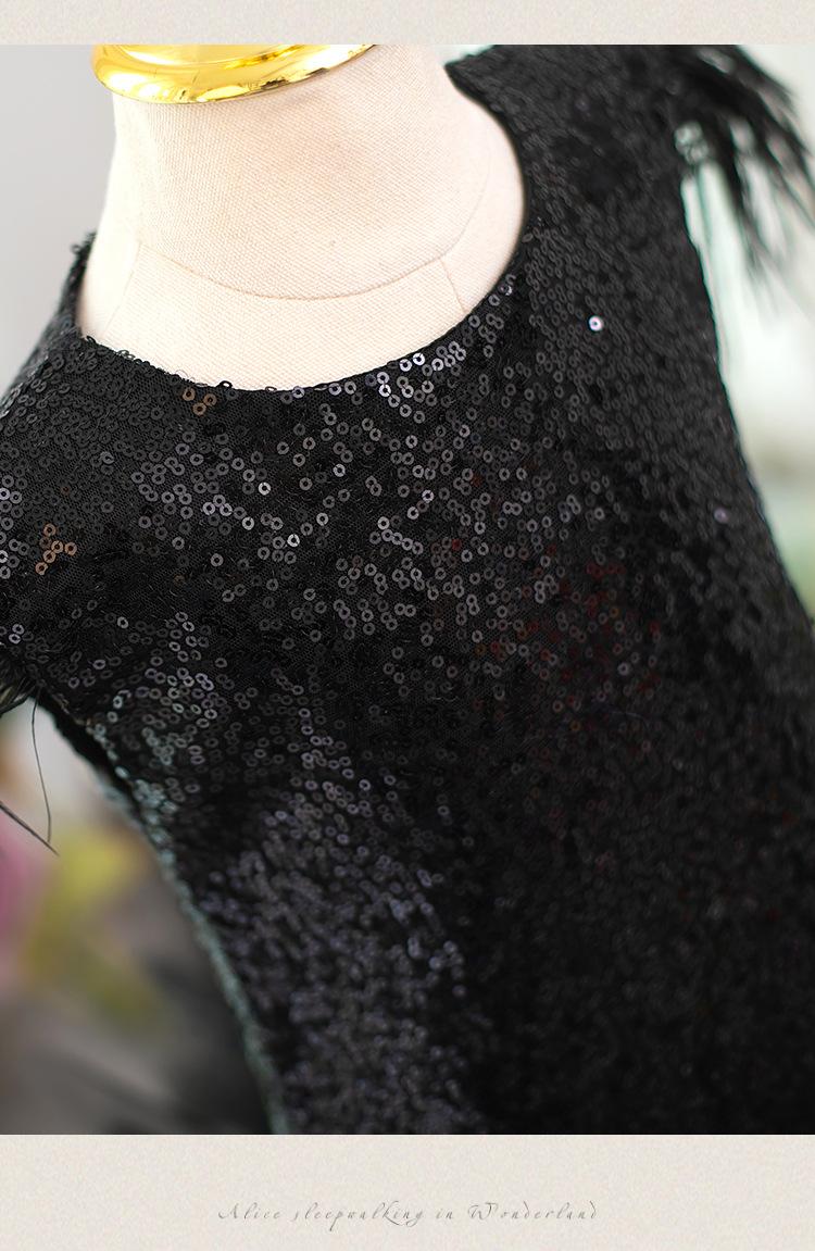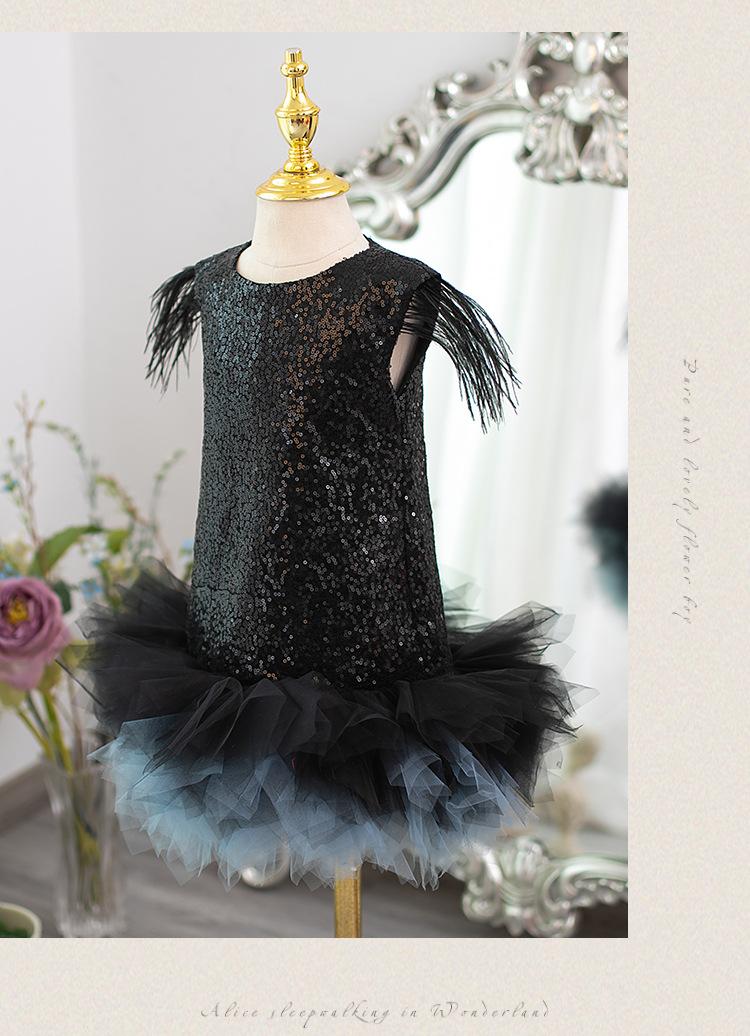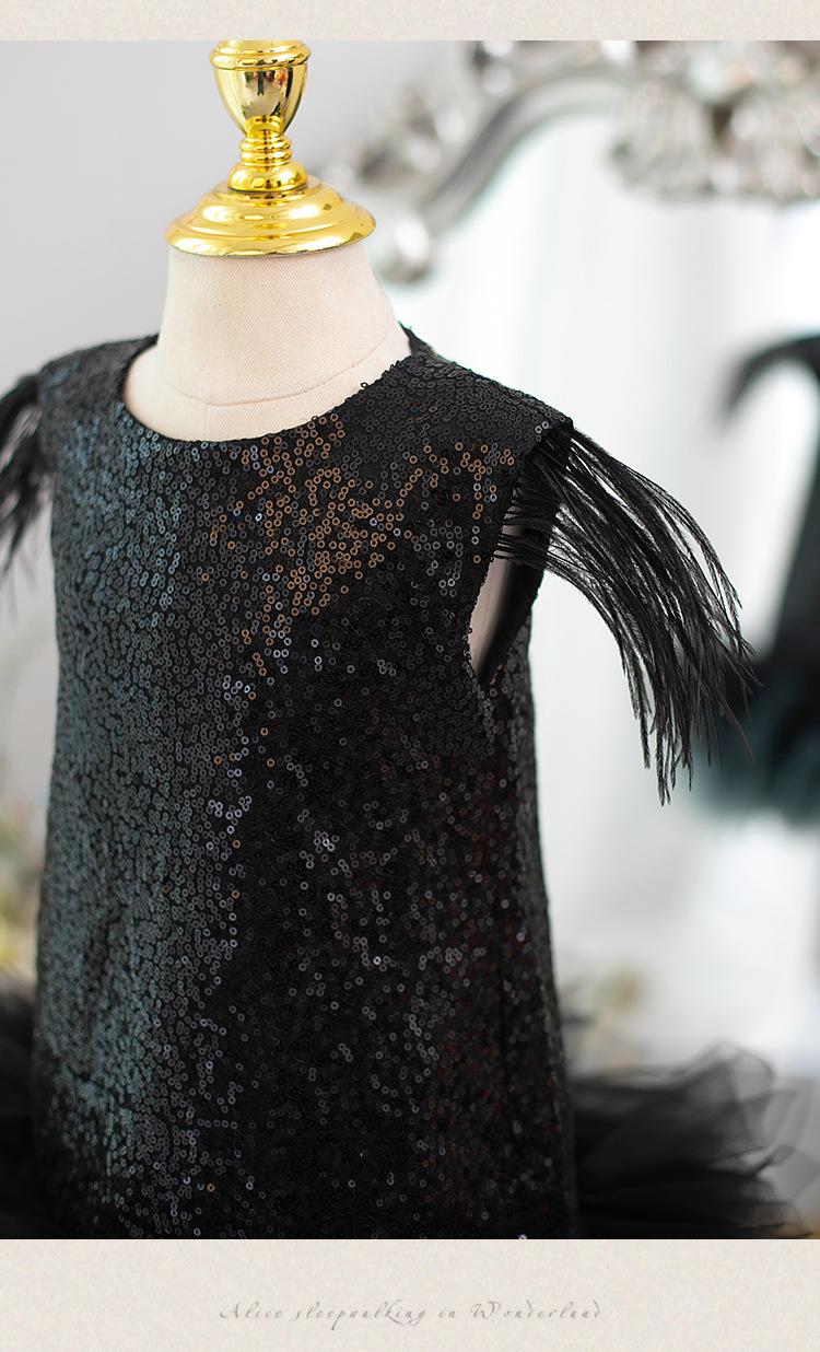 Vestido de lentejuelas para niña AliExpress transfronterizo pasarela para niña disfraz latino pluma negra vestido de princesa de cumpleaños