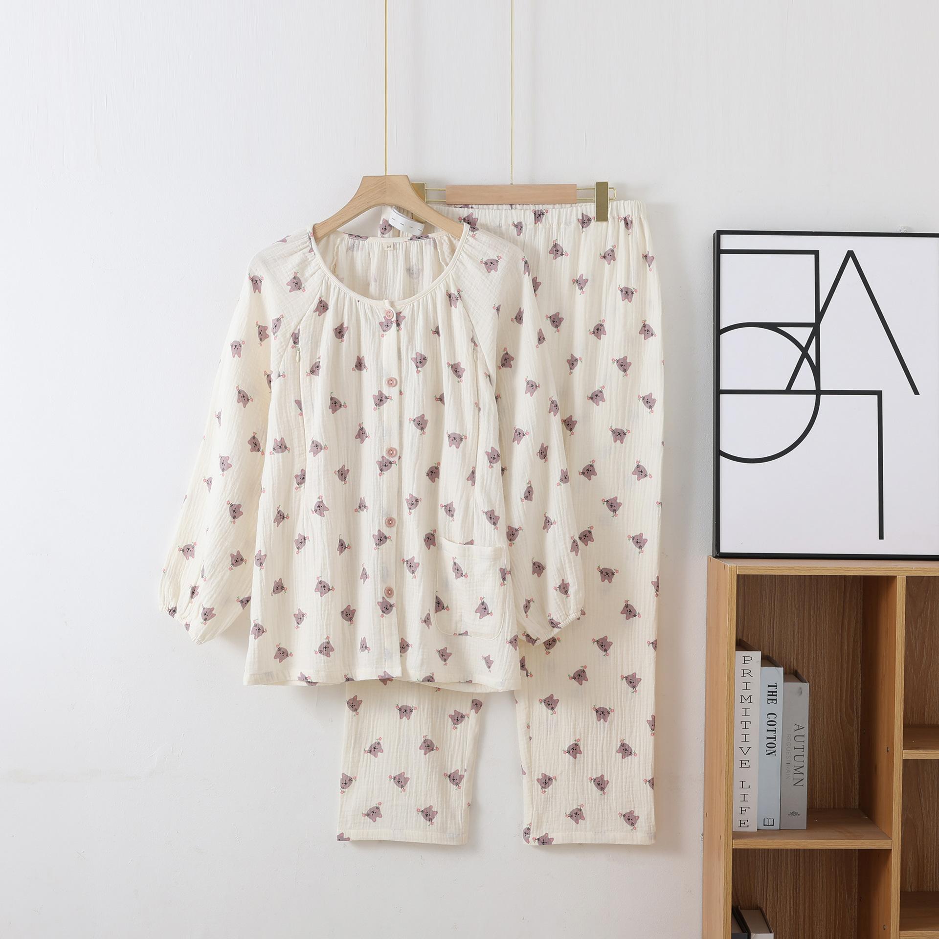 Pijamas de maternidad mensuales de algodón puro, primavera y otoño, manga larga, centro mensual, ropa de lactancia posparto, ropa de algodón para el hogar, ropa de lactancia