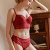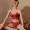 | Conjunto de sujetador de encaje rojo sexy europeo y americano nuevo de otoño e invierno, sujetador de ropa interior push-up fruncido con bordado hueco |