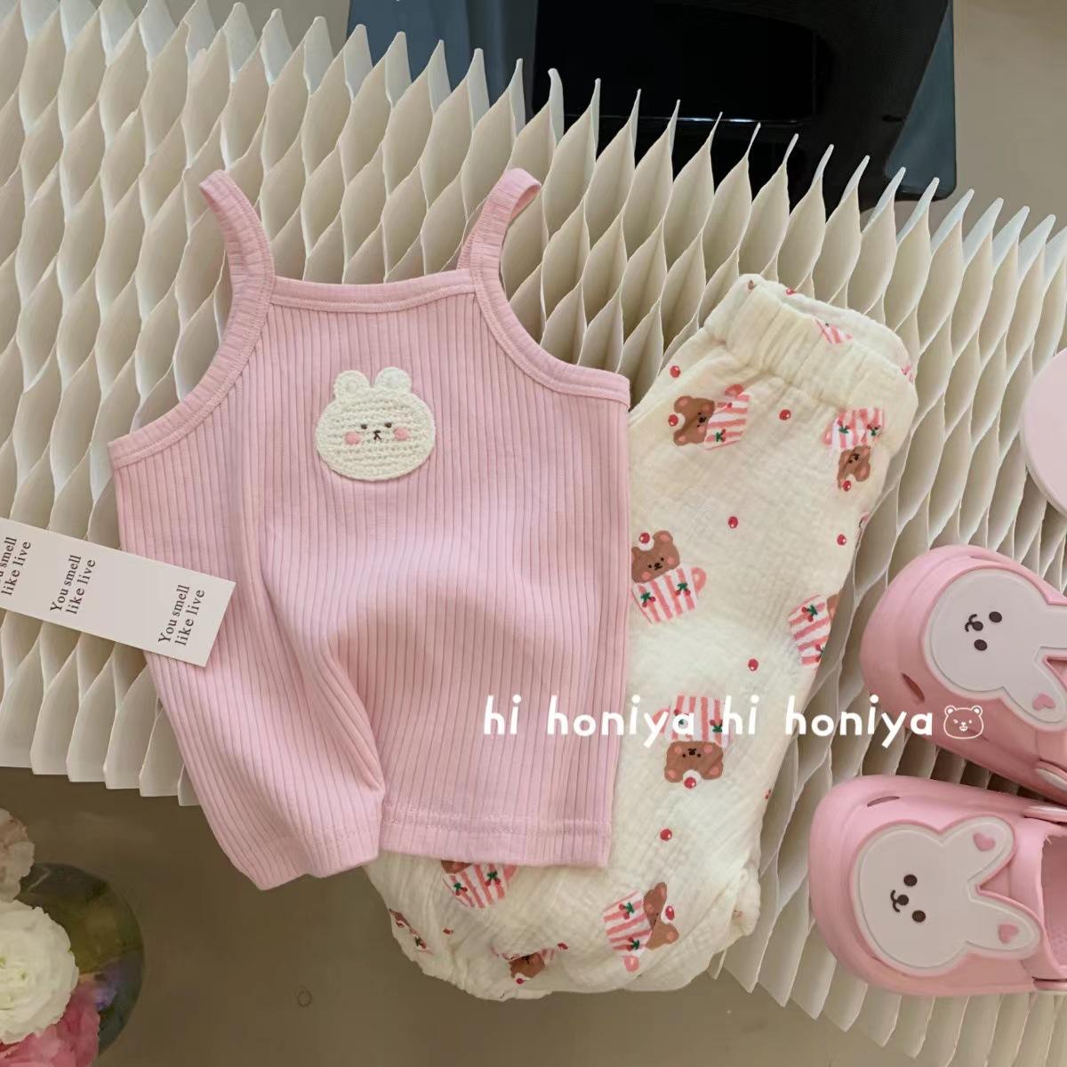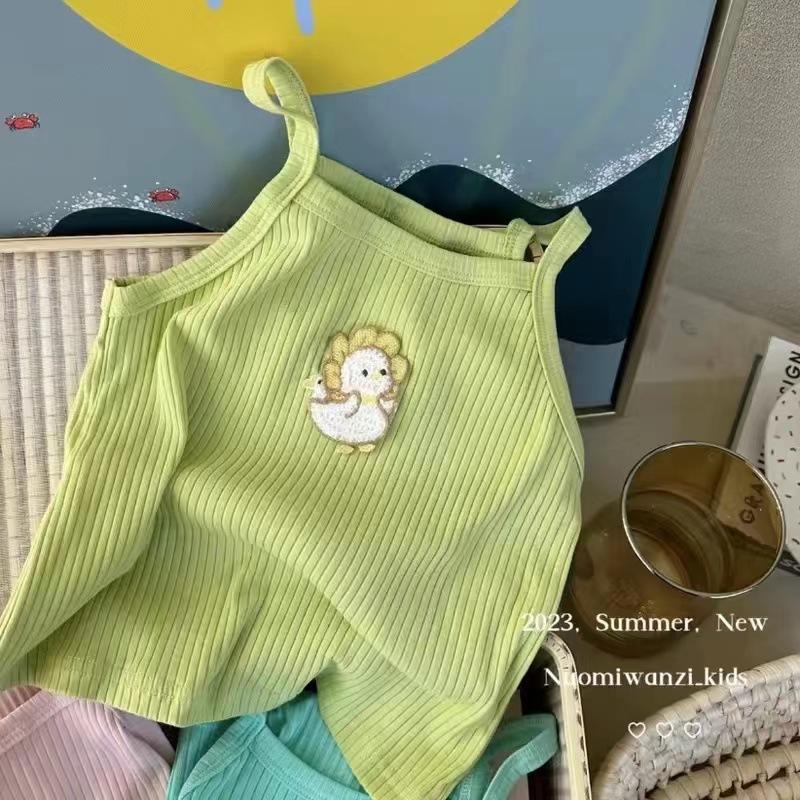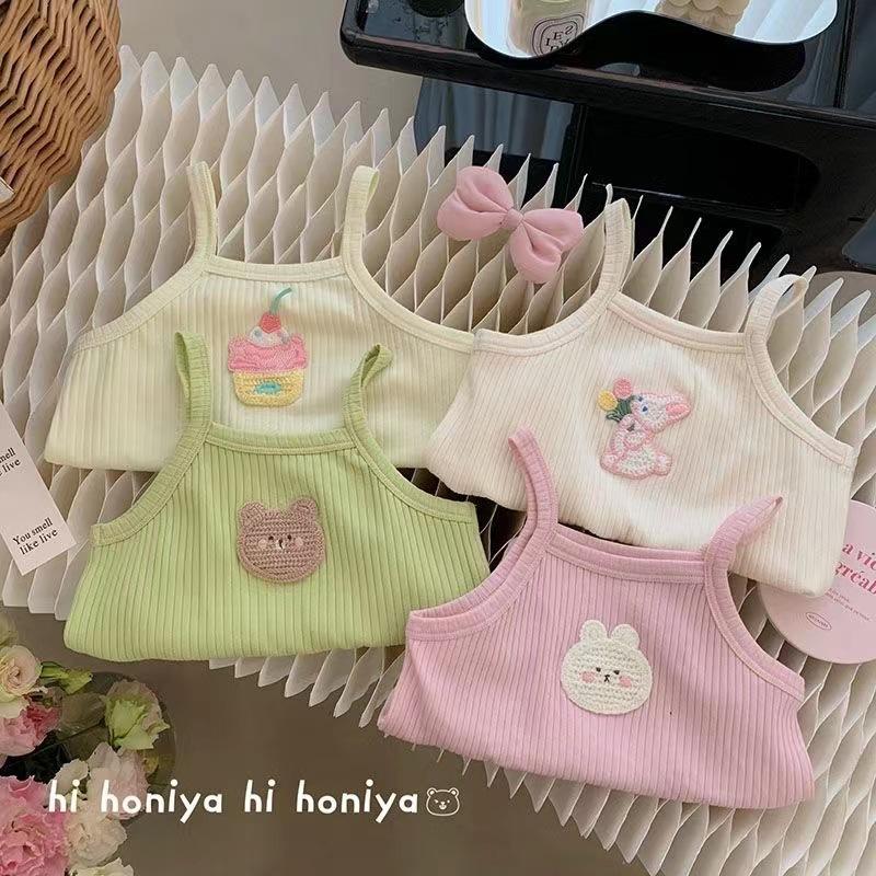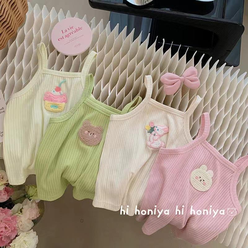 Tirantes para niñas, nueva versión coreana de verano, lindo chaleco de color macarrón con dibujos animados para bebés, top elástico y agradable para la piel para niños