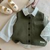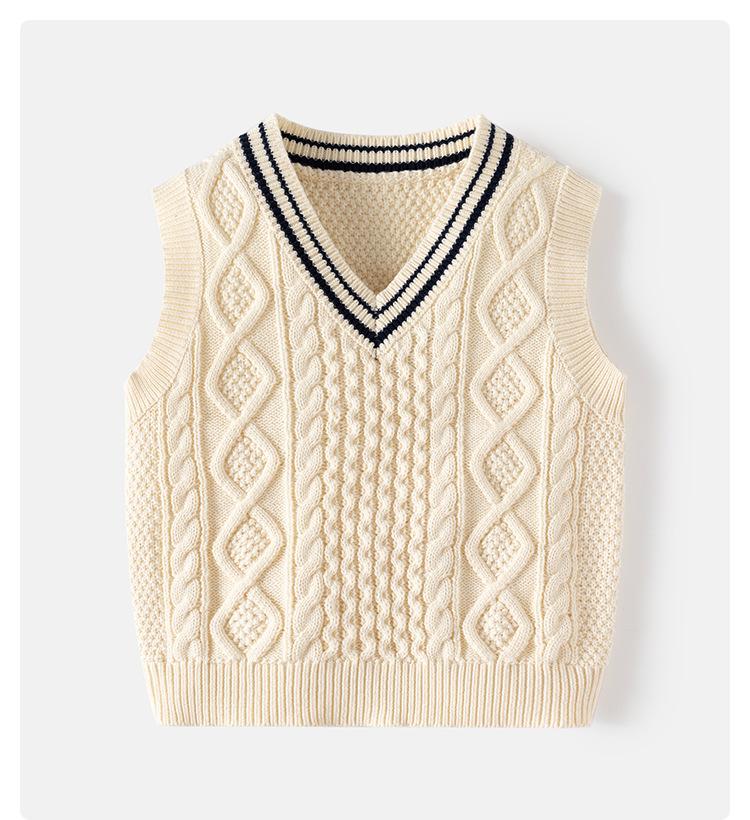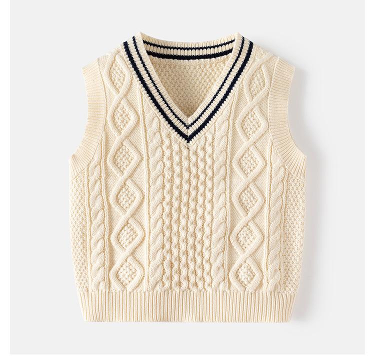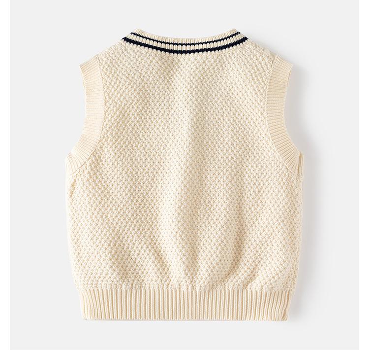 Chaleco de lana para niños, nuevo suéter de otoño estilo universitario para niño, chaleco coreano de cuello en V para bebé.