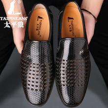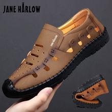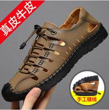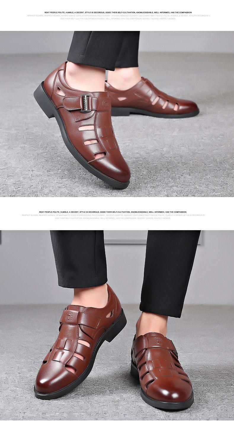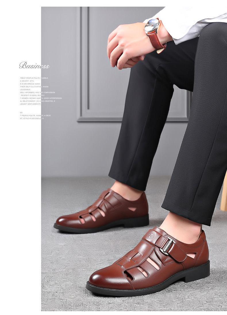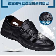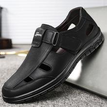 Sandalias para hombre, verano 2019, zapatos casuales para hombre, zapatos de cuero transpirables y huecos, zapatos de punta cerrada para hombre de mediana edad, zapatos para hombre al por mayor
