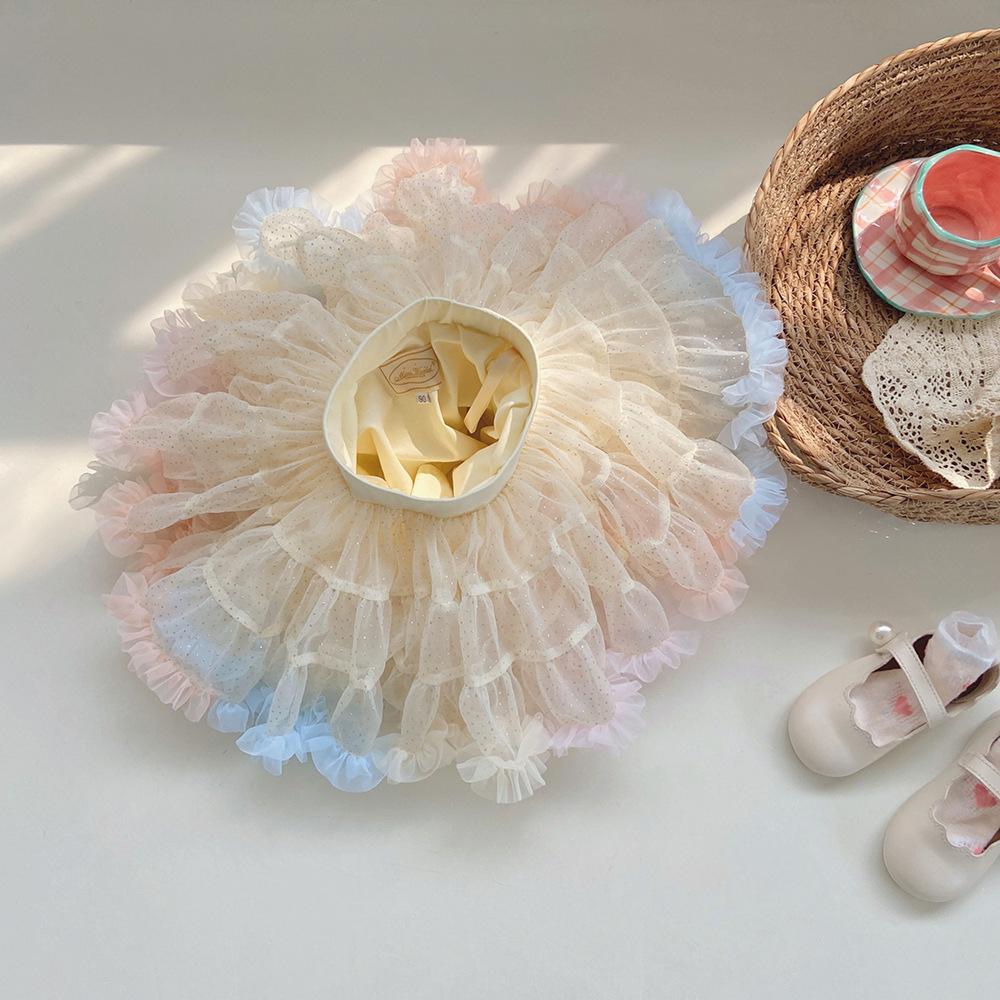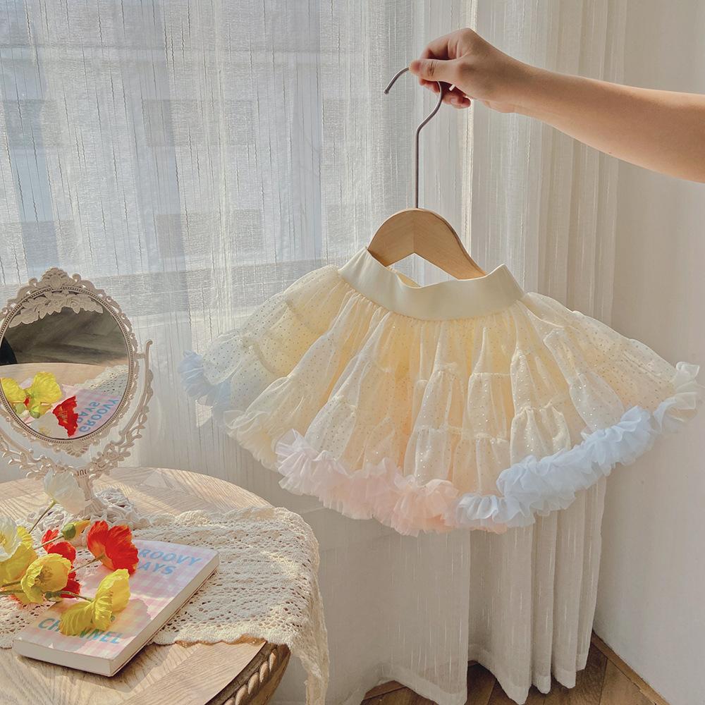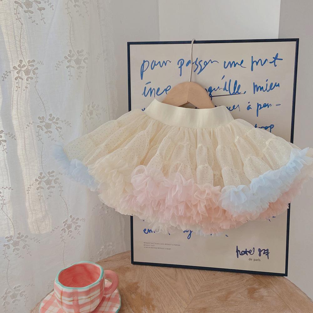 Falda de tul de comercio exterior, falda arcoíris auténtica, falda de princesa para niños, falda, falda de velo plisado de caramelo