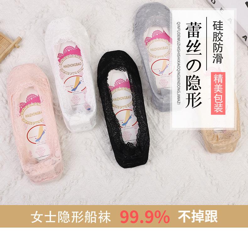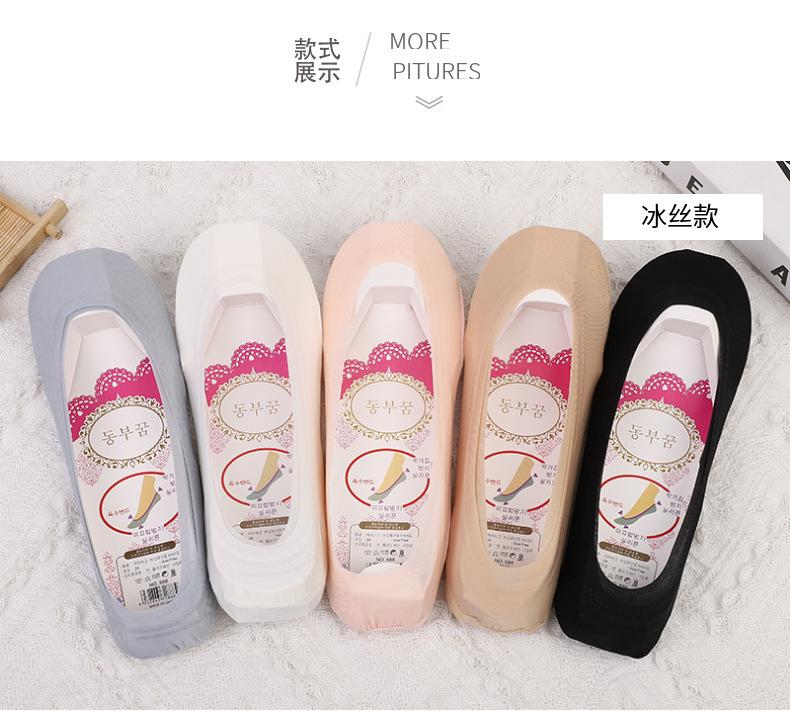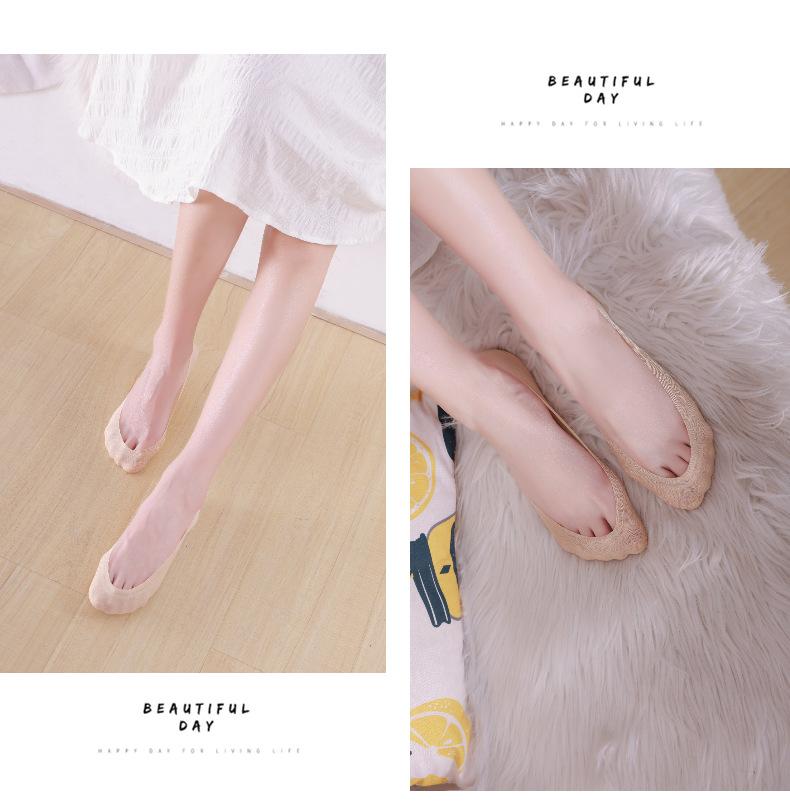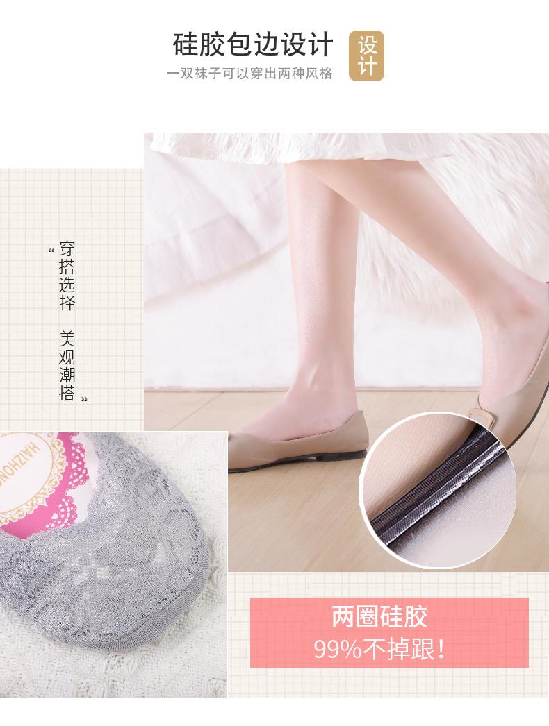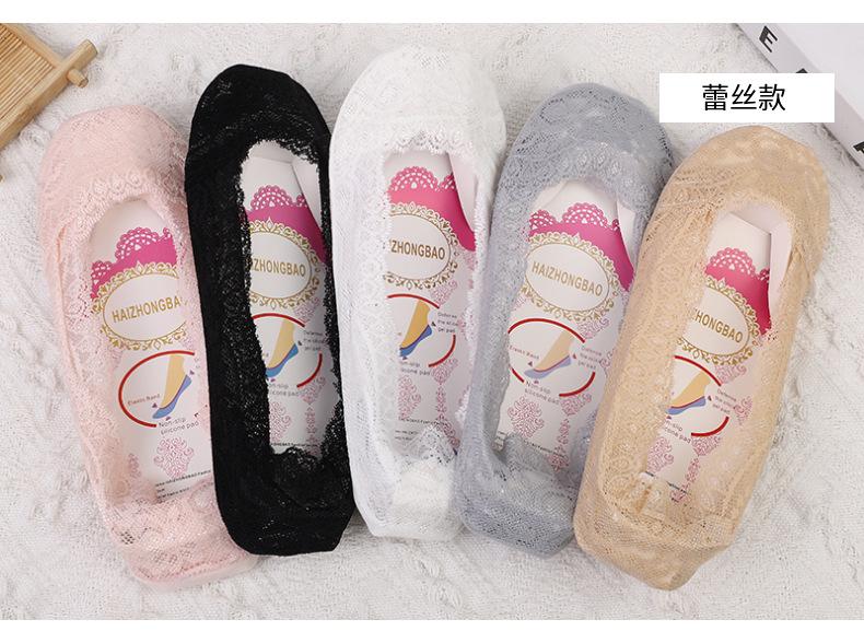 Calcetines invisibles de encaje de verano, calcetines tobilleros ultrafinos de seda de hielo, calcetines de boca baja, calcetines antideslizantes de silicona con talón antideslizante para mujer