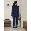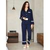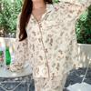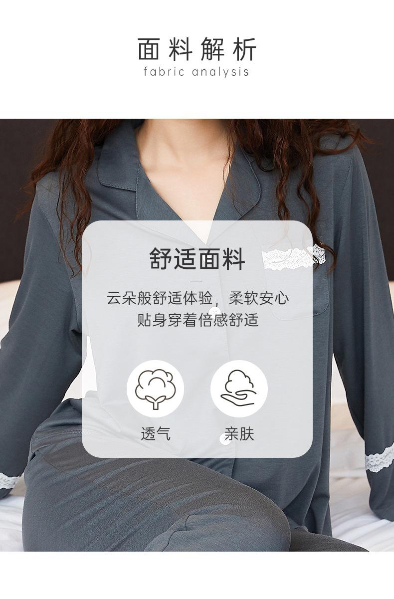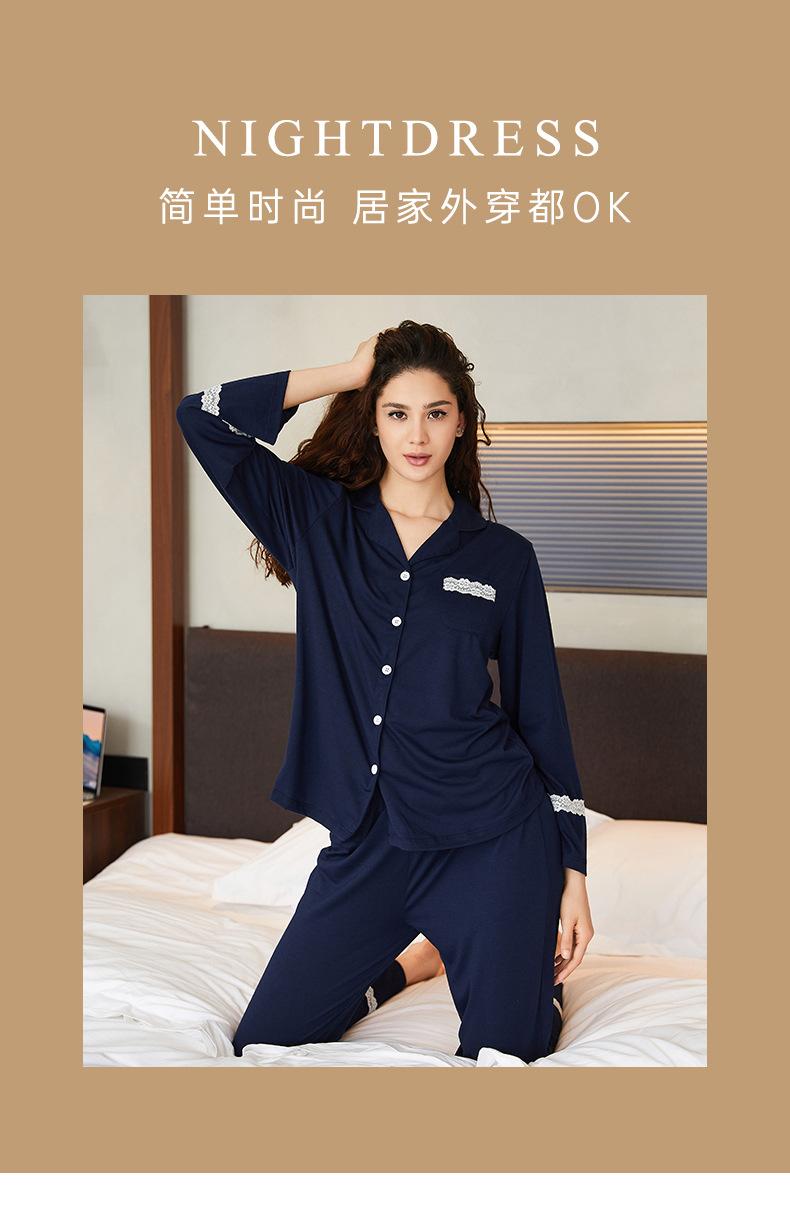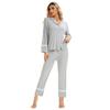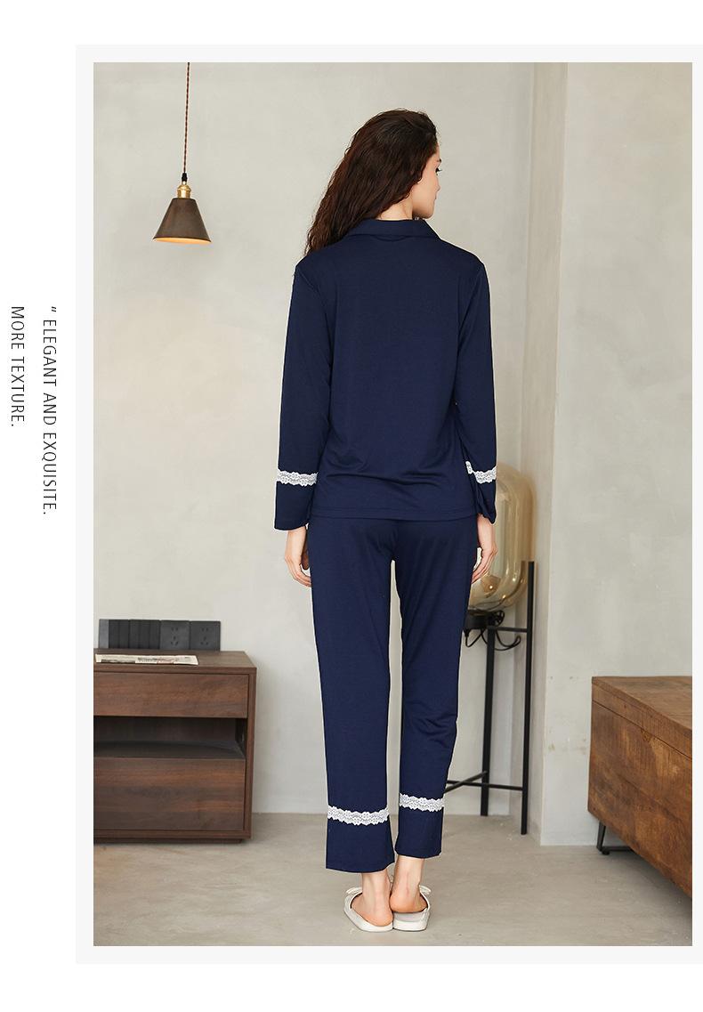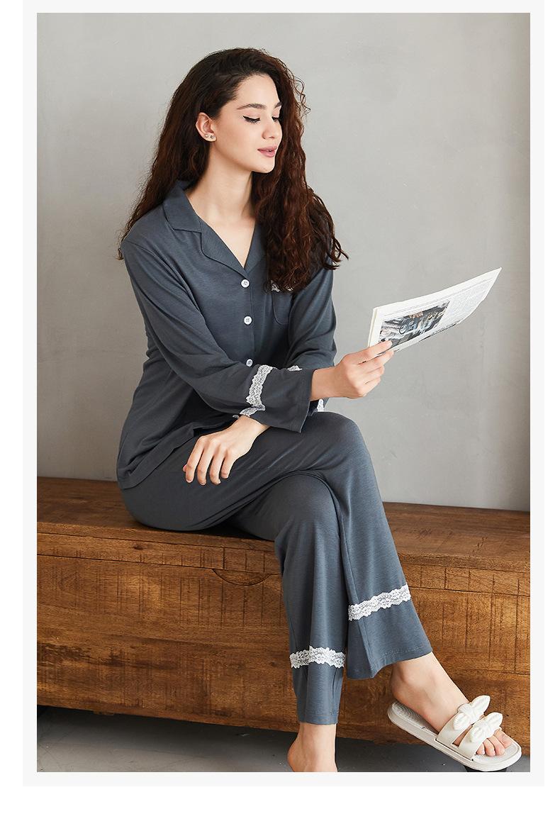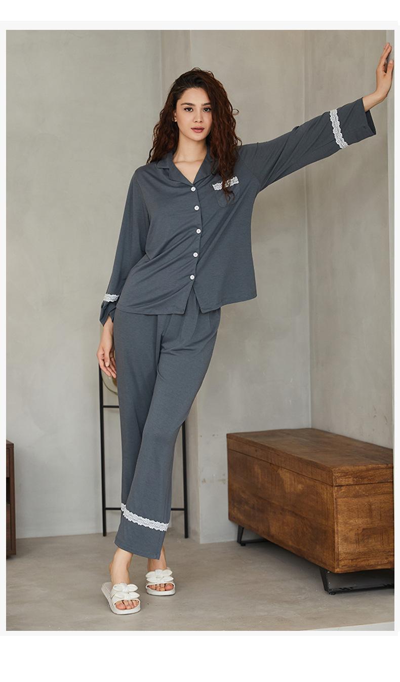 Pijama de comercio exterior para mujer, de color liso, de algodón tejido, suelto, con costuras de encaje, estilo europeo y americano, cárdigan, ropa para el hogar, traje, pantalones de manga larga