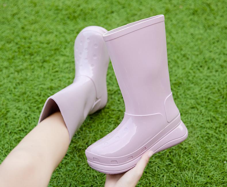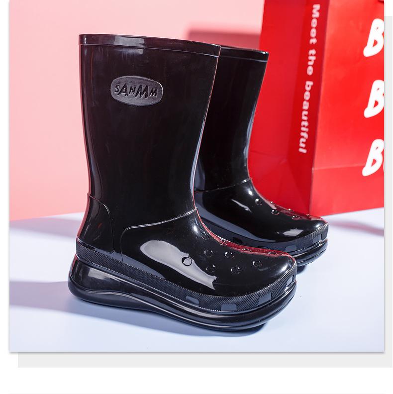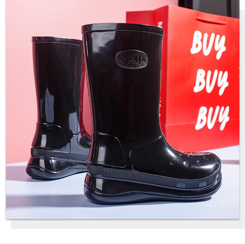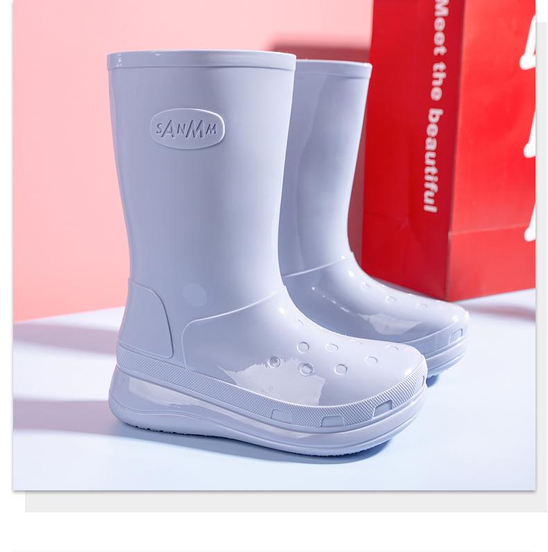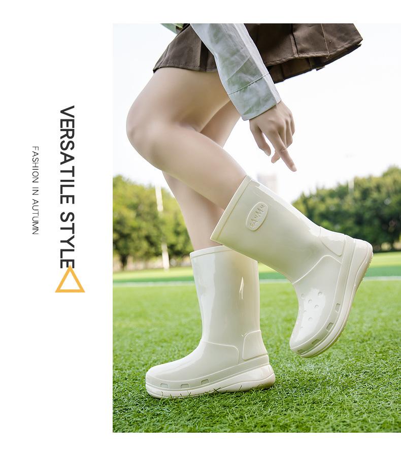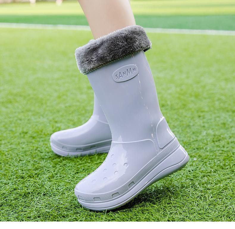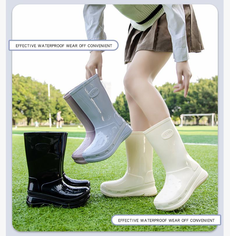 Botas de Lluvia de Caña Media Transfronterizas para Mujer Antideslizantes a la Moda para Adulto Impermeables Cálidas Botas de Lluvia Zapatos de Goma de Suela Blanda para Exterior