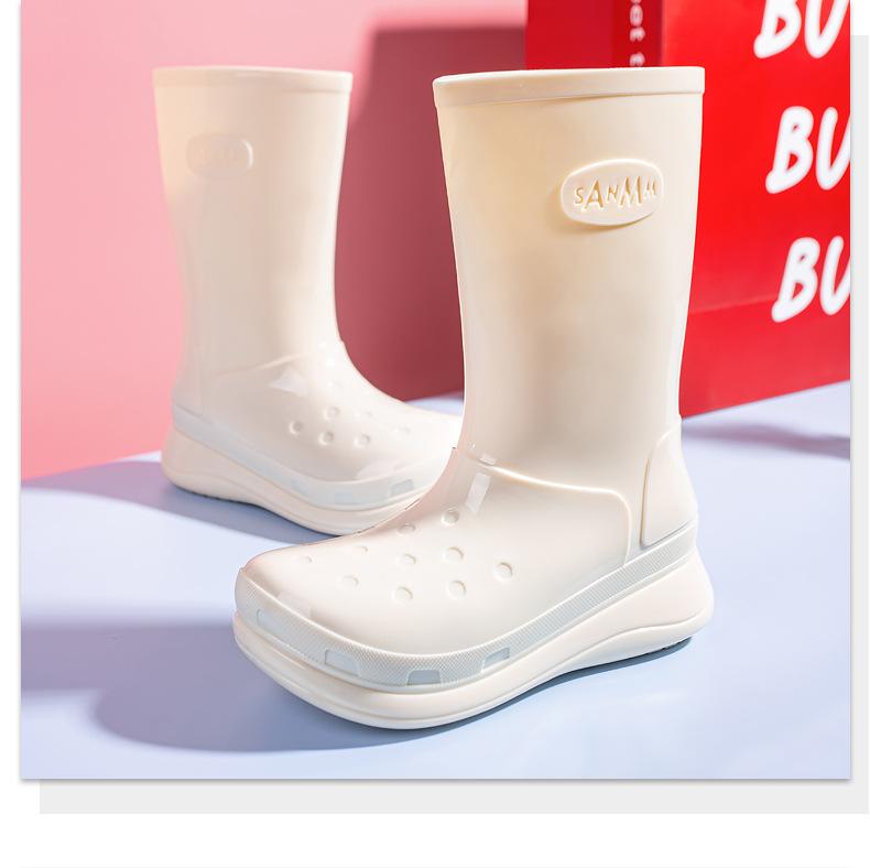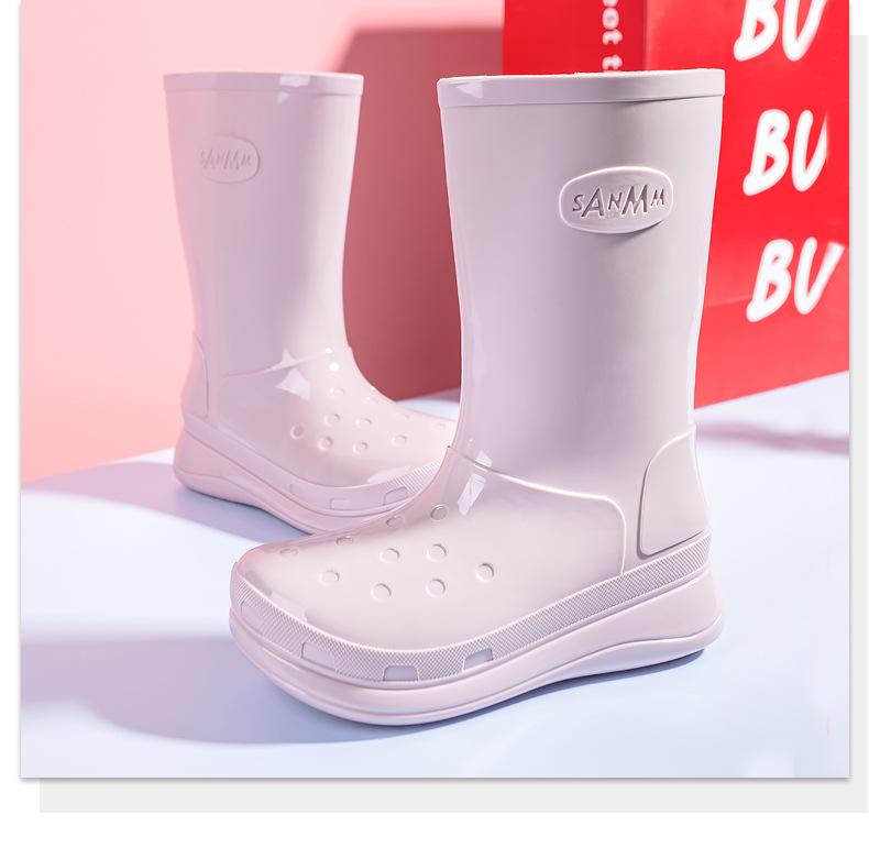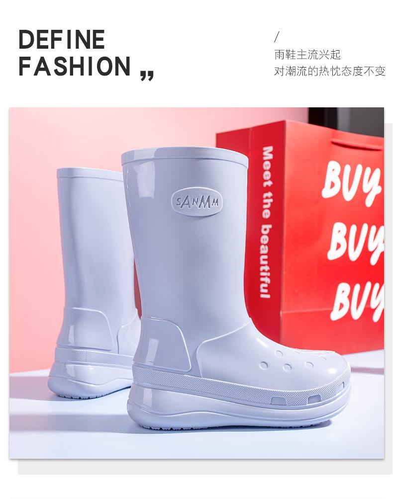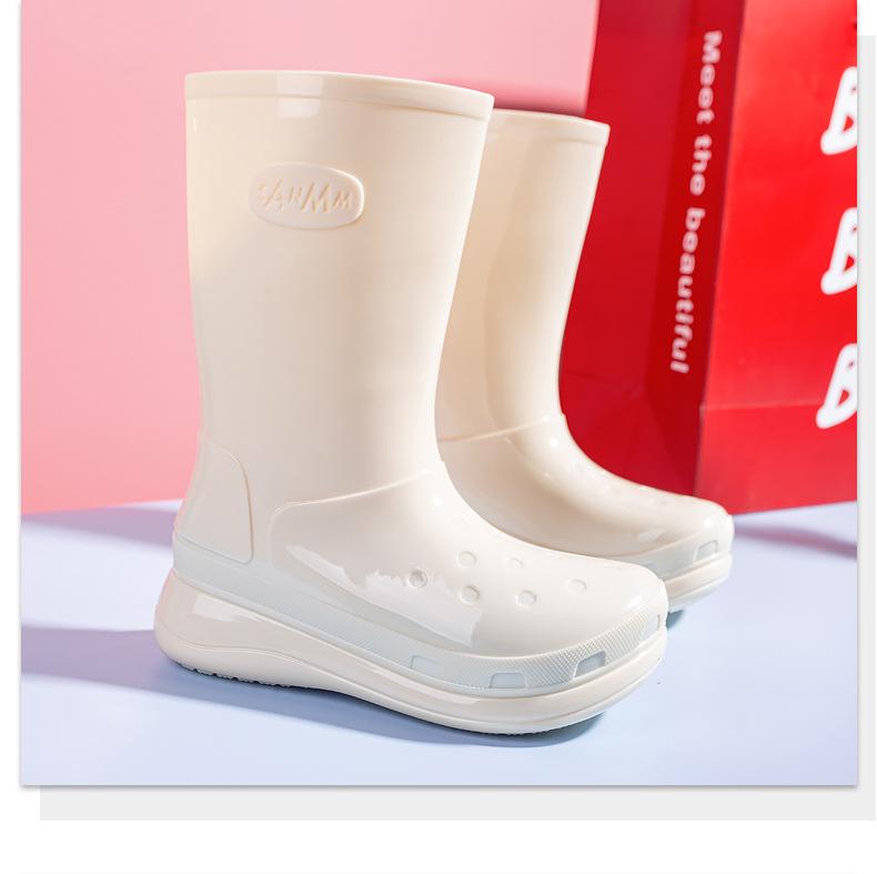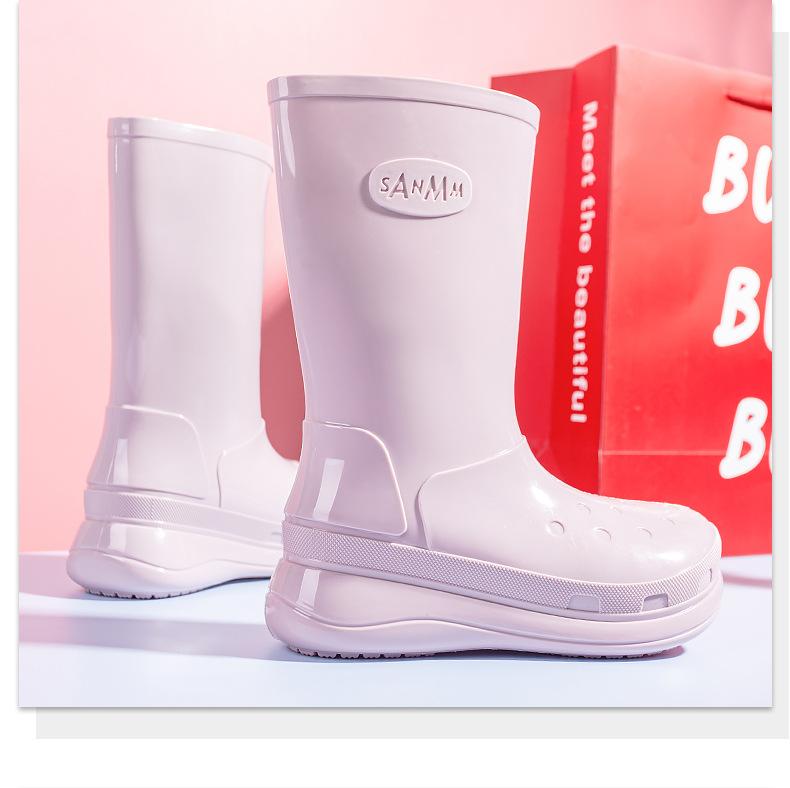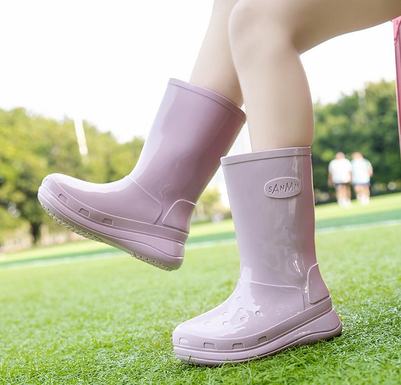 Botas de Lluvia de Caña Media Transfronterizas para Mujer Antideslizantes a la Moda para Adulto Impermeables Cálidas Botas de Lluvia Zapatos de Goma de Suela Blanda para Exterior