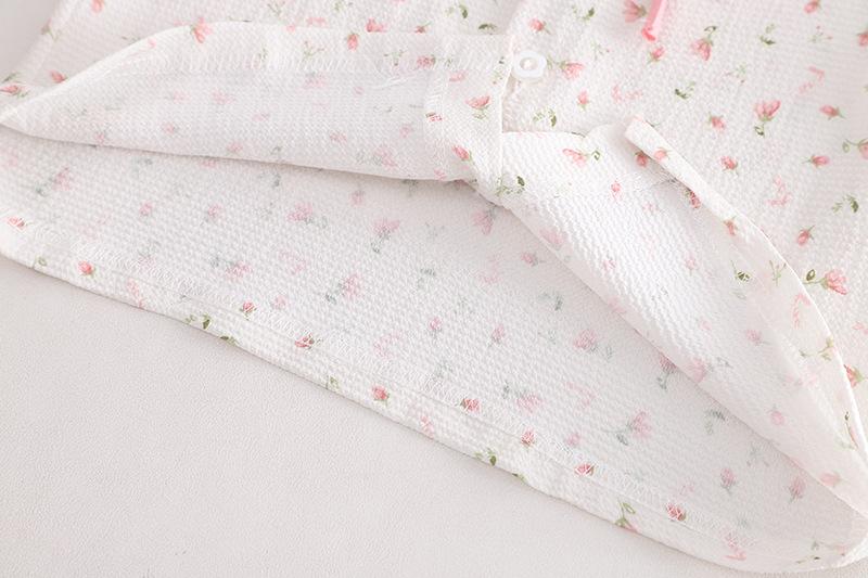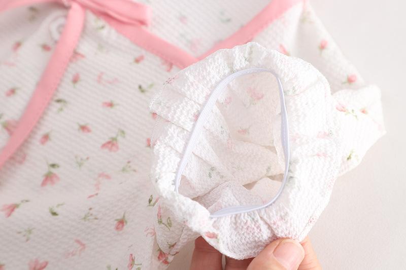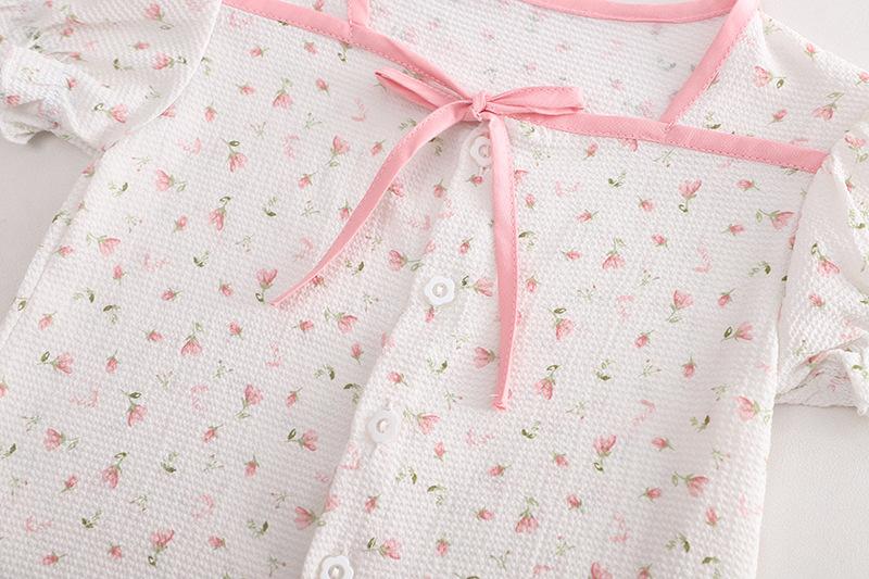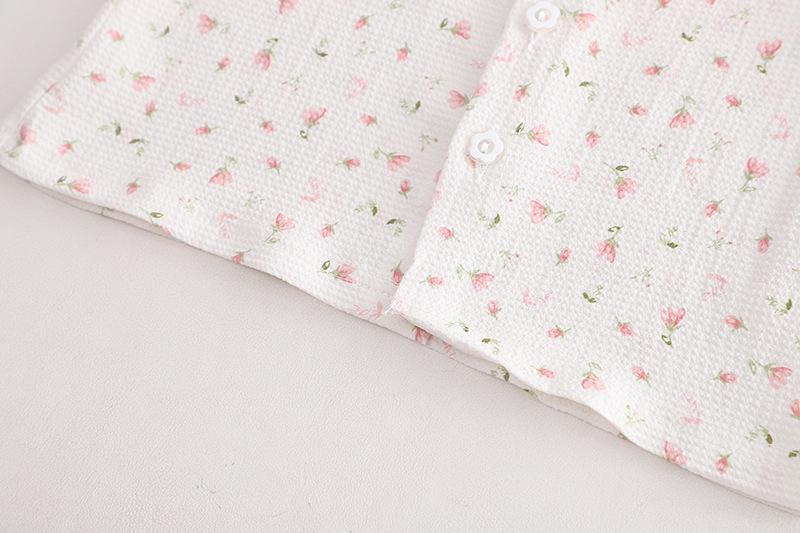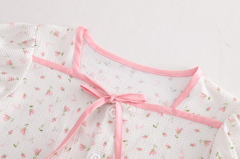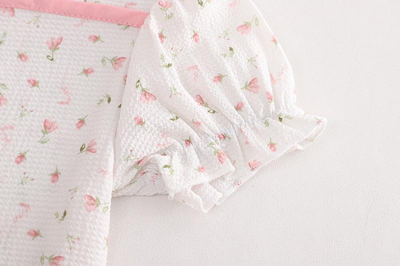 Pink Floral-Print Cardigan Short-Sleeved Set with Tight Strap