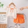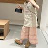 Traje de verano para niña 2024, nuevo estilo, camisa fina de manga corta de verano para niña, dos piezas a la moda