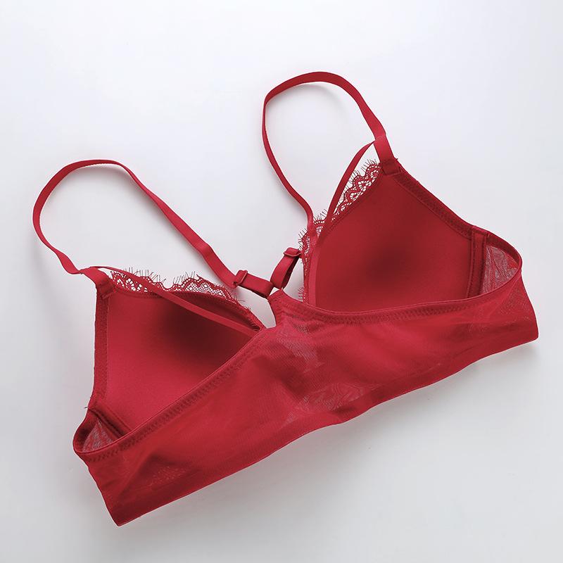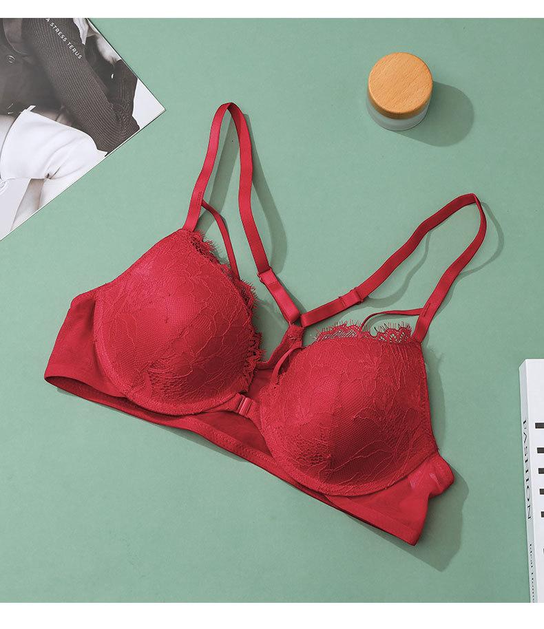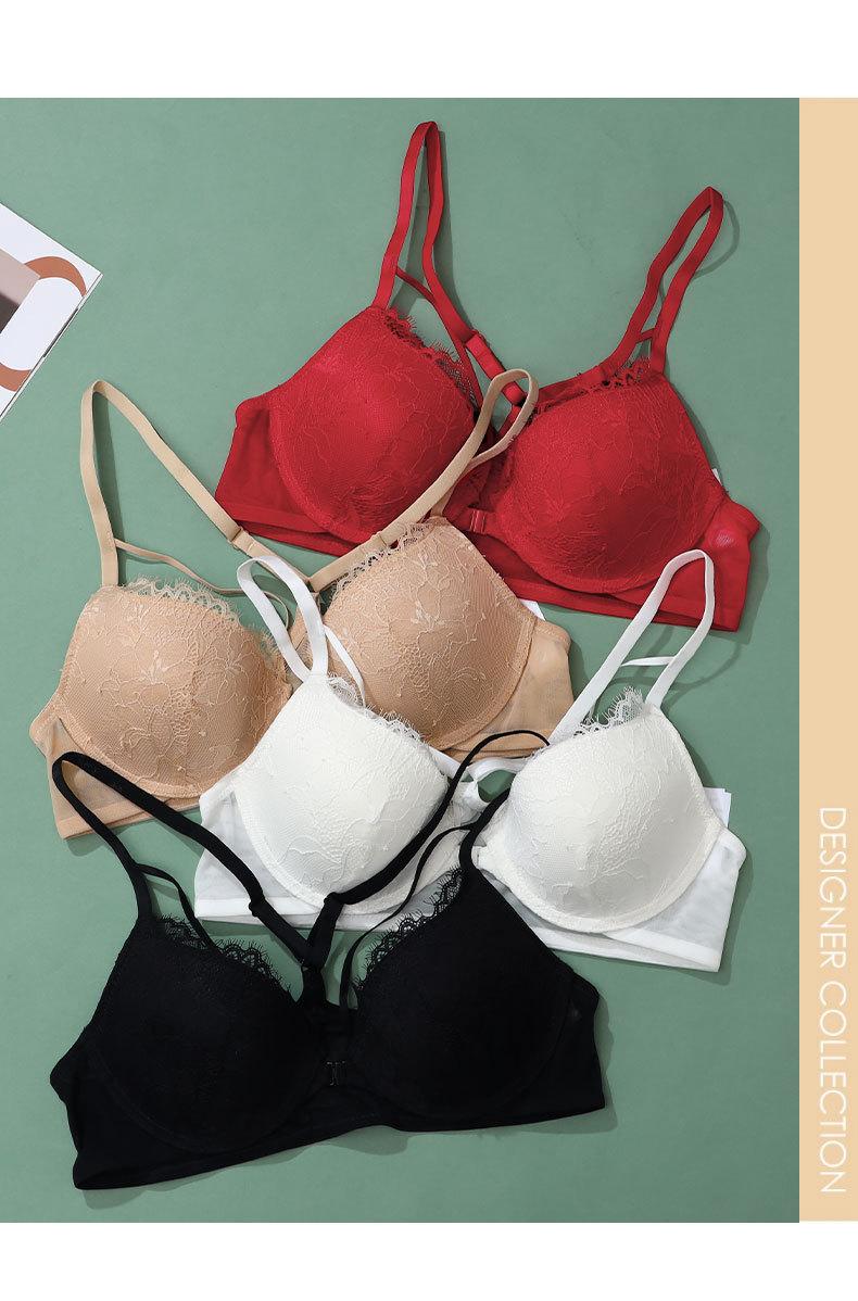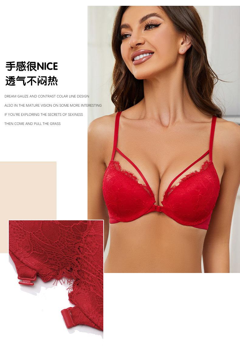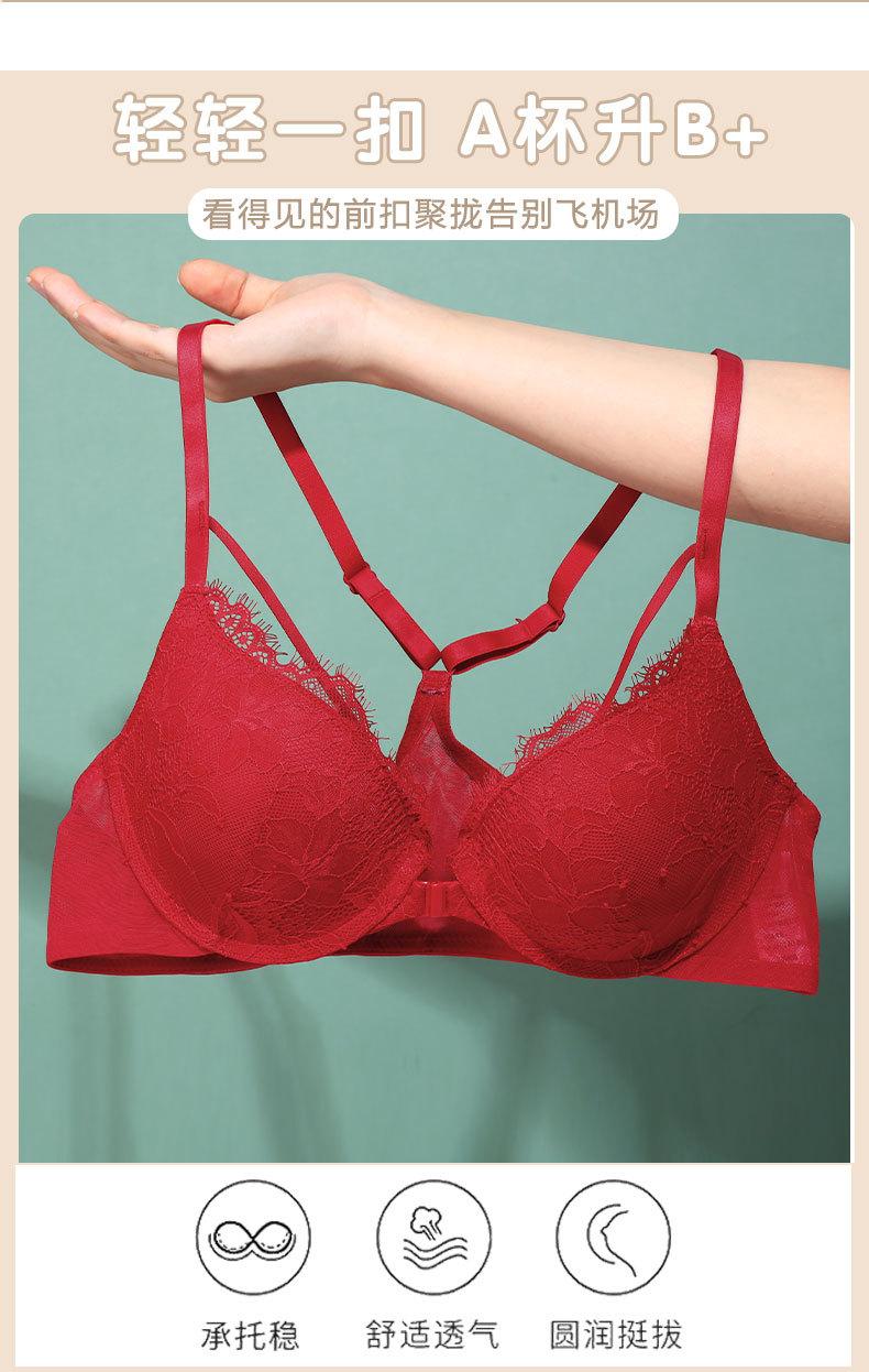 Sujetador con hebilla frontal francesa, ropa interior sexy de encaje rojo Benmingnian, push-up, pecho pequeño, antiflacidez, para mujer