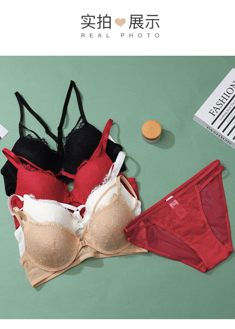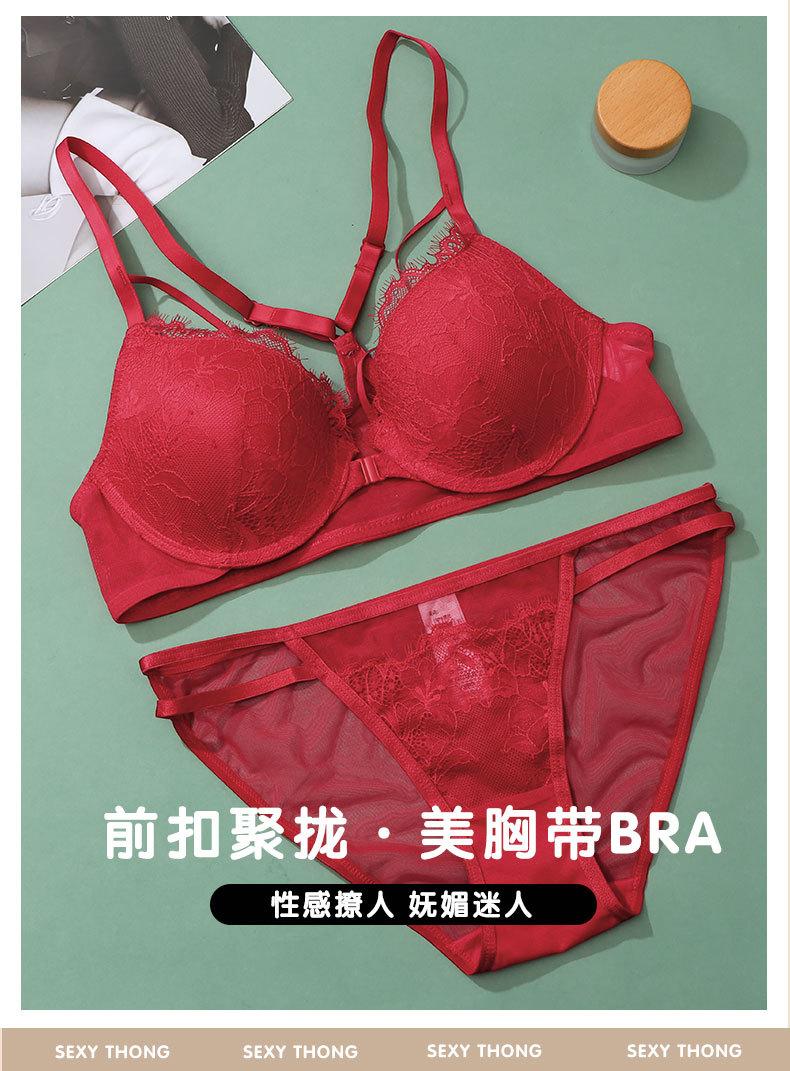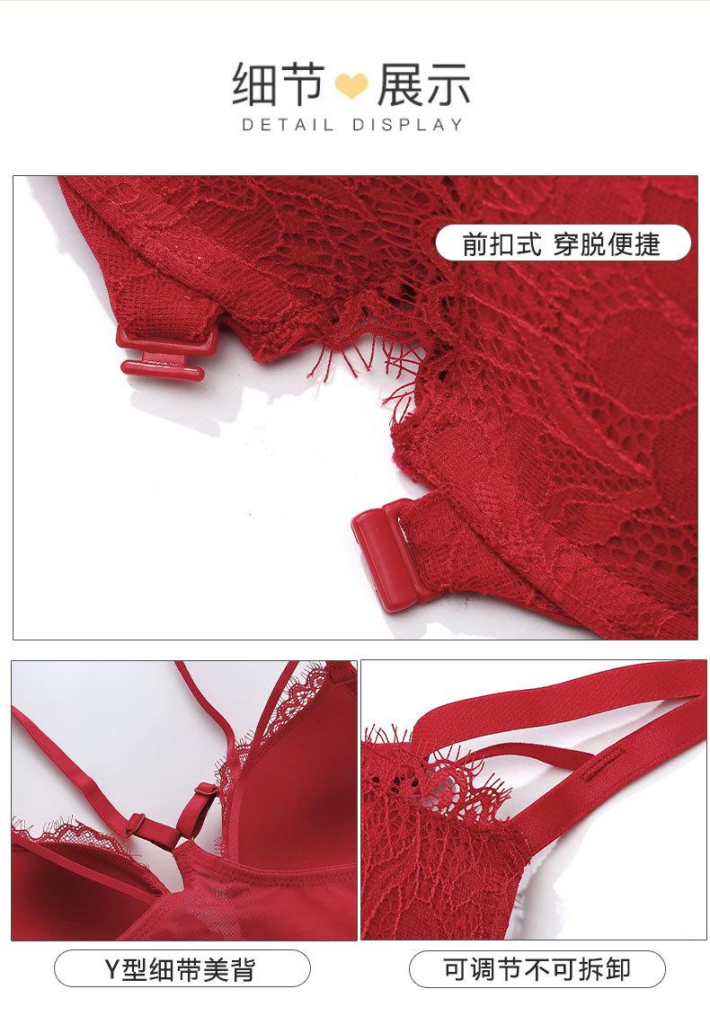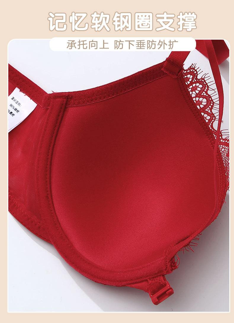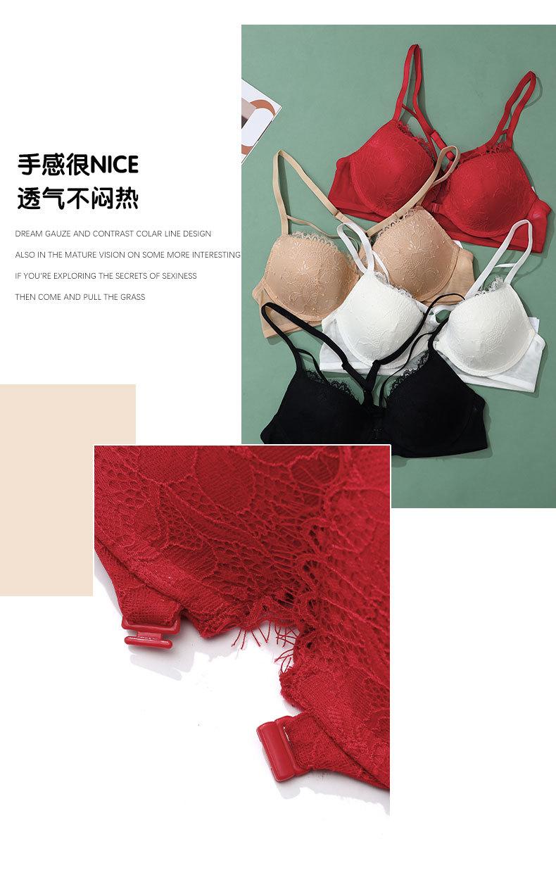 Sujetador con hebilla frontal francesa, ropa interior sexy de encaje rojo Benmingnian, push-up, pecho pequeño, antiflacidez, para mujer