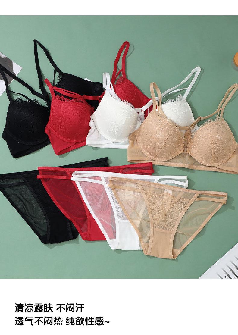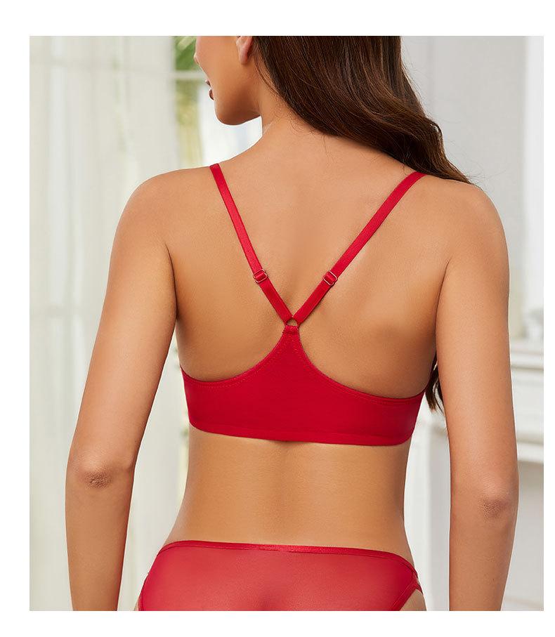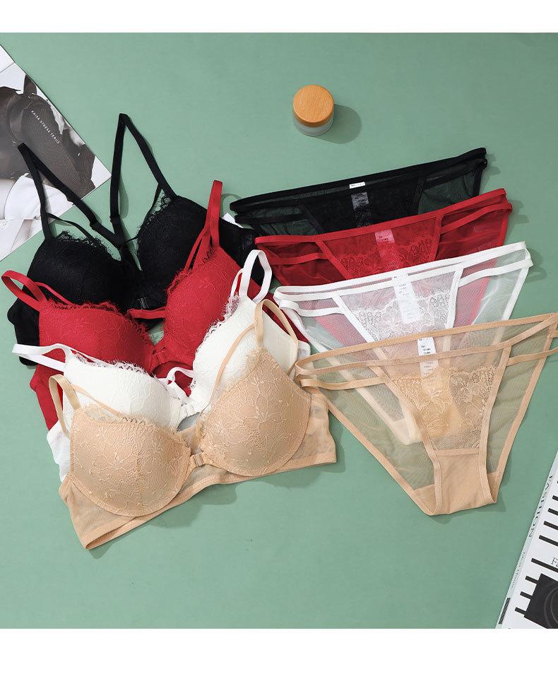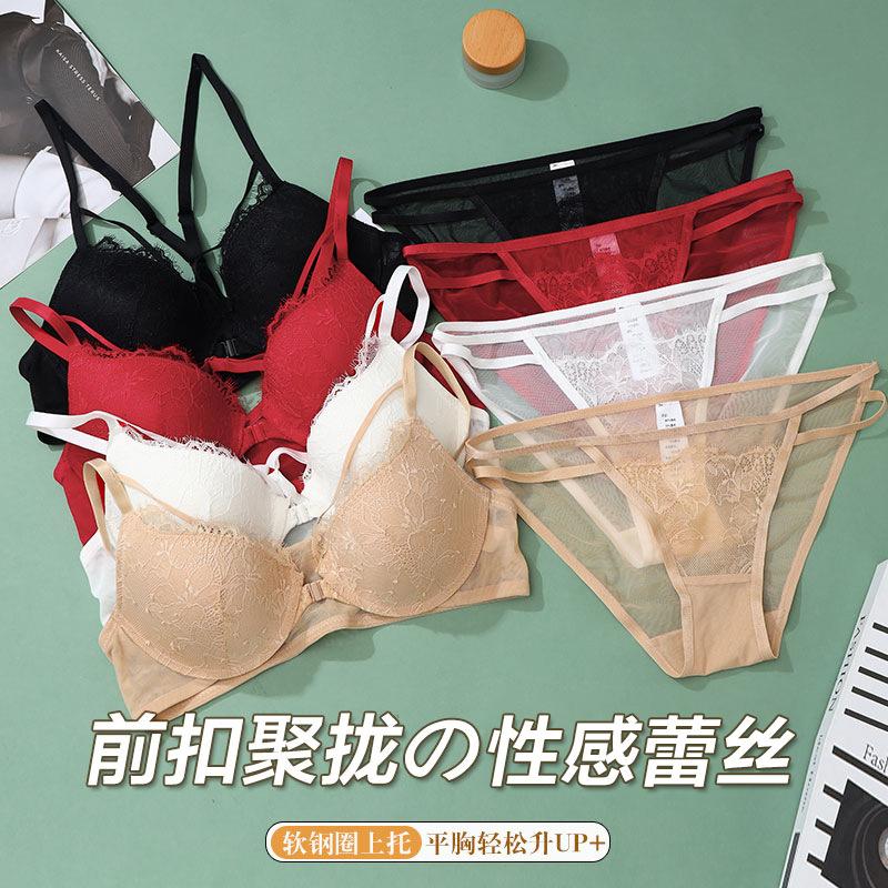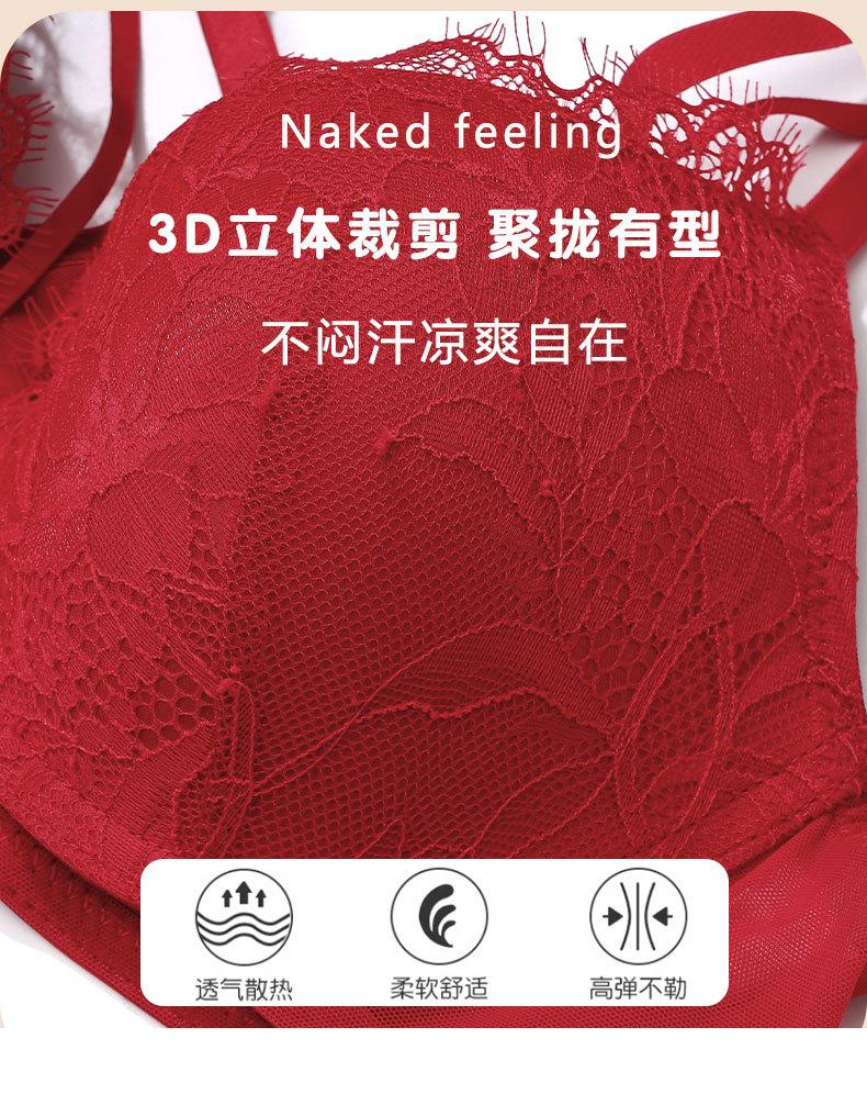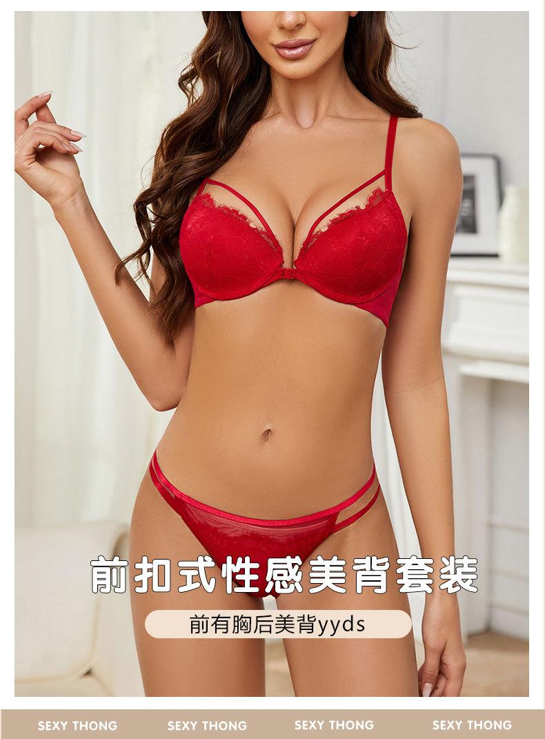 Sujetador con hebilla frontal francesa, ropa interior sexy de encaje rojo Benmingnian, push-up, pecho pequeño, antiflacidez, para mujer