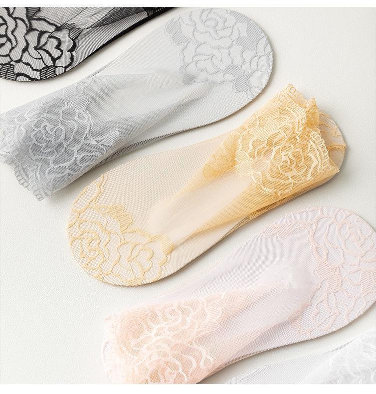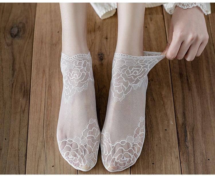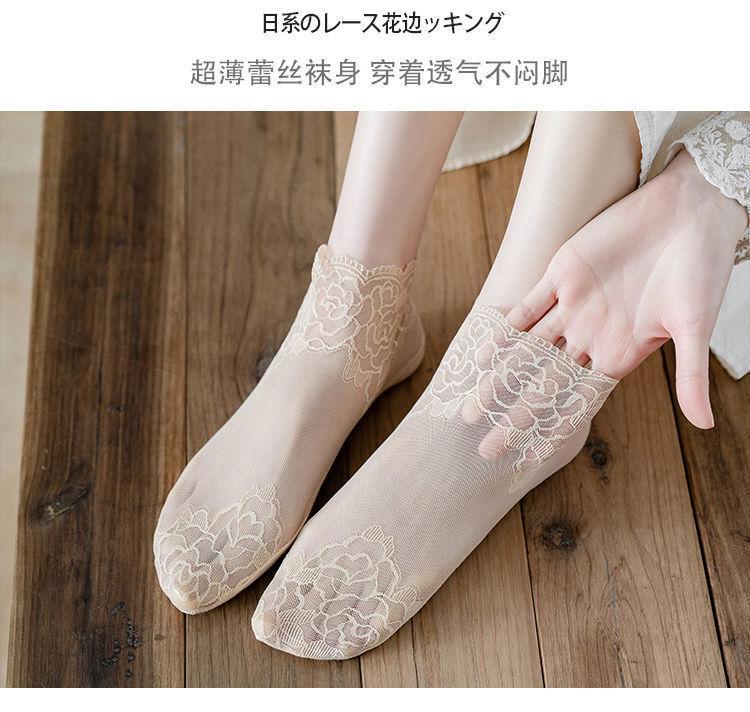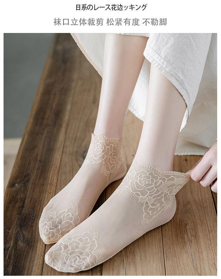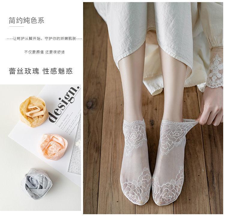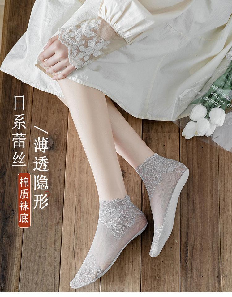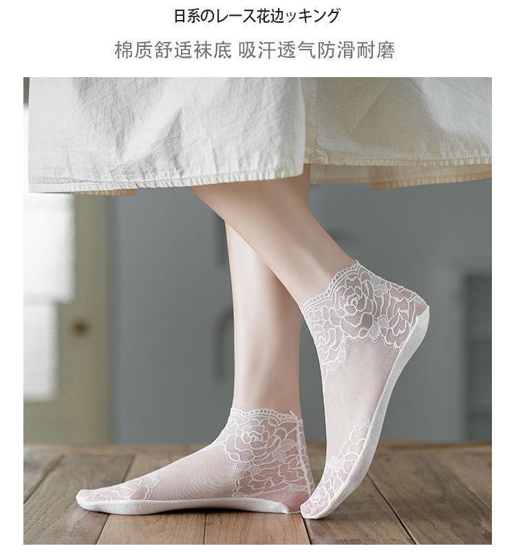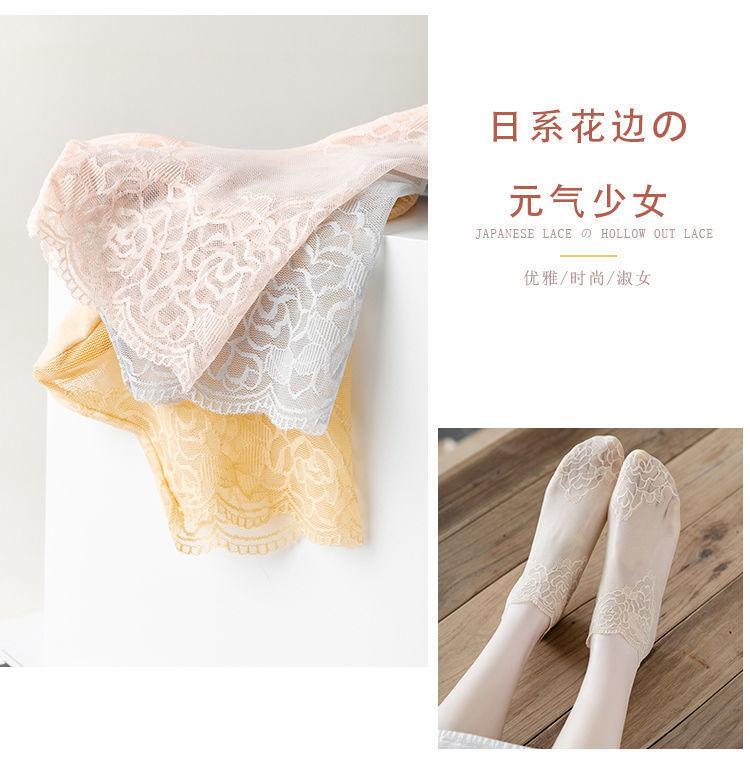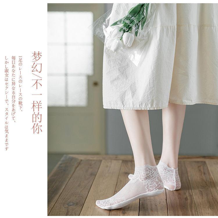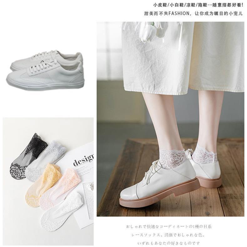 Medias de encaje de primavera, verano y otoño, calcetines transpirables absorbentes del sudor, calcetines náuticos invisibles de media pantorrilla de estilo coreano para mujer, calcetines de malla
