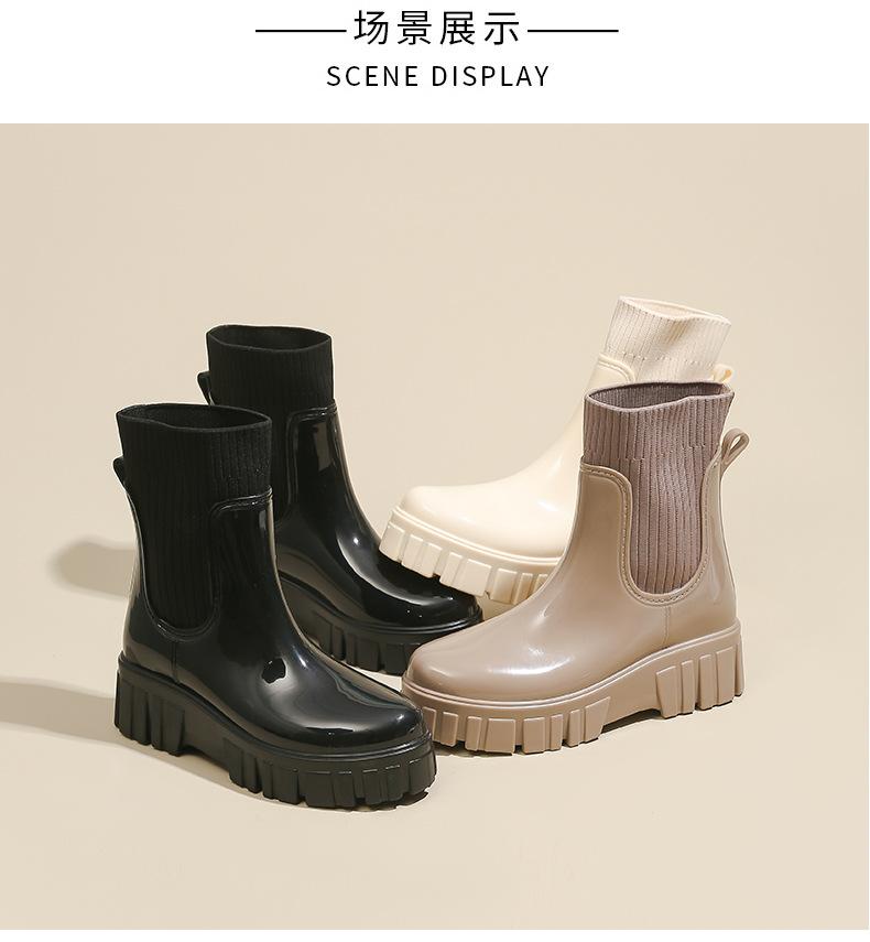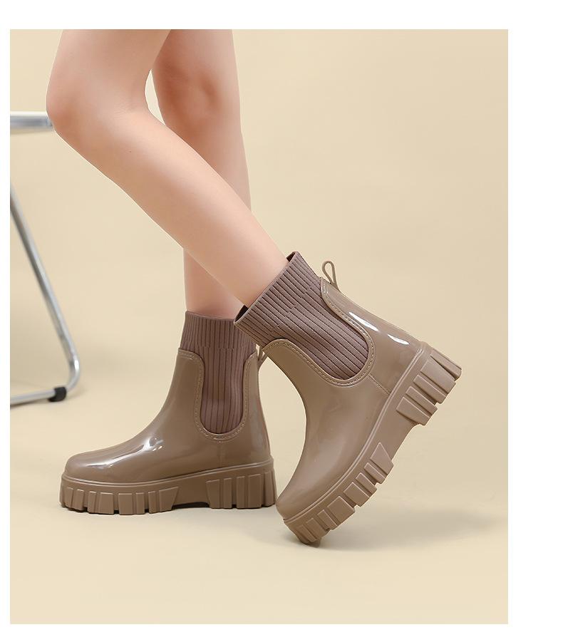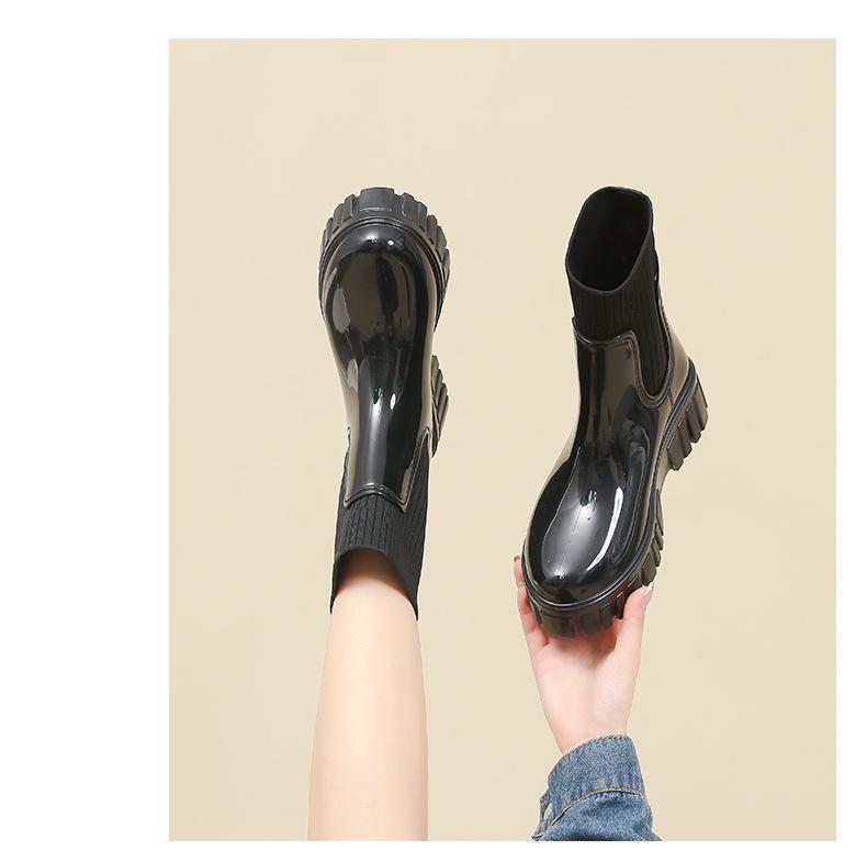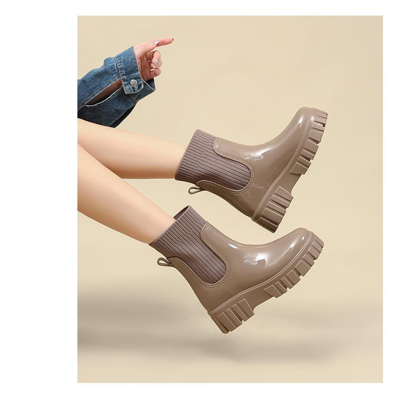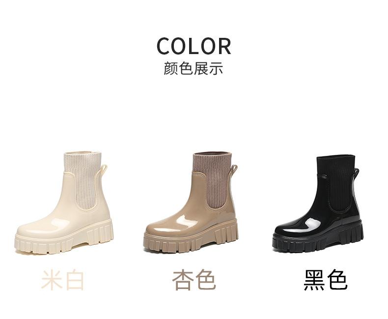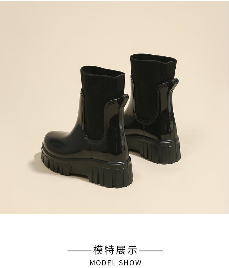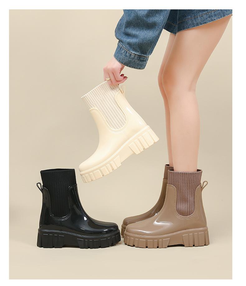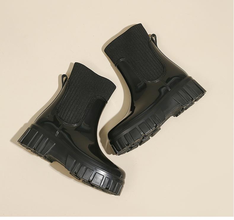 Botas de lluvia de moda transfronterizas, botas de lluvia de media pantorrilla con banda elástica para mujer, zapatos de goma resistentes al desgaste con suela gruesa simple de color sólido japonés y coreano, zapatos de agua para exteriores