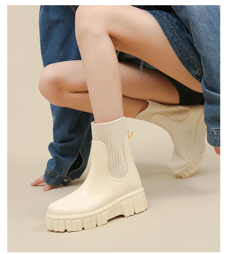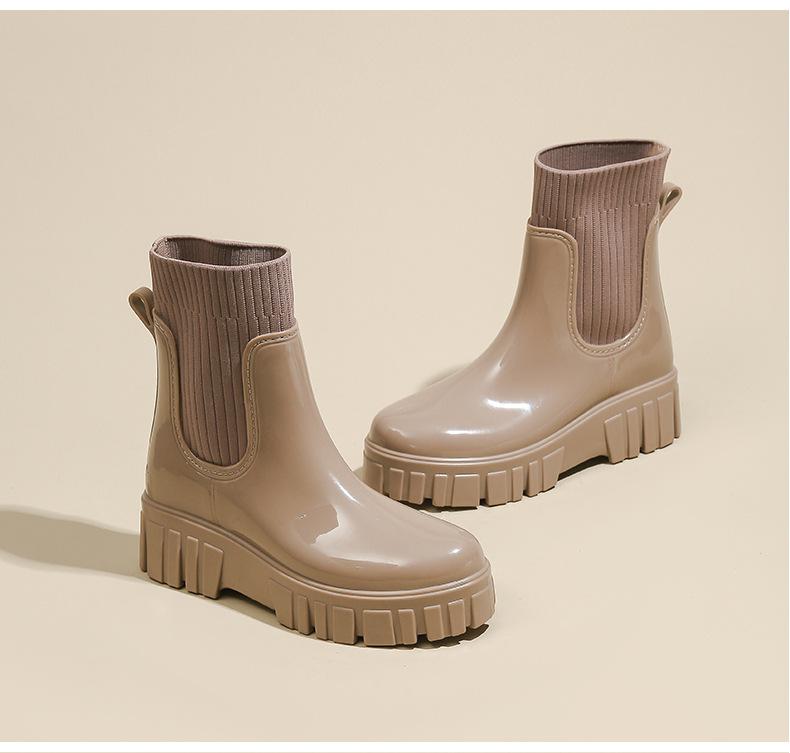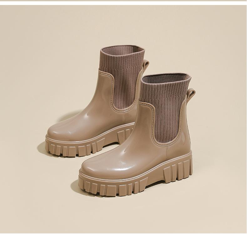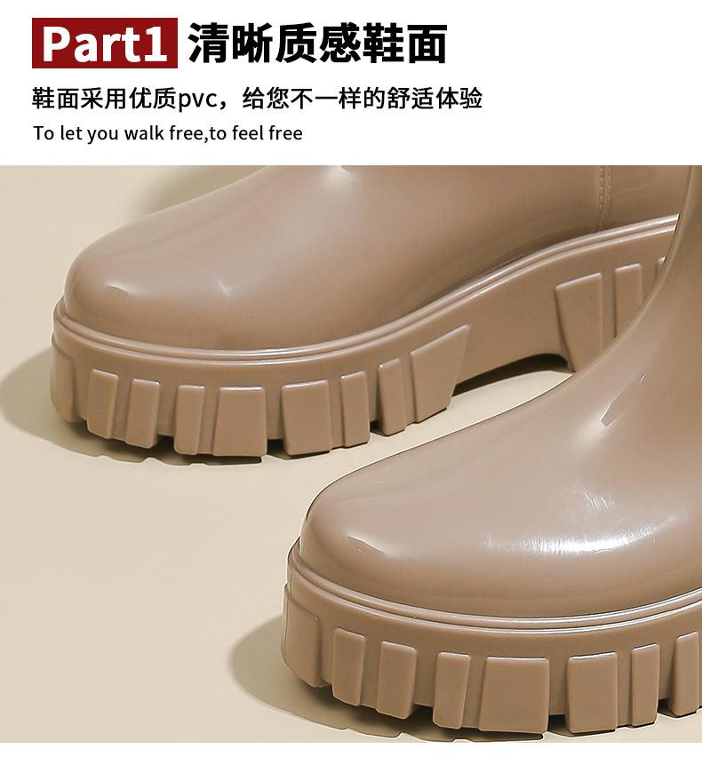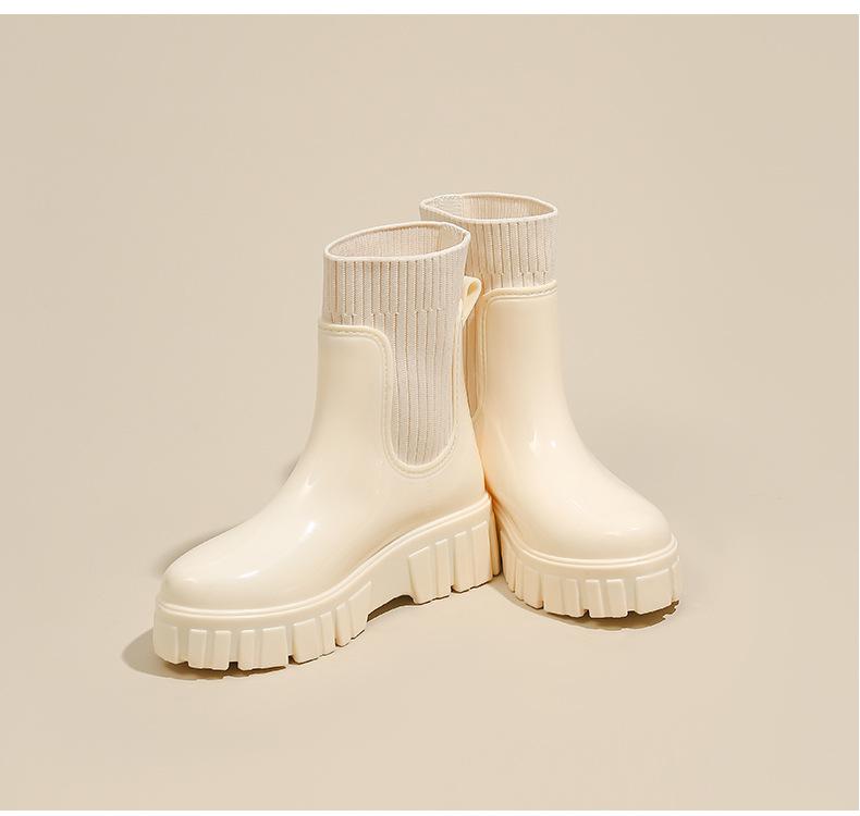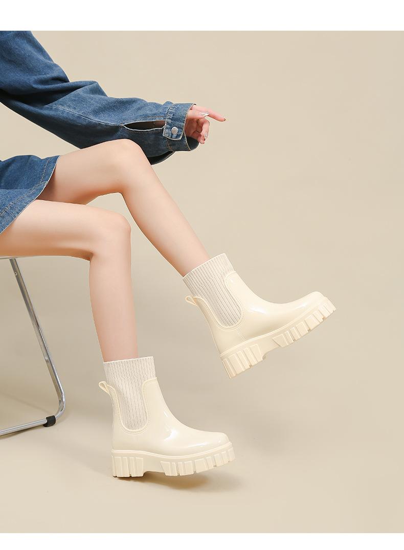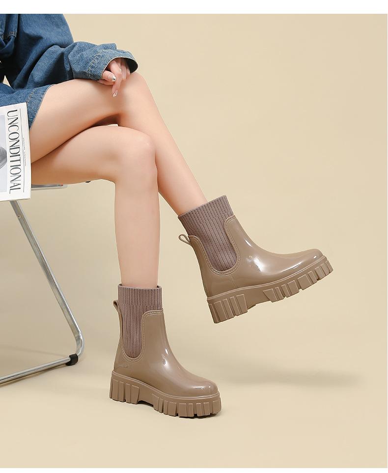 Botas de lluvia de moda transfronterizas, botas de lluvia de media pantorrilla con banda elástica para mujer, zapatos de goma resistentes al desgaste con suela gruesa simple de color sólido japonés y coreano, zapatos de agua para exteriores