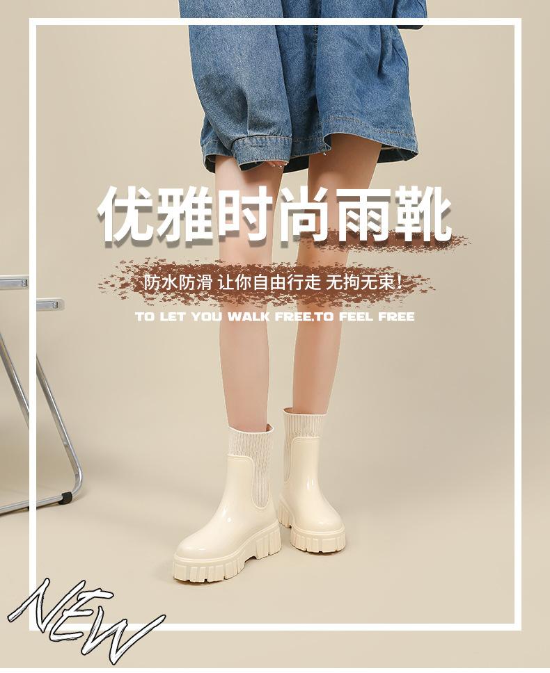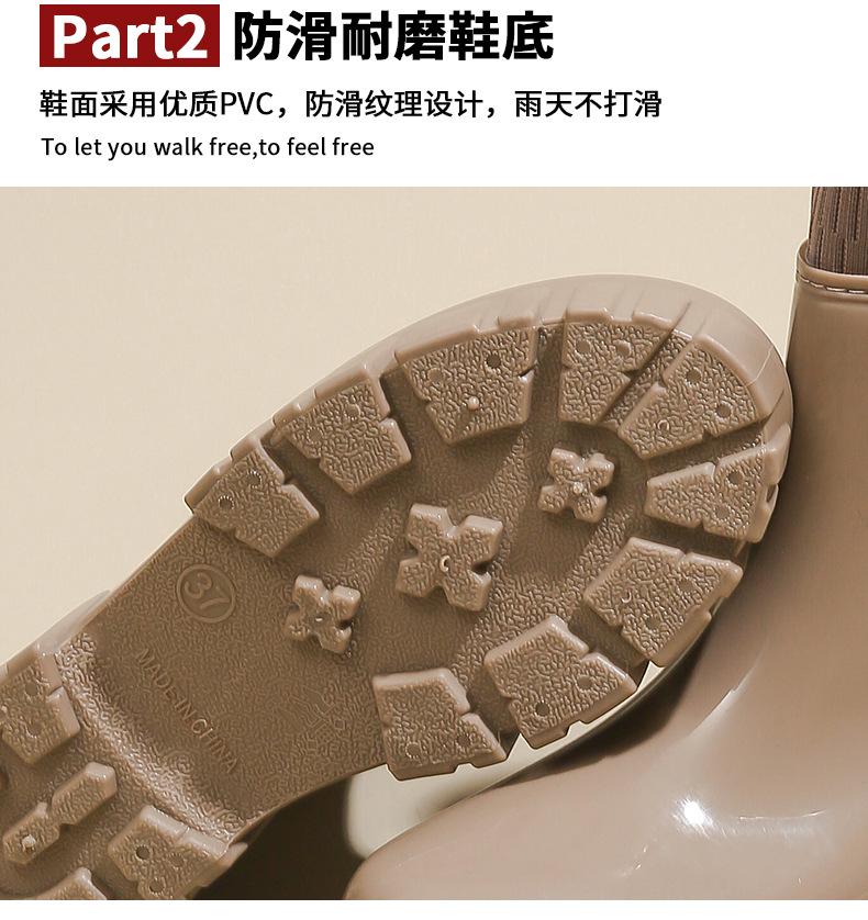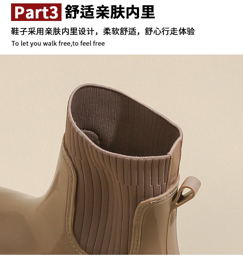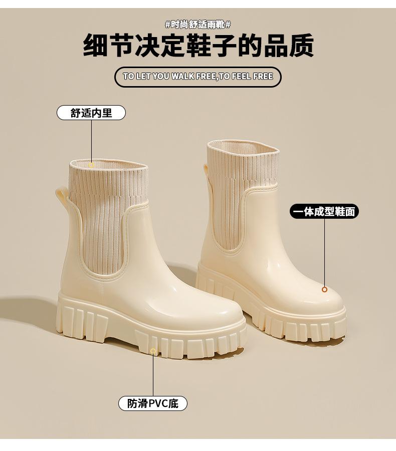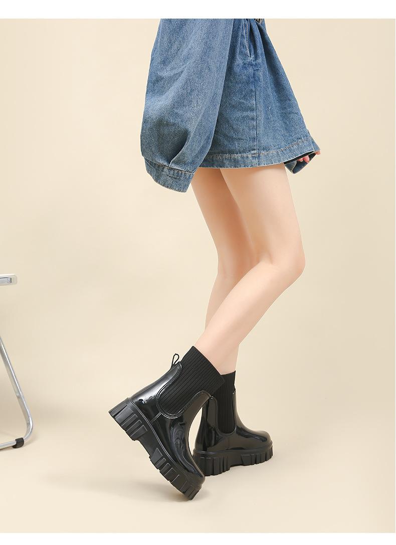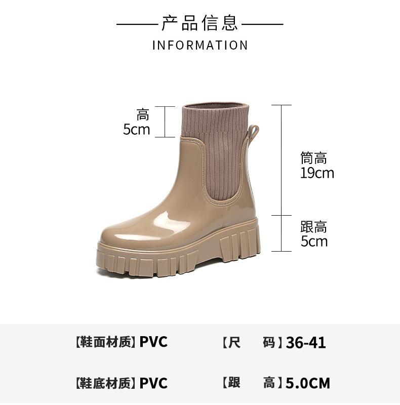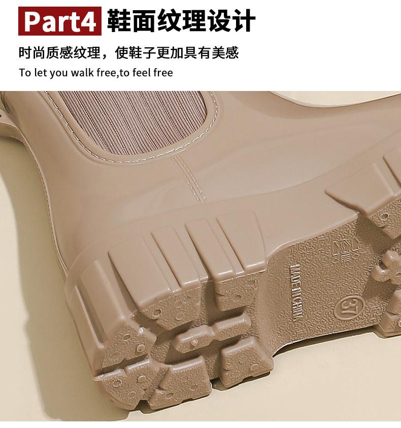 Botas de lluvia de moda transfronterizas, botas de lluvia de media pantorrilla con banda elástica para mujer, zapatos de goma resistentes al desgaste con suela gruesa simple de color sólido japonés y coreano, zapatos de agua para exteriores