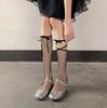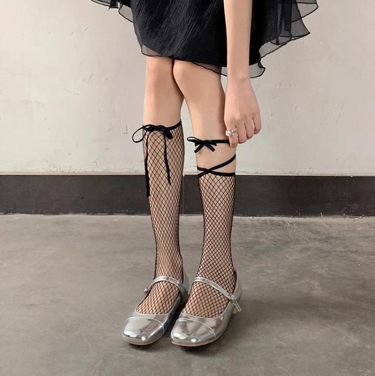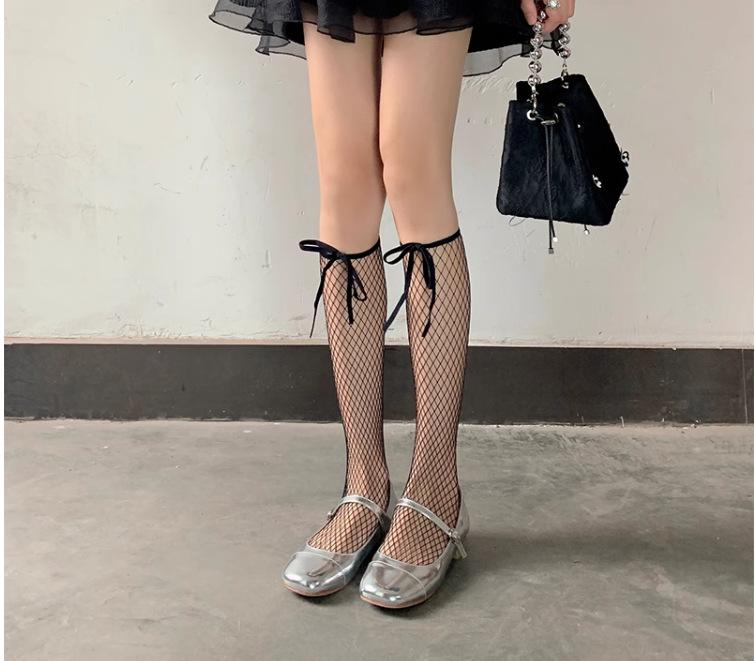 Calcetines de red blancos con lazo para mujer, calcetines finos de primavera y otoño con tira jk hasta la pantorrilla, calcetines de tubo de malla, calcetines de red